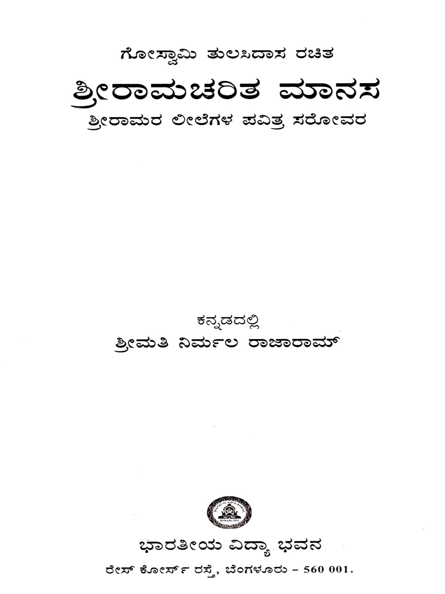 ಶ್ರೀ ರಾಮಚರಿತ ಮಾನಸ: Sri Ramacharitamanas (Ramacharitamanasa) in Kannada: Tulsidas Ramayana