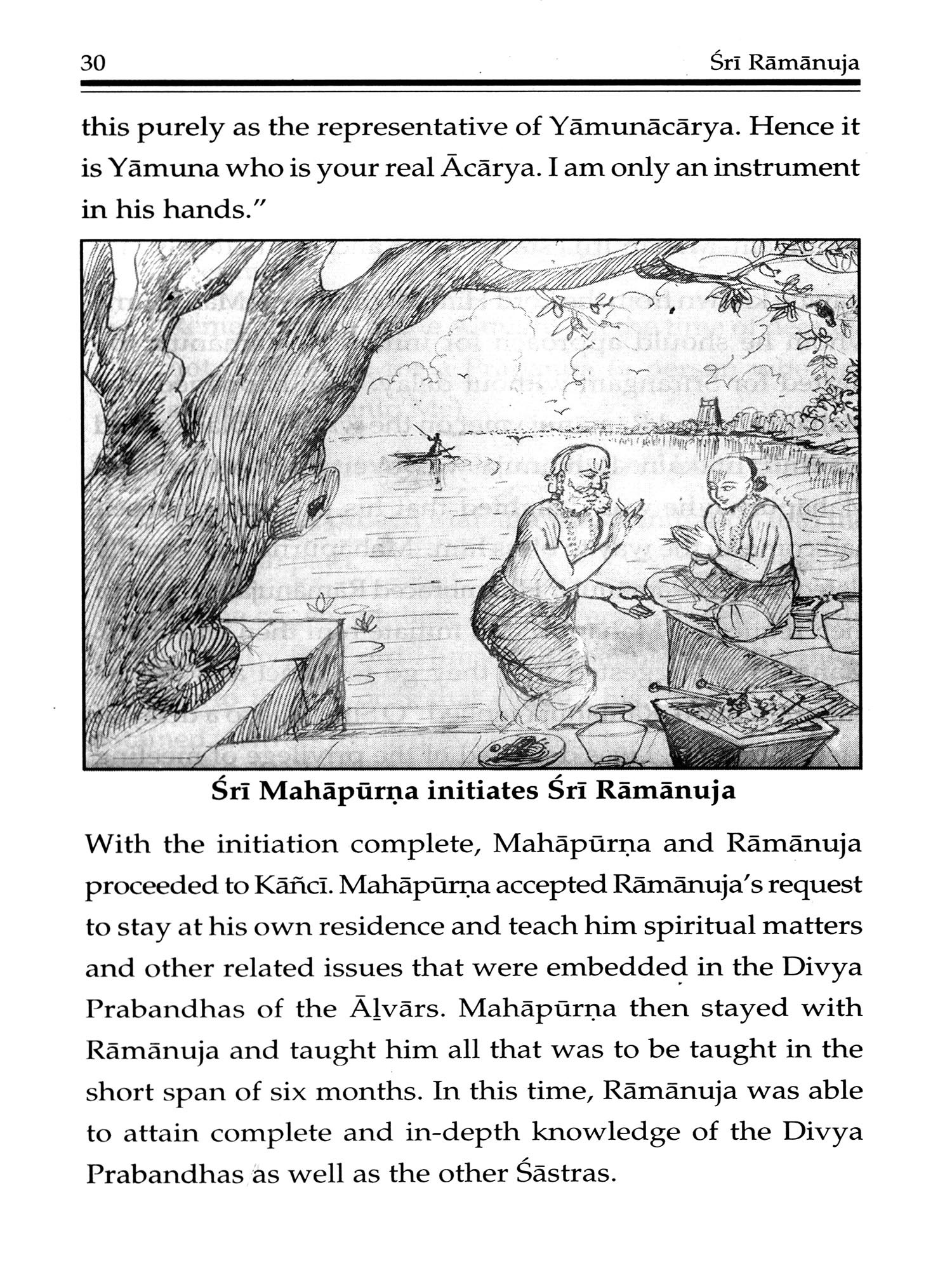 Who are we and where are we to write the biography of Ramanuja and his successors? We are convinced of our inability, lack of competence and understanding. Still, our awe and reverence for the greatness of Ramanuja urge us to write at least something about Ramanuja. The present work is a result of such strong desire. When emotion overpowers a person he forgets about his inabilities and inadequacies and speaks spontaneously. This is our "Vacika Kainkaryam" (service in the form of words) to Ramanuja, trying to extol his greatness, however weak we may be in our expressions and so on. We hope seekers of spirituality will appreciate us for the small efforts we have made to ruminate the valuable incidents in the life of Ramanuja and his successors to some extent. If this small and inadequate effort is able to stir the feelings of seekers of spirituality, we would be blessed indeed. We beg pardon of the great devotees of Ramanuja for any deficiencies that might have crept into the body of this text due to our own inadvertency and shortcomings. We request the motivated readers to accept this small offering at the feet of Ramanuja and bless us to have more spiritual enlightenment. We are sure to make the necessary amendments, if any are suggested by the devotees of the Acharya, in succeeding editions.