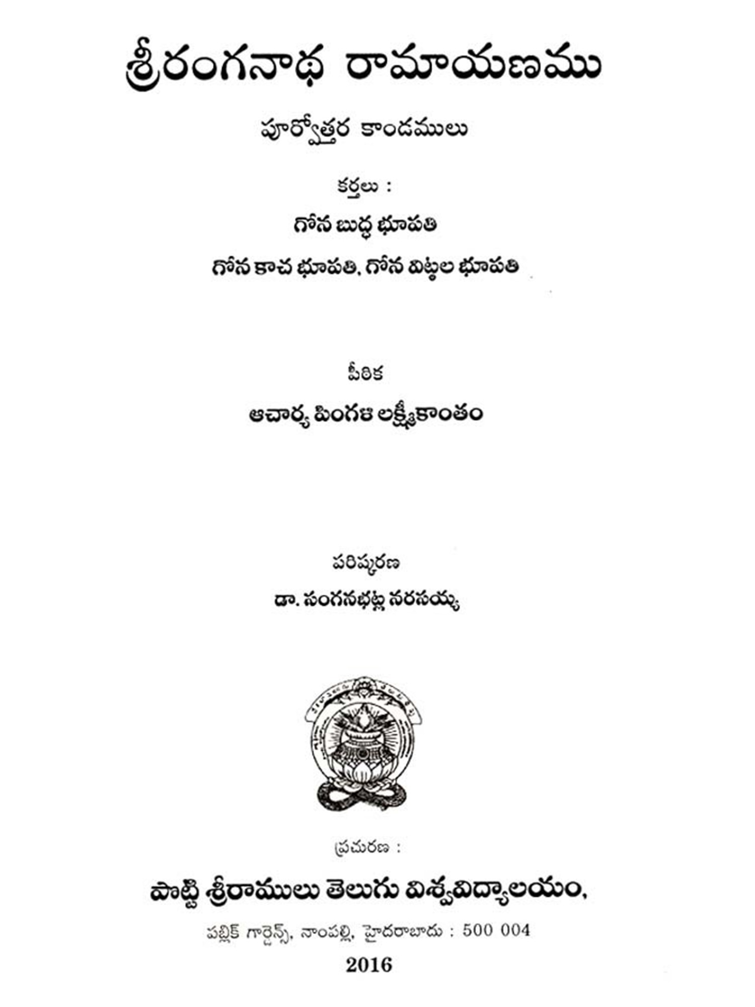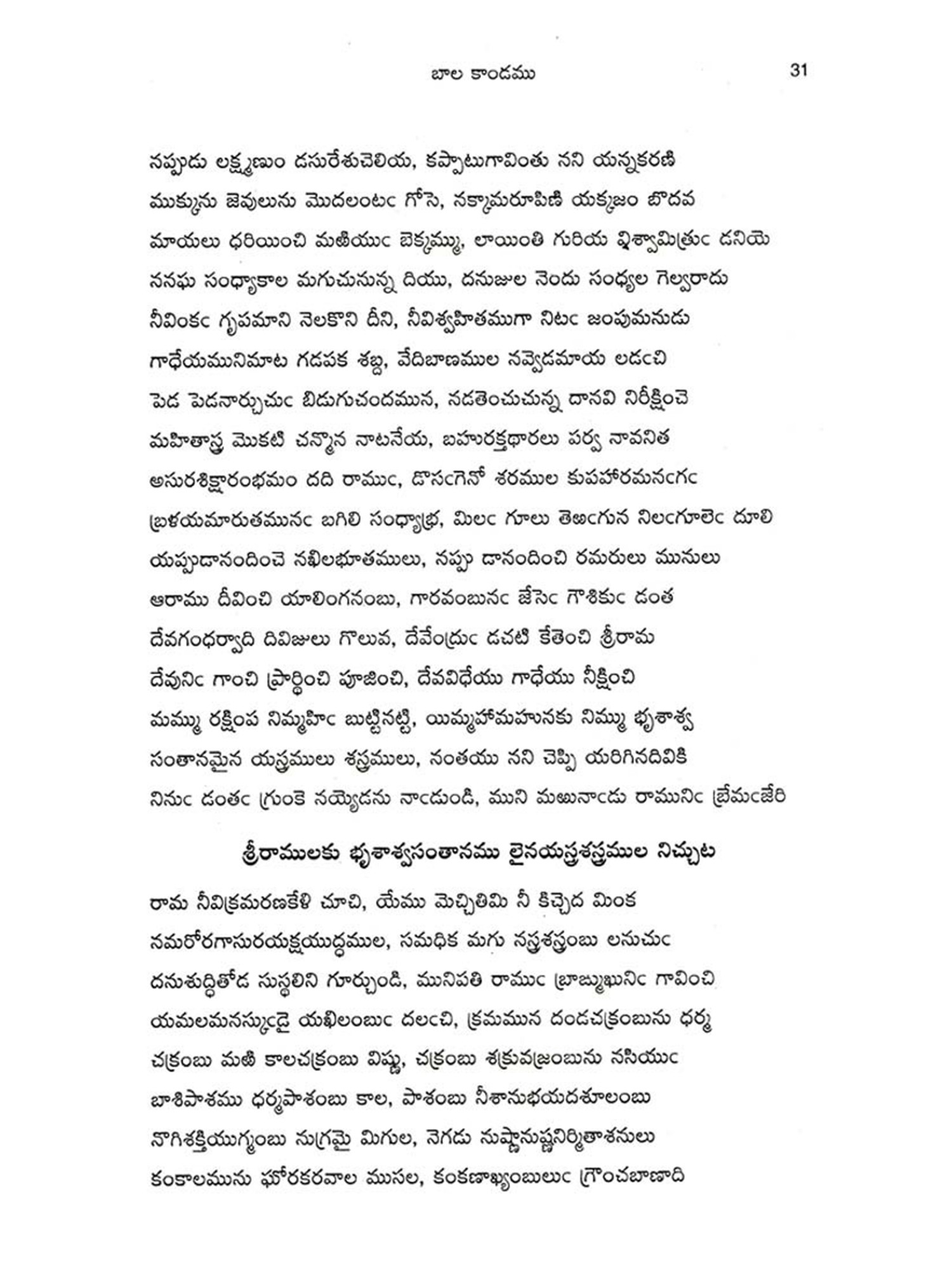 శ్రీ వాల్మీకి మహర్షి రచించిన శ్రీమద్రామాయణము: Srimad Ramayana Compiled by Sri Valmiki Maharishi: Sampurna Sarala Vachana Granthamu in Telugu