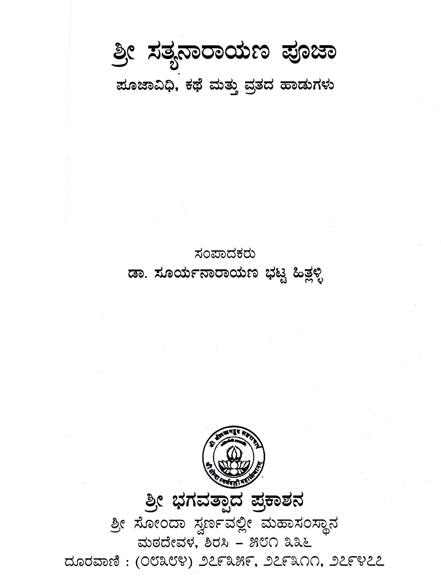 ಶ್ರೀಸತ್ಯನಾರಾಯಣಪೂಜಾವಿಧಿಃ Shri Satyanarayana Puja Vidhi (Kathasara, Vishnusahasranamastotra, Udyapanavidhisahita) (Kannada)