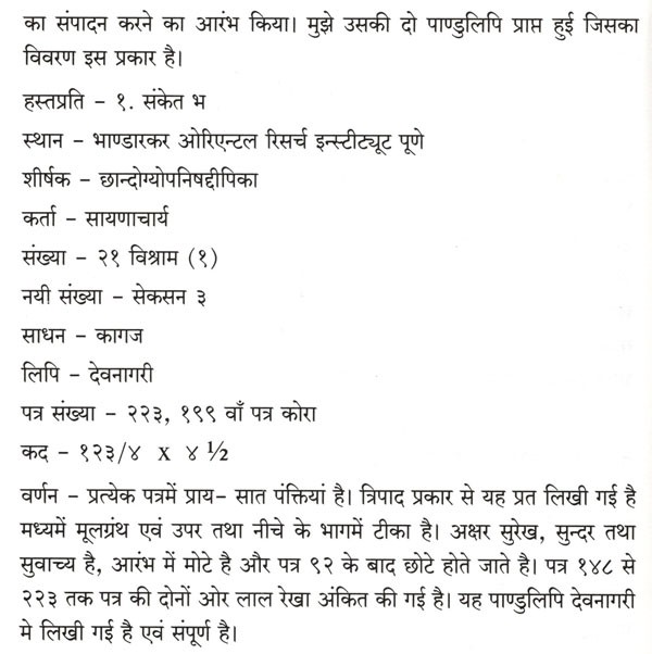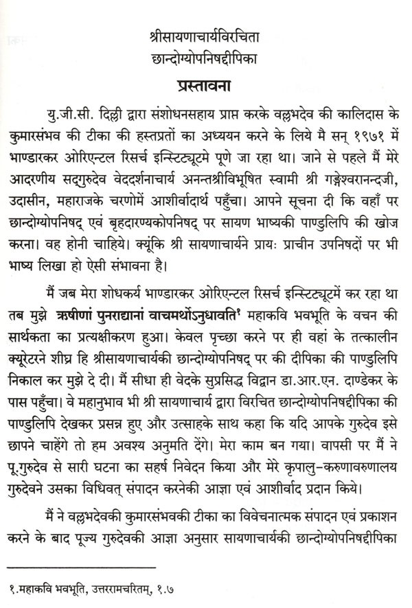 श्रीसायणाचार्यविरचिता छान्दोग्योपनिषद्दीपिका: Sri Sayana Caryaviracita Chandogyopanisad Dipika