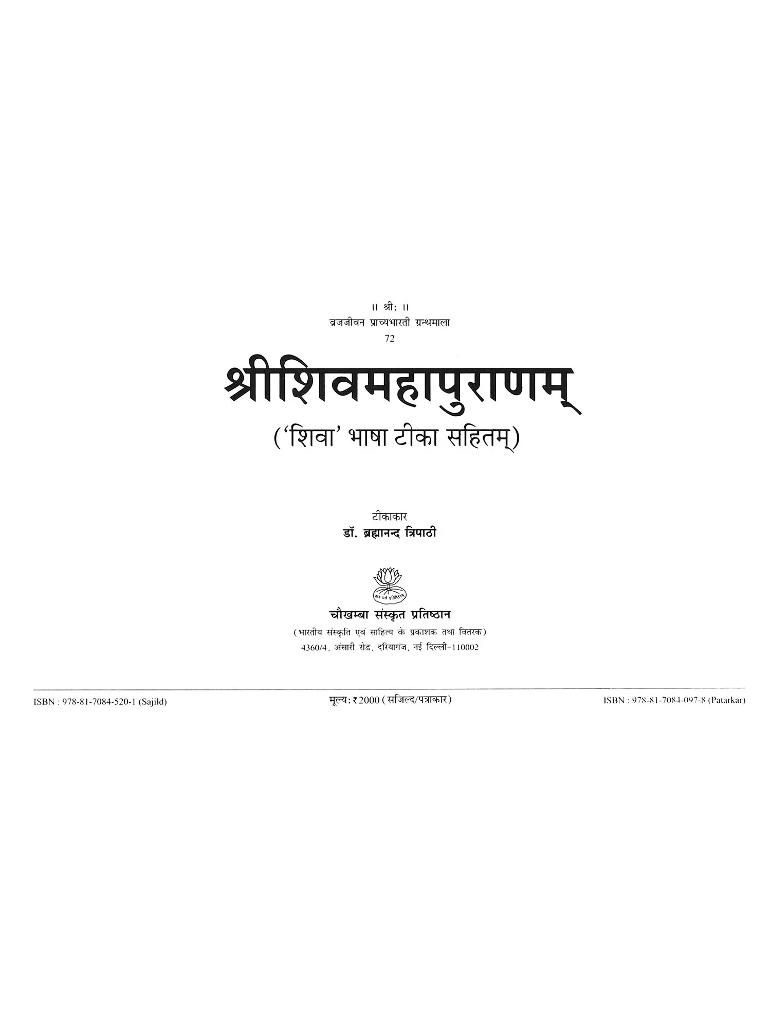 श्रीशिवमहापुराणम् ('शिवा'-भाषाटीकासहितम्)- Sri Shiva Mahapuranam 'Shiva' with Language Commentary (Loose Leaf Edition)
