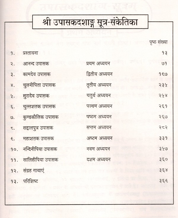 उपासकदशाङ्ग में ई. पू. ६०० का सांस्कृतिक चित्र है। आनन्द का जीवन तत्कालीन वाणिज्य-व्यवसाय पर प्रकाश डालता है। राजा, ईश्वर, तलवर आदि नाम राज्याधिकारियों के परिचायक है। गोशालक का निर्देश धार्मिक स्थिति की ओर संकेत करता है। चम्पा, राजगृह आदि नगरियों तथा राजाओं के नाम मगध तथा आस-पास के जनपदों का भौगोलिक परिचय देते हैं। इन सबका निरूपण विविध परिशिष्टों में किया गया है।