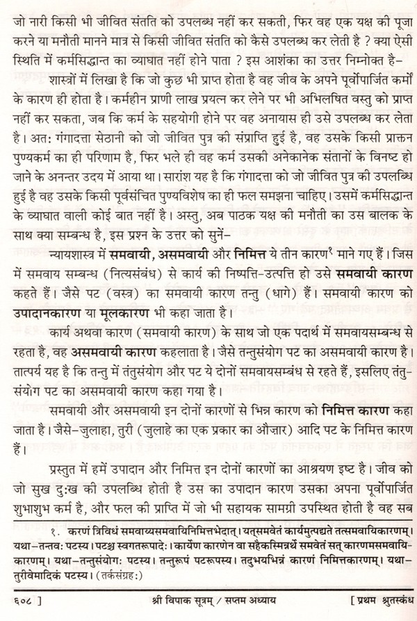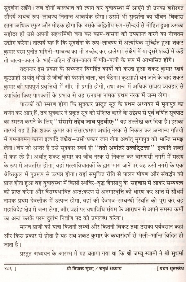 कर्मशब्द की अर्थविचारणा कर्म शब्द का व्युत्पत्तिलभ्य अर्थ है-क्रियते इतिकर्म-अर्थात् जो किया जाए वह कर्म कहलाता है। कर्म शब्द के लोक और शास्त्र में अनेक अर्थ उपलब्ध होते हैं। लौकिक व्यवहार या काम धन्धे के अर्थ में कर्म शब्द का व्यवहार होता है, तथा खाना-पीना, चलना, फिरना आदि क्रिया का भी कर्म के नाम से व्यवहार किया जाता है, इसी प्रकार कर्मकांडी मीमांसक याग आदि क्रियाकलाप के अर्थ में, स्मार्त विद्वान् ब्राह्मण आदि चारों वर्णों तथा ब्रह्मचर्यादि चारों आश्रमों के लिए नियत किए गए कर्मरूप अर्थ में, पौराणिक लोग व्रत नियमादि धार्मिक क्रियाओं के अर्थ में, व्याकरण के निर्माता-कर्ता जिस को अपनी क्रिया के द्वारा प्राप्त करना चाहता हो अर्थात् जिस पर कर्ता के व्यापार का फल गिरता हो-उस अर्थ में, और नैयायिक लोग 'उत्क्षेपणादि पांच सांकेतिक कर्मों में कर्म शब्द का व्यवहार करते हैं और गणितज्ञ लोग योग और गुणन आदि में भी कर्म शब्द का प्रयोग करते हैं परन्तु जैन दर्शन में इन सब अर्थों के अतिरिक्त एक पारिभाषिक अर्थ में उस का व्यवहार किया गया है, उस का पारिभाषिक अर्थ पूर्वोक्त सभी अर्थों से भिन्न अथच विलक्षण है। उस के मत में कर्म यह नैयायिकों या वैशेषिकों की भान्ति क्रियारूप नहीं किन्तु पौद्गलिक अर्थात् द्रव्यरूप है। वह आत्मा के साथ प्रवाहरूप से अनादि सम्बन्ध रखने वाला अजीव-जड़ द्रव्य है। जैन-सिद्धान्त के अनुसार कर्म के भावकर्म और द्रव्यकर्म ऐसे दो प्रकार हैं। इन की व्याख्या निम्नोक्त है-
