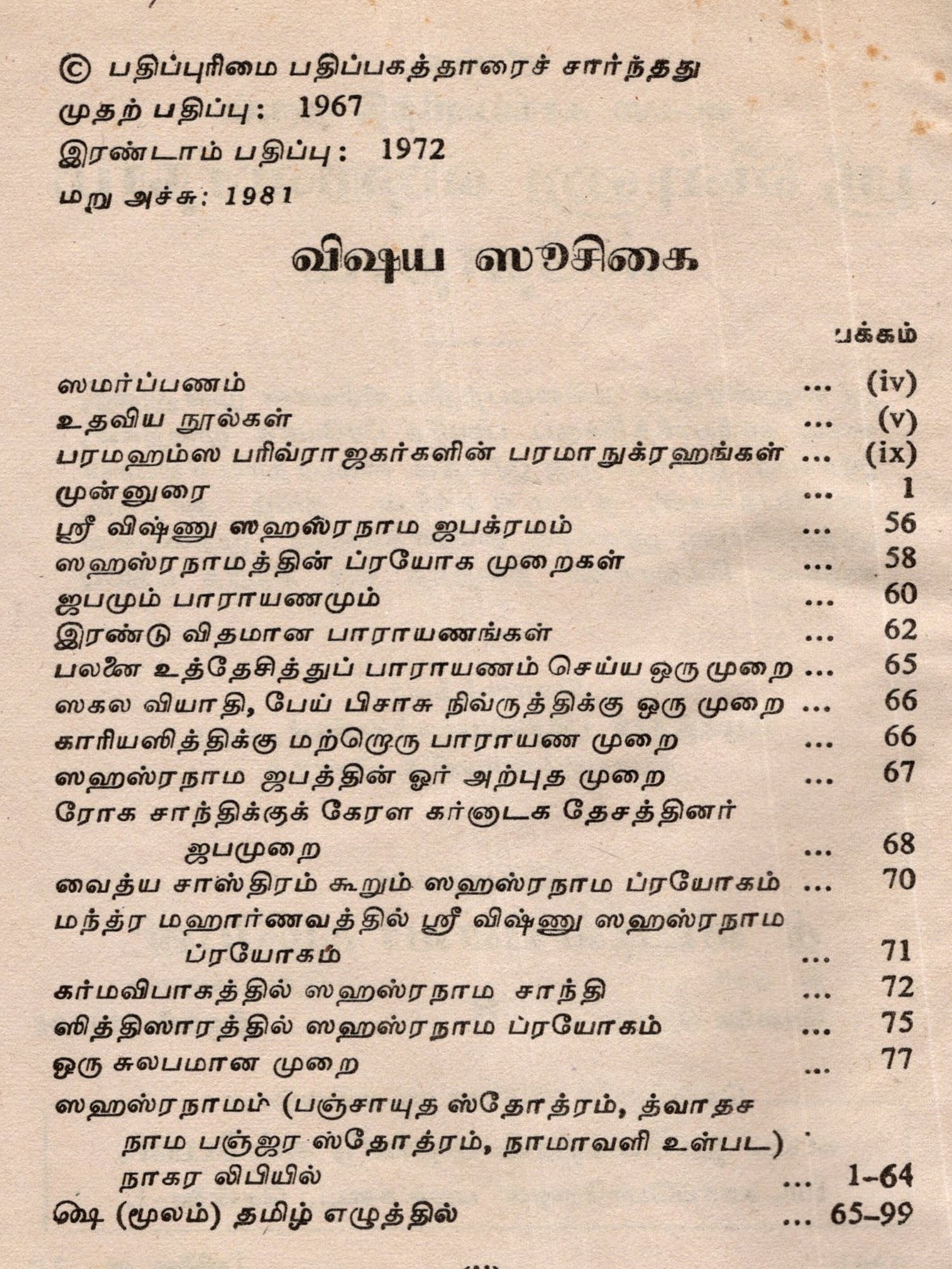 श्री विष्णु सहस्रनामस्तोत्रम्/ ஸ்ரீ விஷ்ணு ஸஹஸ்ர நாமஸ்தோத்ரம்: Sri Vishnu Sahasranama Stotram (An Old and Rare Book)