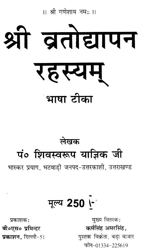 श्री व्रतोद्यापन रहस्यम् (भाषा टीका): Sri Vratodyapana Rahasyam (Language Commentary)