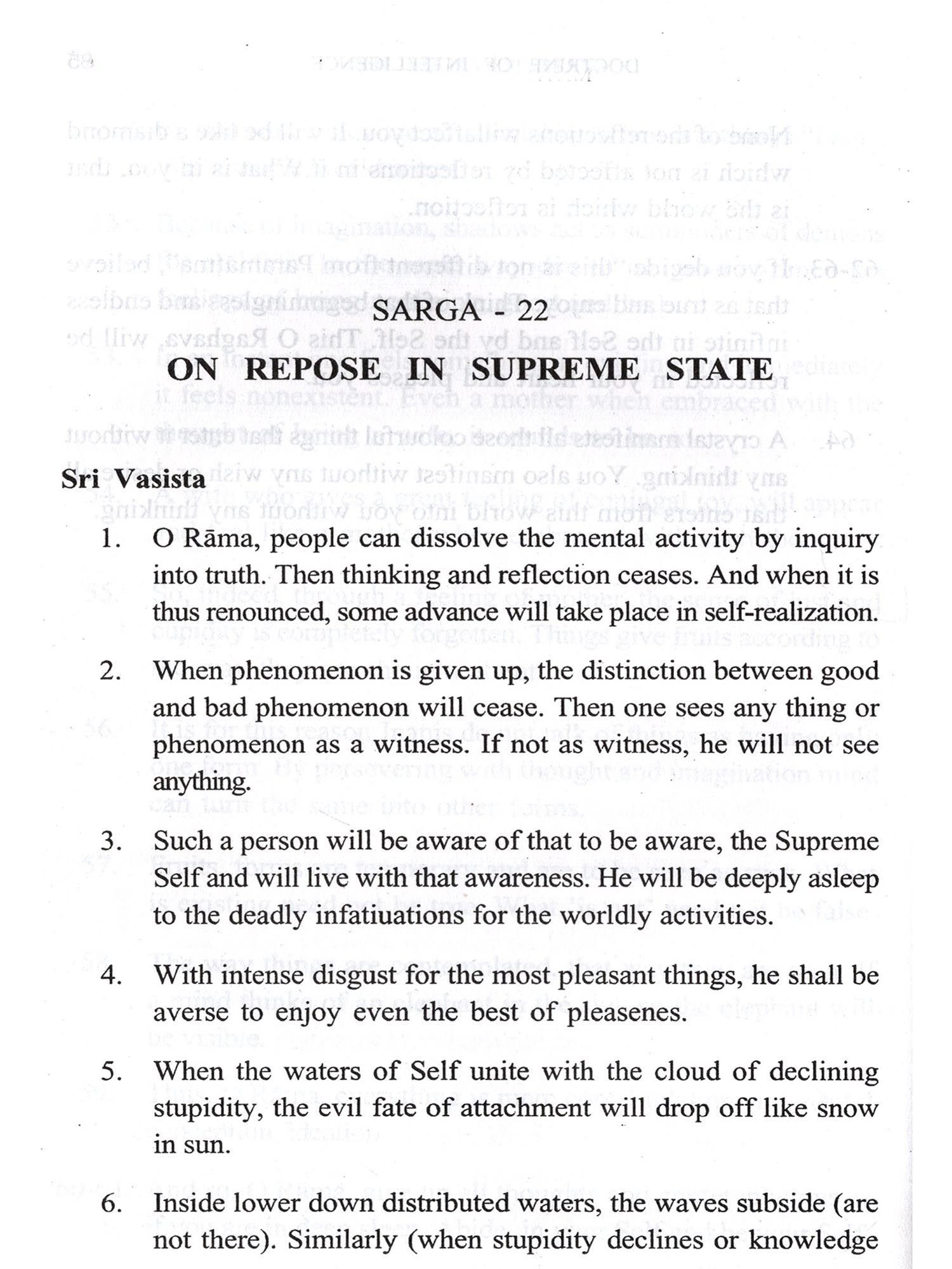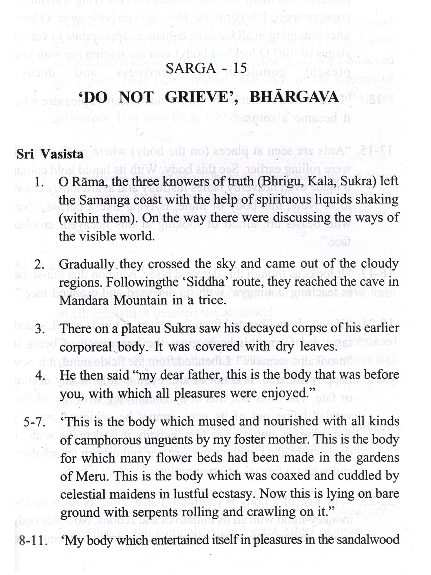Of the 32000 slokas, nearly 16000 constitute the Book of Nirvana. And it is also like a summary of all that has to be conveyed by Vasishta to Rama.