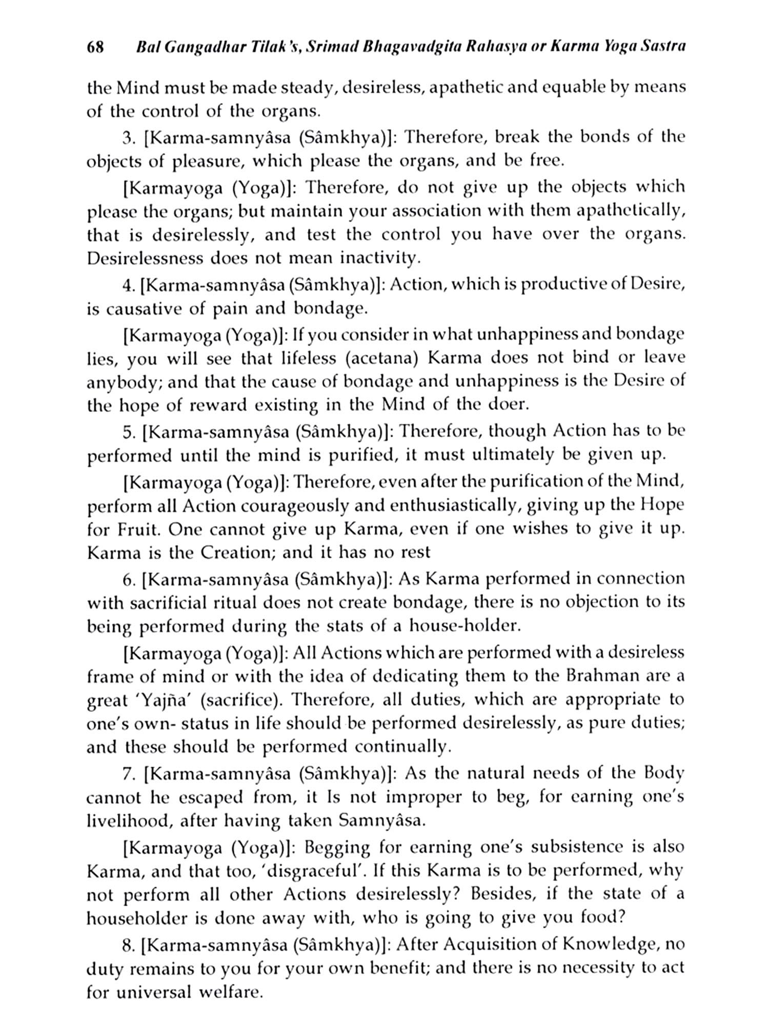 Through this perspective, Tilak underscores that all yogic paths ultimately serve Karma Yoga, reinforcing his belief that the Gita is a call to action rather than renunciation. Tilak's Bhagavadgita Rahasya remains an essential contribution to Indian philosophy, inspiring generations with its call to duty, patriotism, and selfless service. Through this work, he reinforces the belief that action rooted in righteousness leads to both spiritual and societal progress, making it a guiding light for individuals and nations alike.