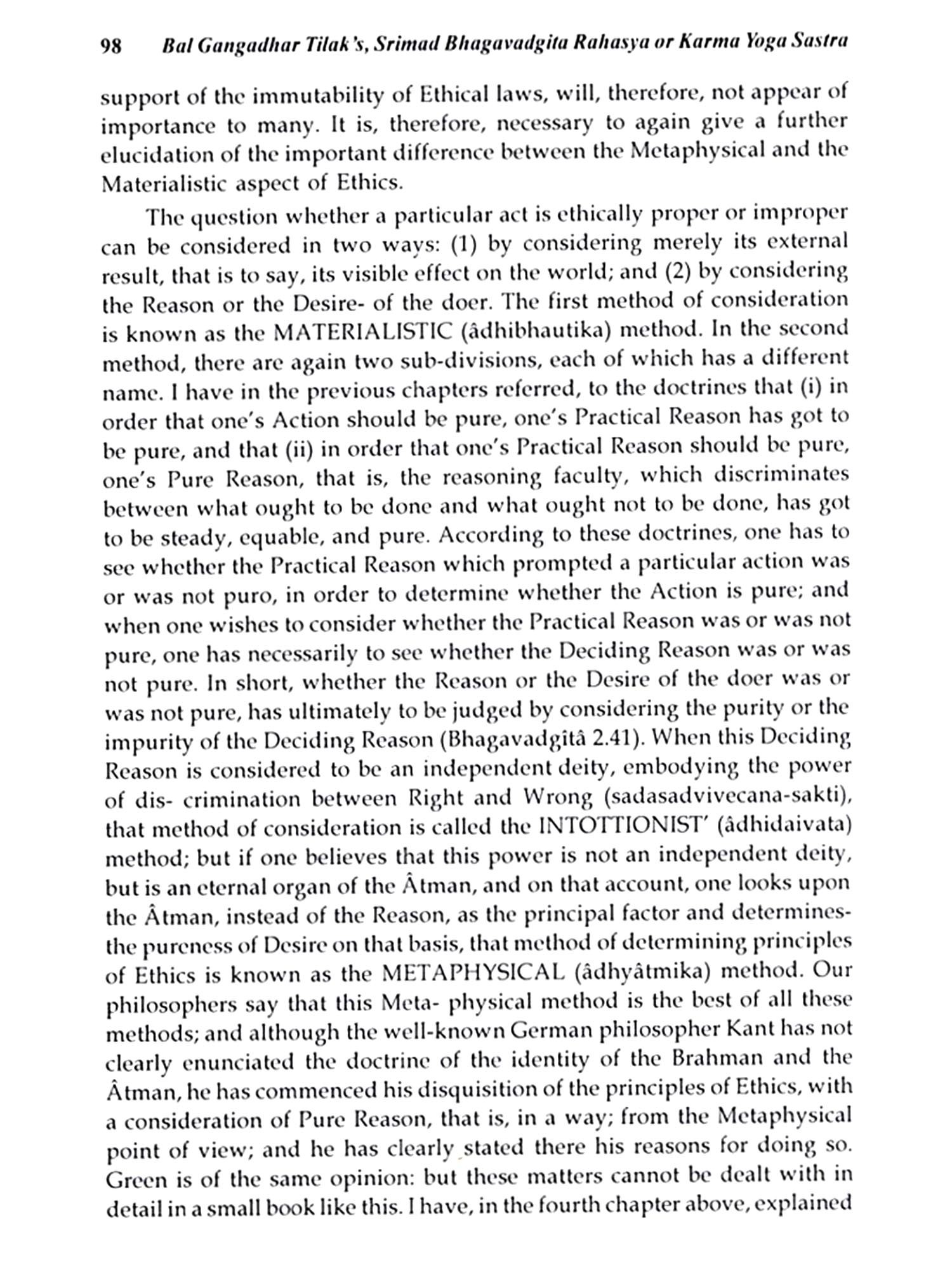In his work, Tilak passionately defends the ethical obligation to action (Karma Yoga), emphasizing that as long as an action is performed selflessly and without personal motive, it remains aligned with righteousness. He argues ques that the Bhagavad Gita's true essence lies in advocating the path of action, rather than focusing solely on knowledge (Jnana Yoga) or devotion (Bhakti Yoga).
