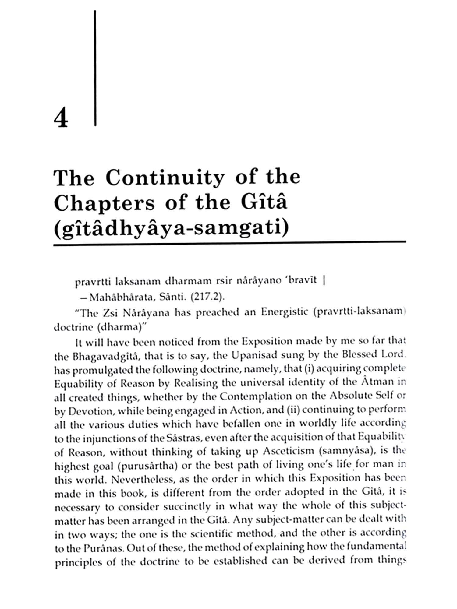 Tilak's approach is rooted in the Mimamsa school of interpretation, through which he systematically examines each verse of the Gita to establish that righteous action (karma) is superior to mere knowledge (jnana) or devotion (bhakti). He asserts that Lord Krishna's teachings encourage individuals to actively engage in their responsibilities without attachment to personal gains, making the Gita a scripture of dynamic action rather than passive renunciation.