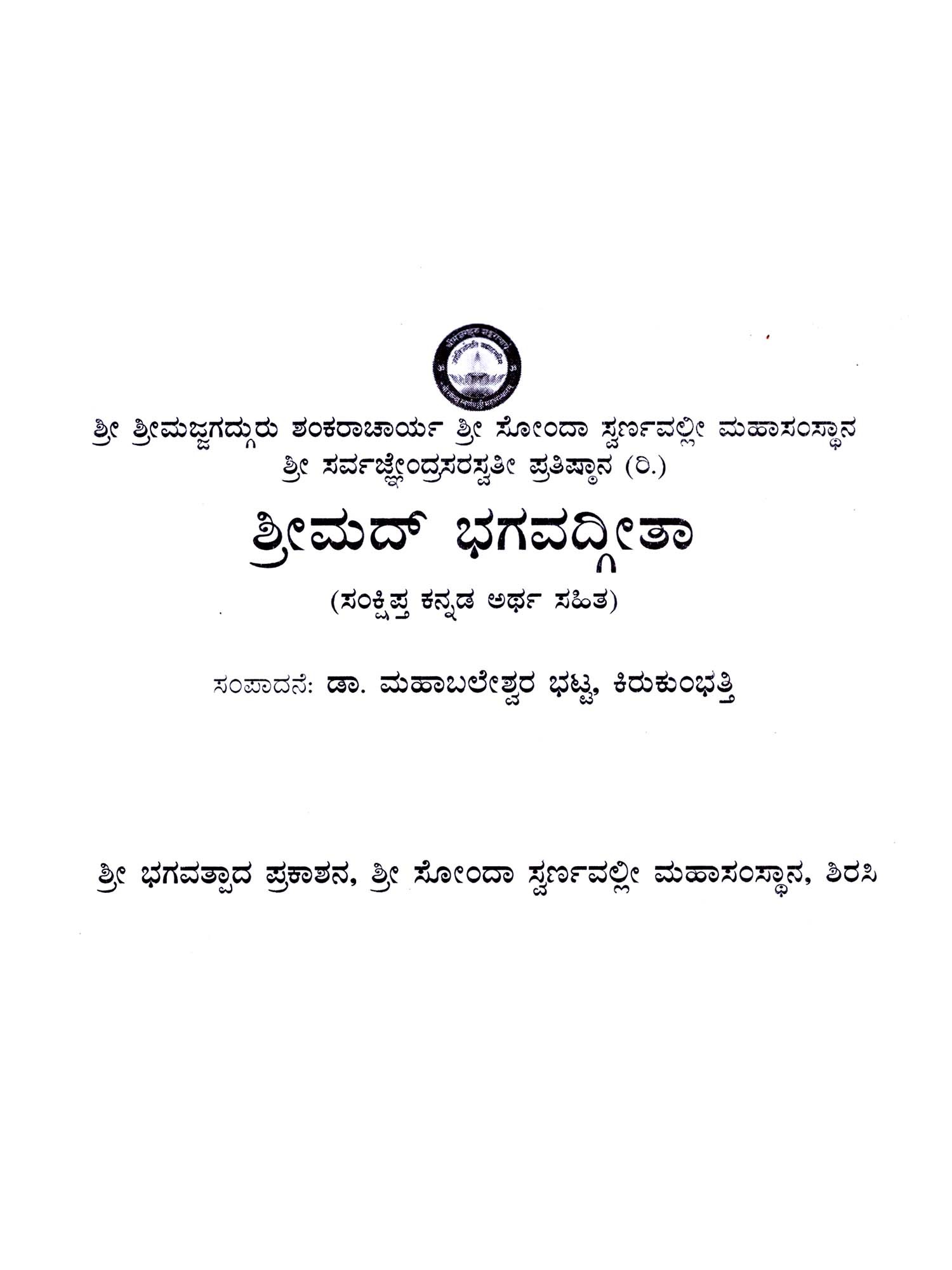 ಶ್ರೀಮದ್ ಭಗವದ್ಗೀತಾ (ಸಂಕ್ಷಿಪ್ತ ಕನ್ನಡ ಅರ್ಥ ಸಹಿತ): Srimad Bhagavad Gita (with Brief Kannada Meaning)