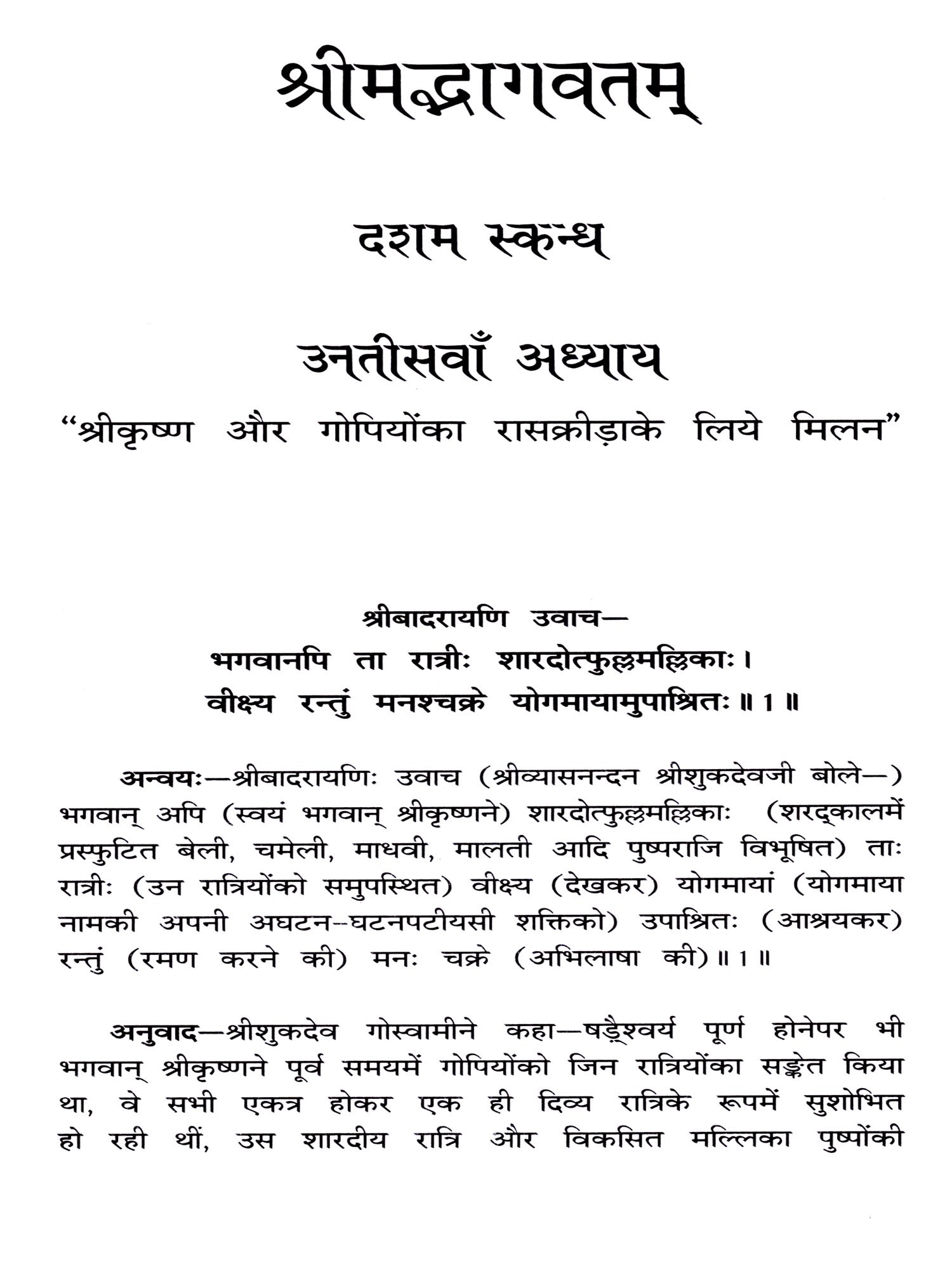 श्रीमद्भागवतम् दशम स्कन्ध (चतुर्थ खण्ड): Srimad Bhagavatam Skanda X (Chapters 29-33, Vol. IV- Sri Rasa Panchadhyay)