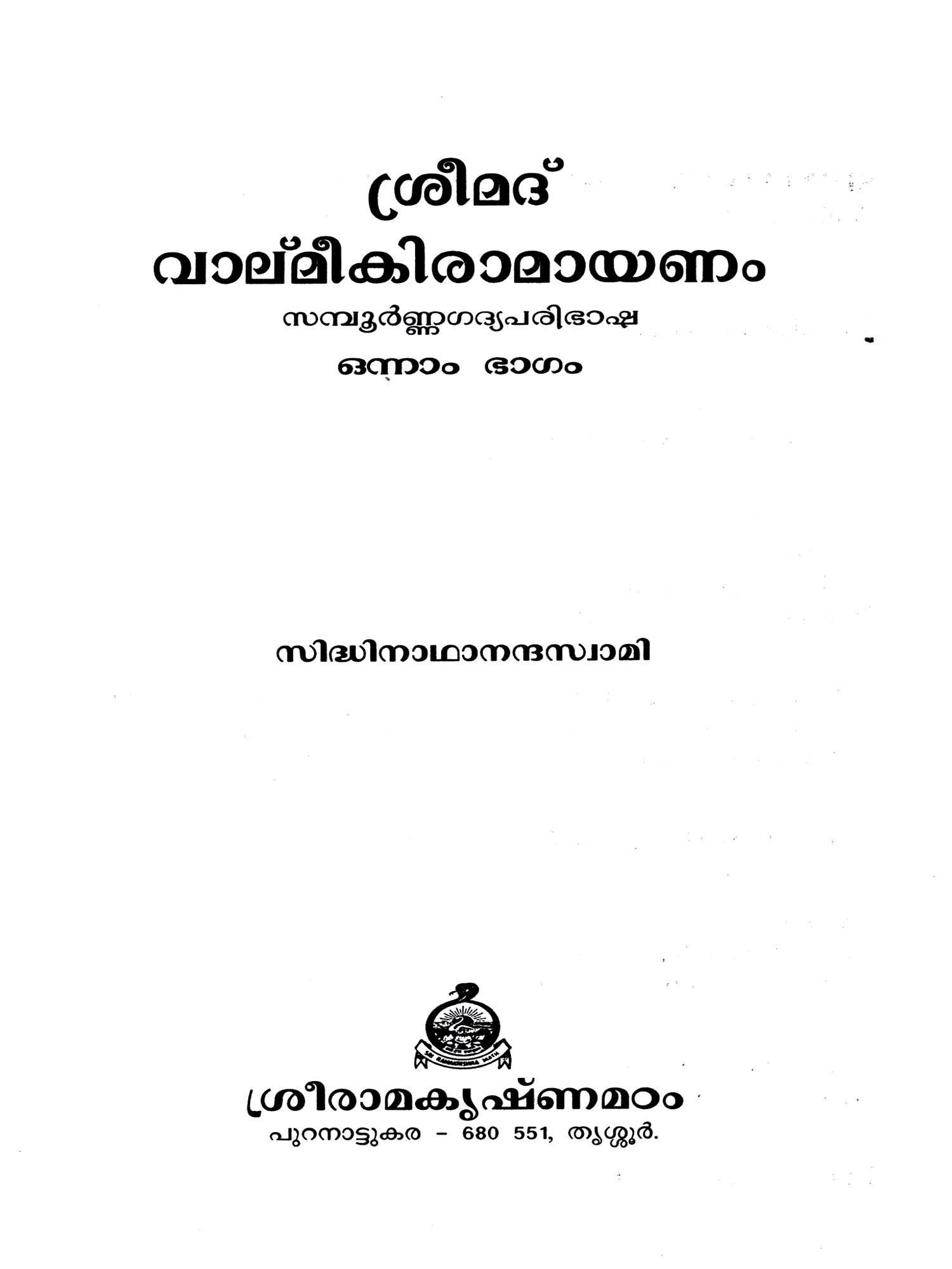 Sri Valmiki Ramayanam (Malayalam)