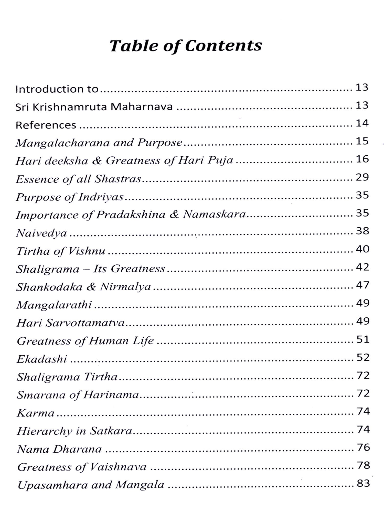 The work contains important instructions on following ekadashi, the importance of worshipping shaligrama and chakranika, the greatness of gopichandana and various other topics. It is an important source of information for any Madhwa and in fact any vaishnava.
