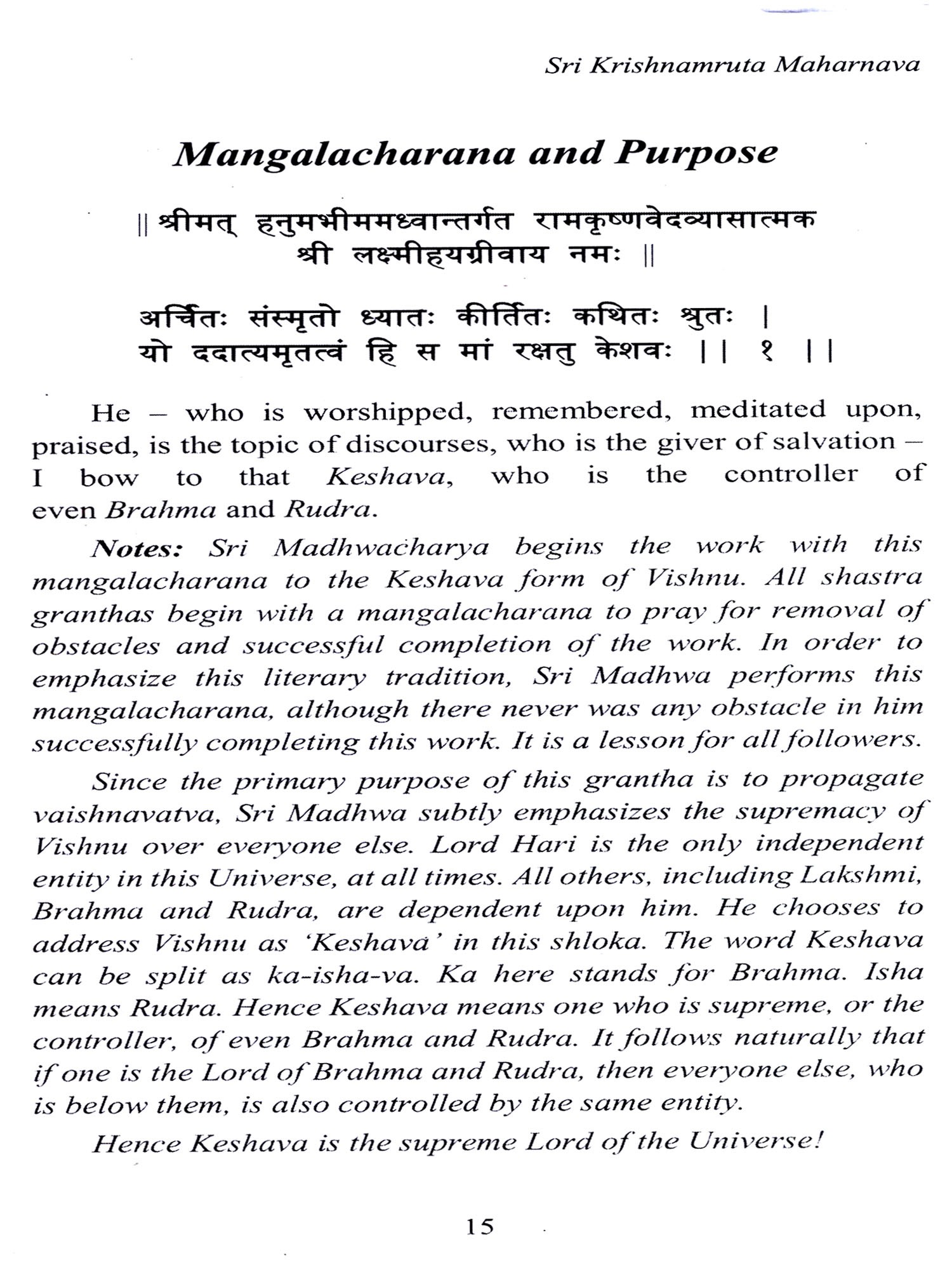 Thus, Sri Madhwa blessed the followers of the Dvaita sampradaya and vaishnavas in general with yet another masterpiece of a work to aid them on their path to sadhana and eventually moksha.