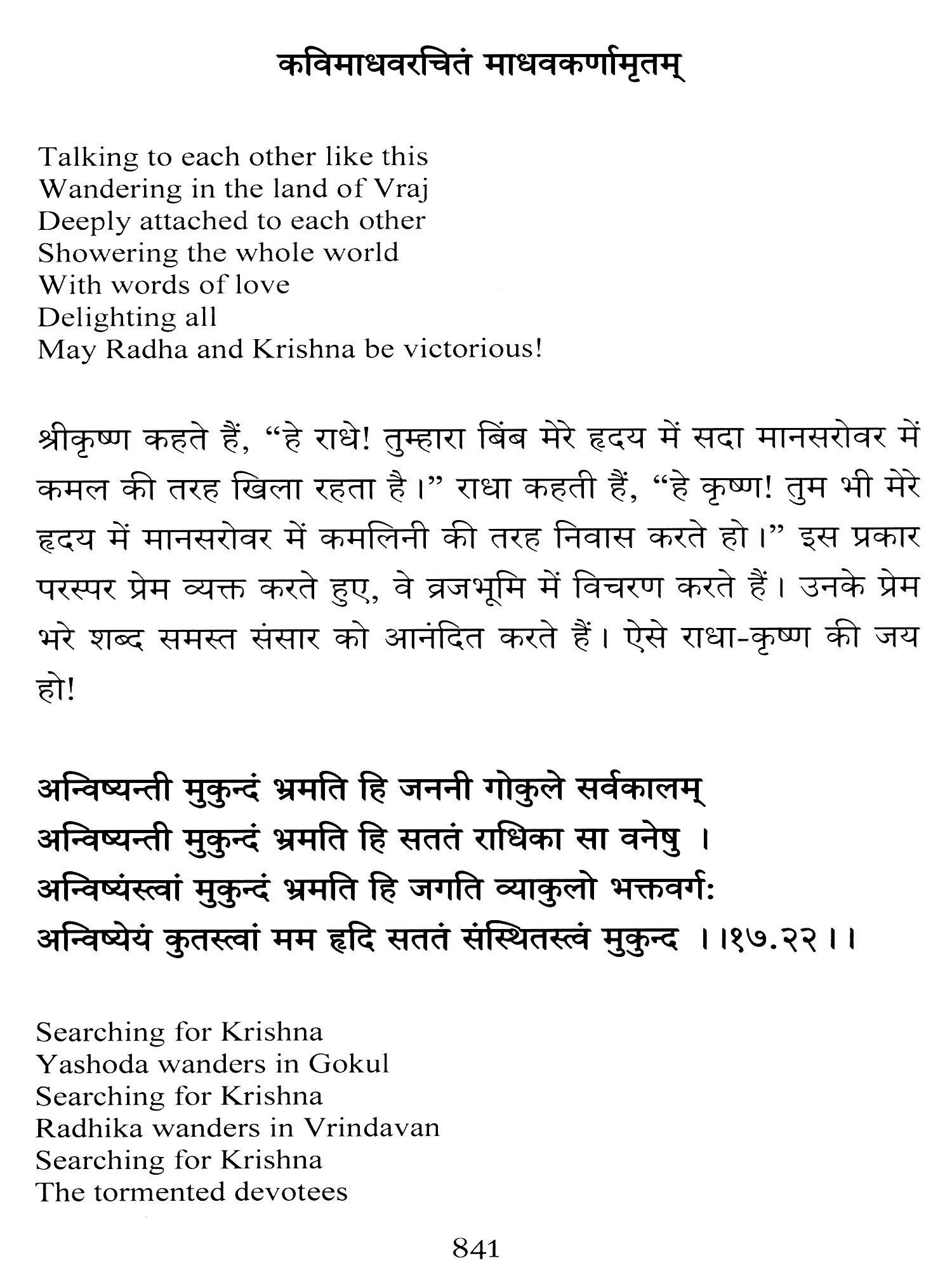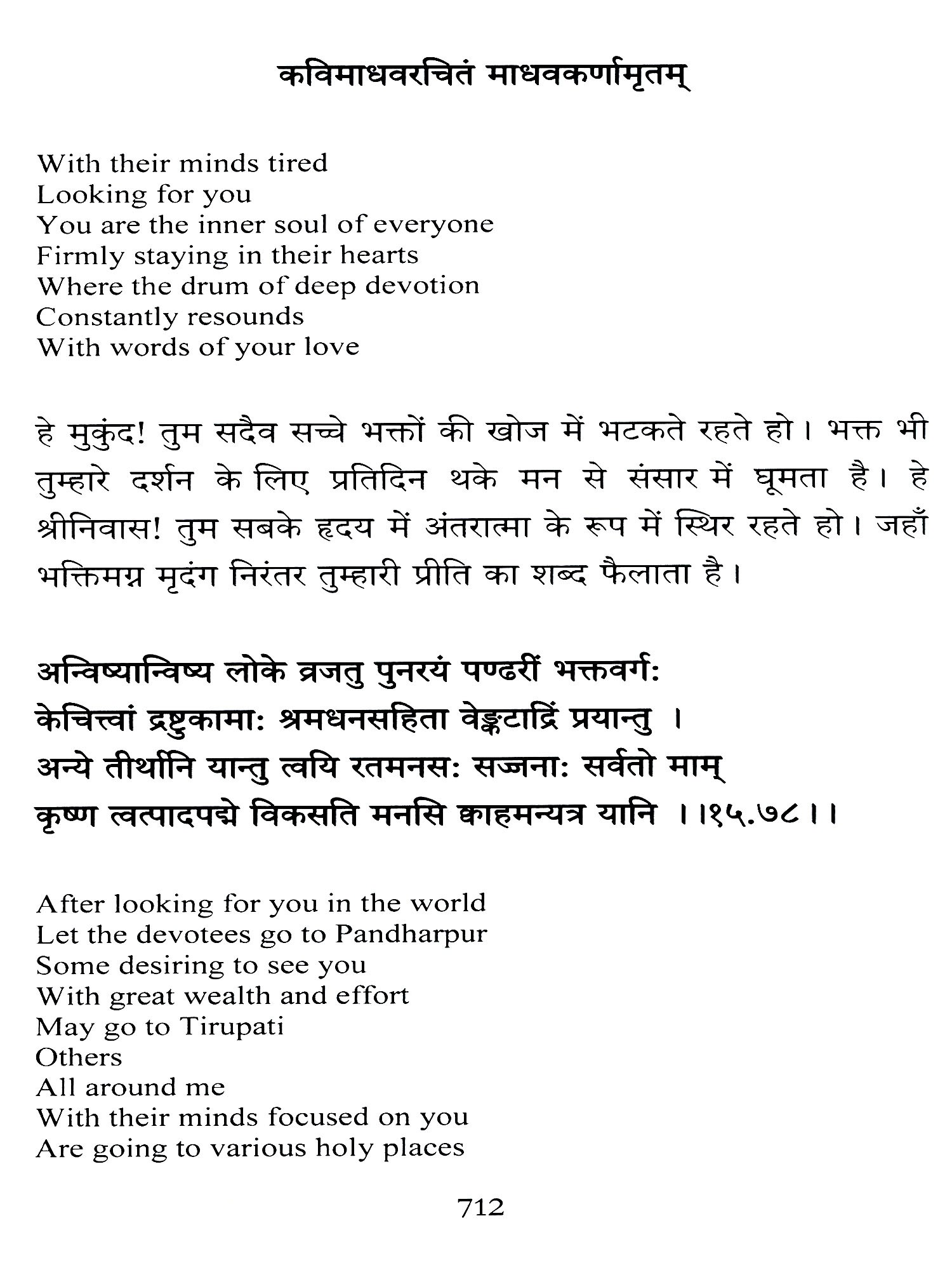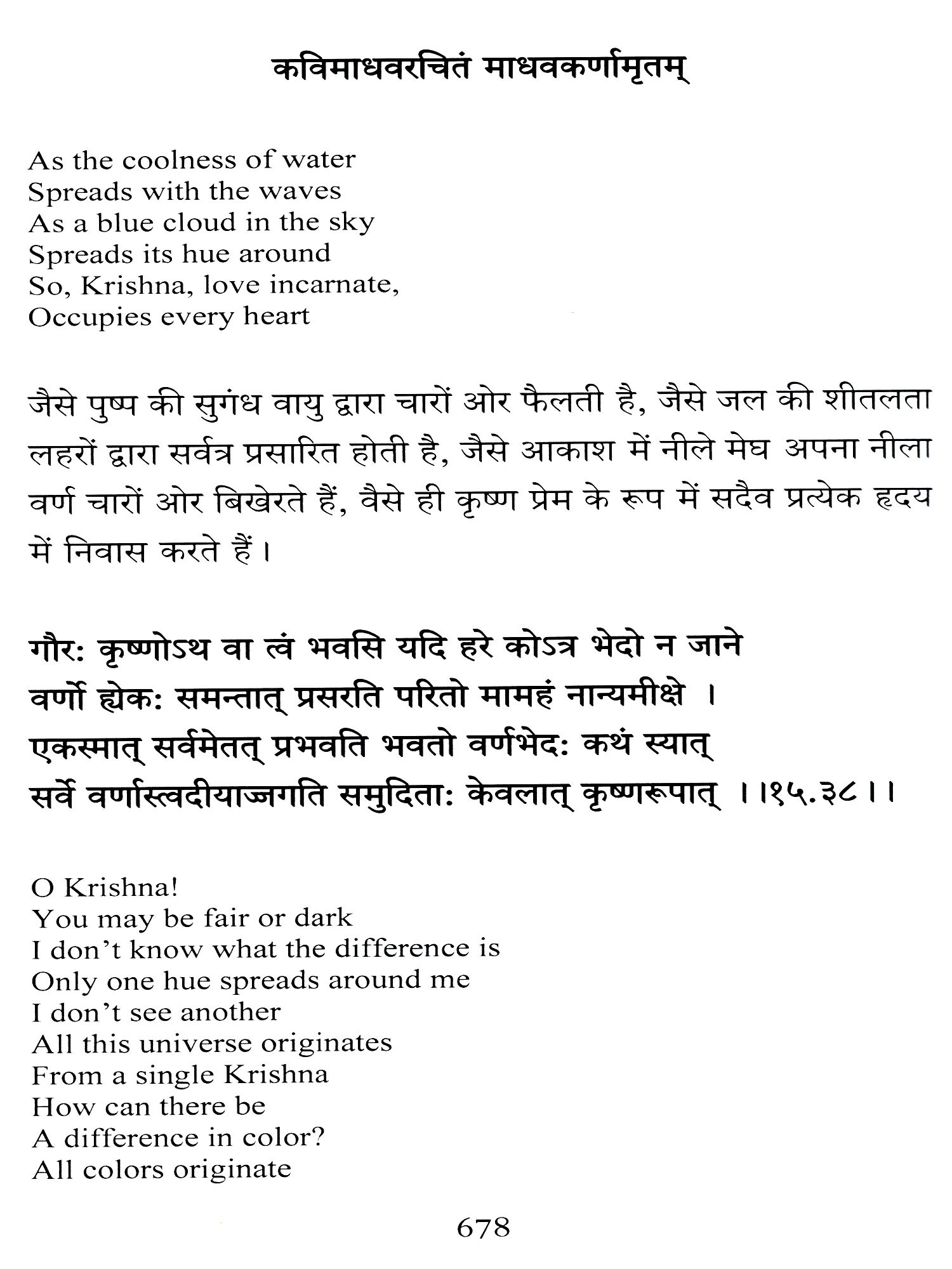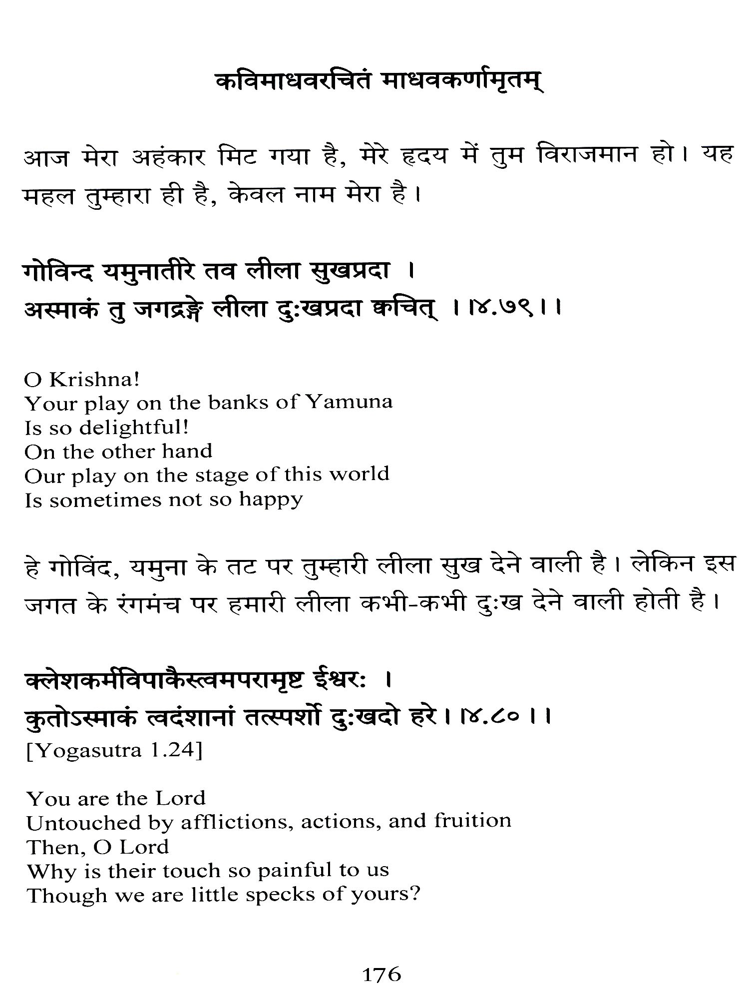 After coming to the USA in 1972, his attention was primarily focused on analytical scholarship in the areas of Sanskrit, linguistics, philosophy and history. However, he returned to Sanskrit poetry around the time of his retirement in 2017 and since has produced many Sanskrit compositions. A full collection of his Sanskrit compositions is included in the felicitation volume Madhavamahima, published by the Devavani Parishad, New Delhi. For the past several years, Dr. Deshpande began composing his Krishna verses, often one per day, and sharing these on various internet groups. These verses were highly appreciated by the readers.
