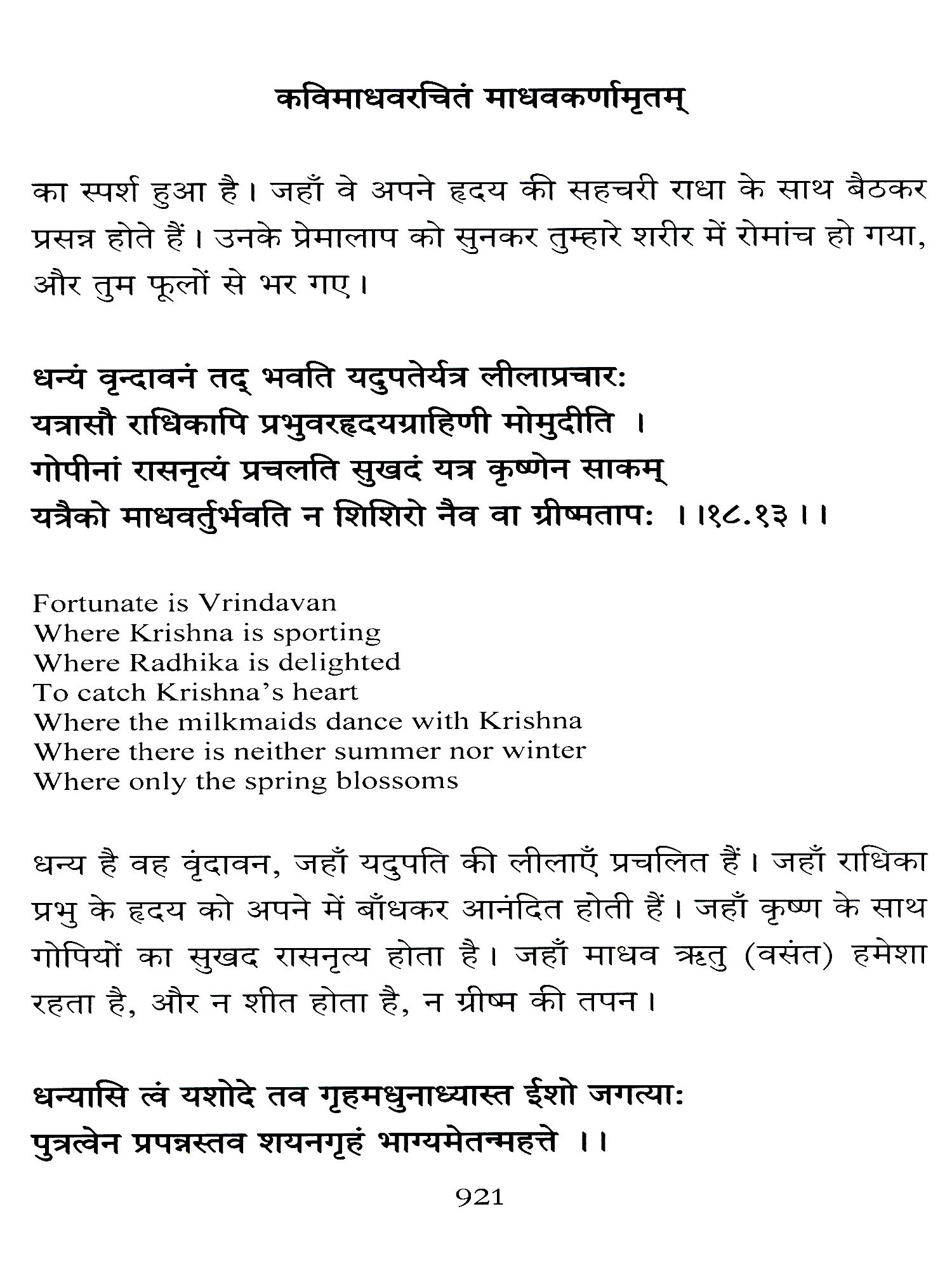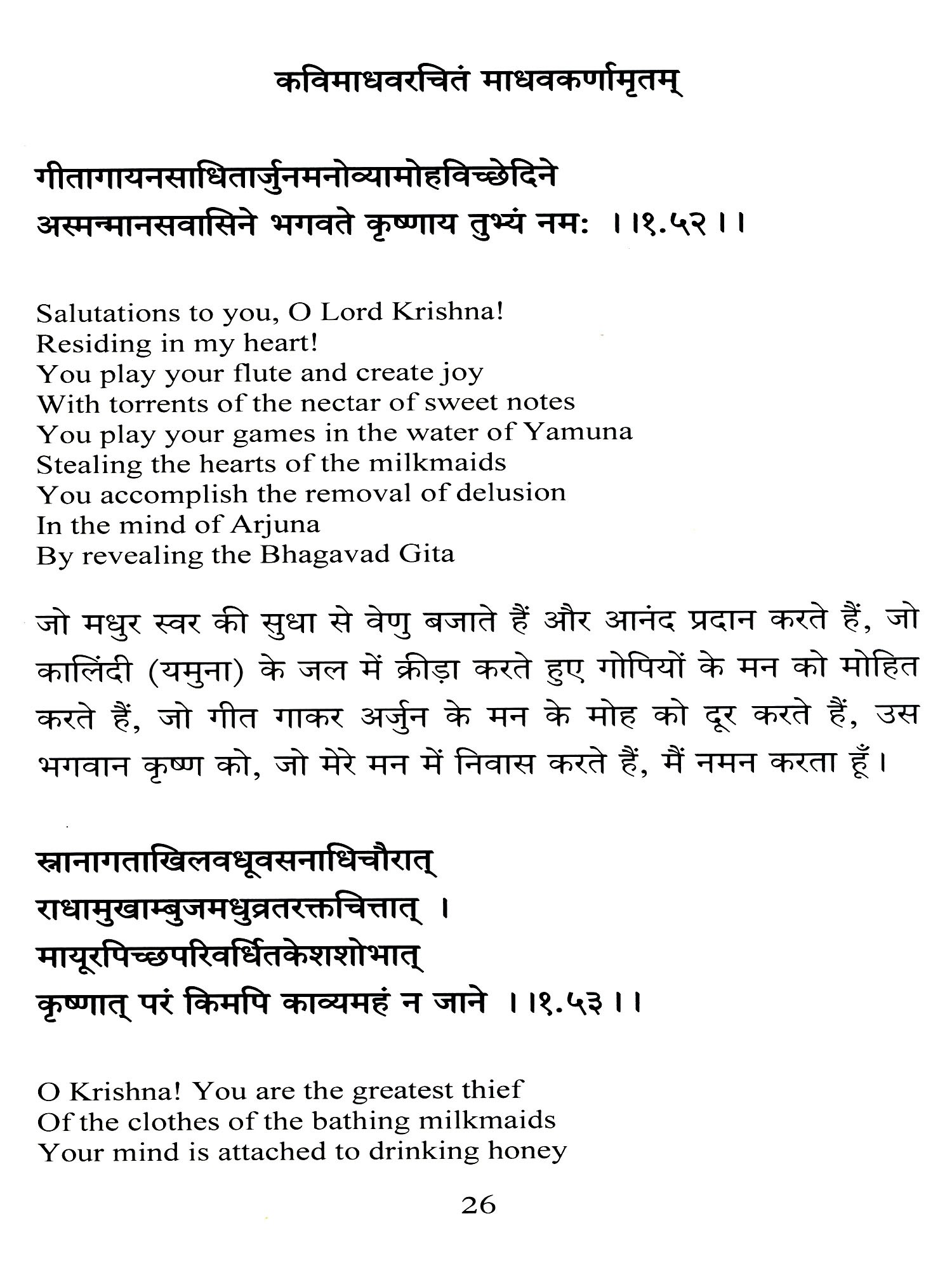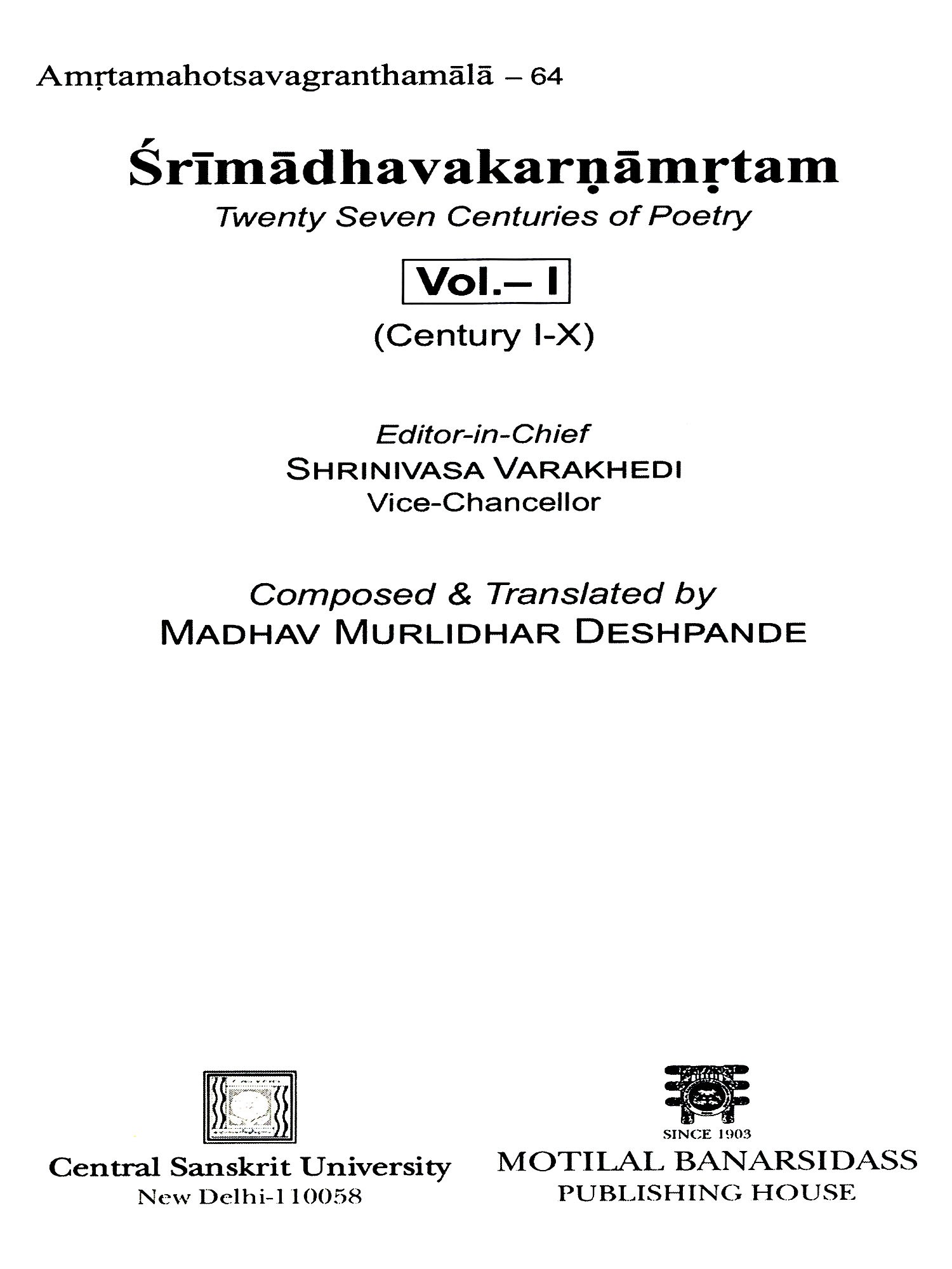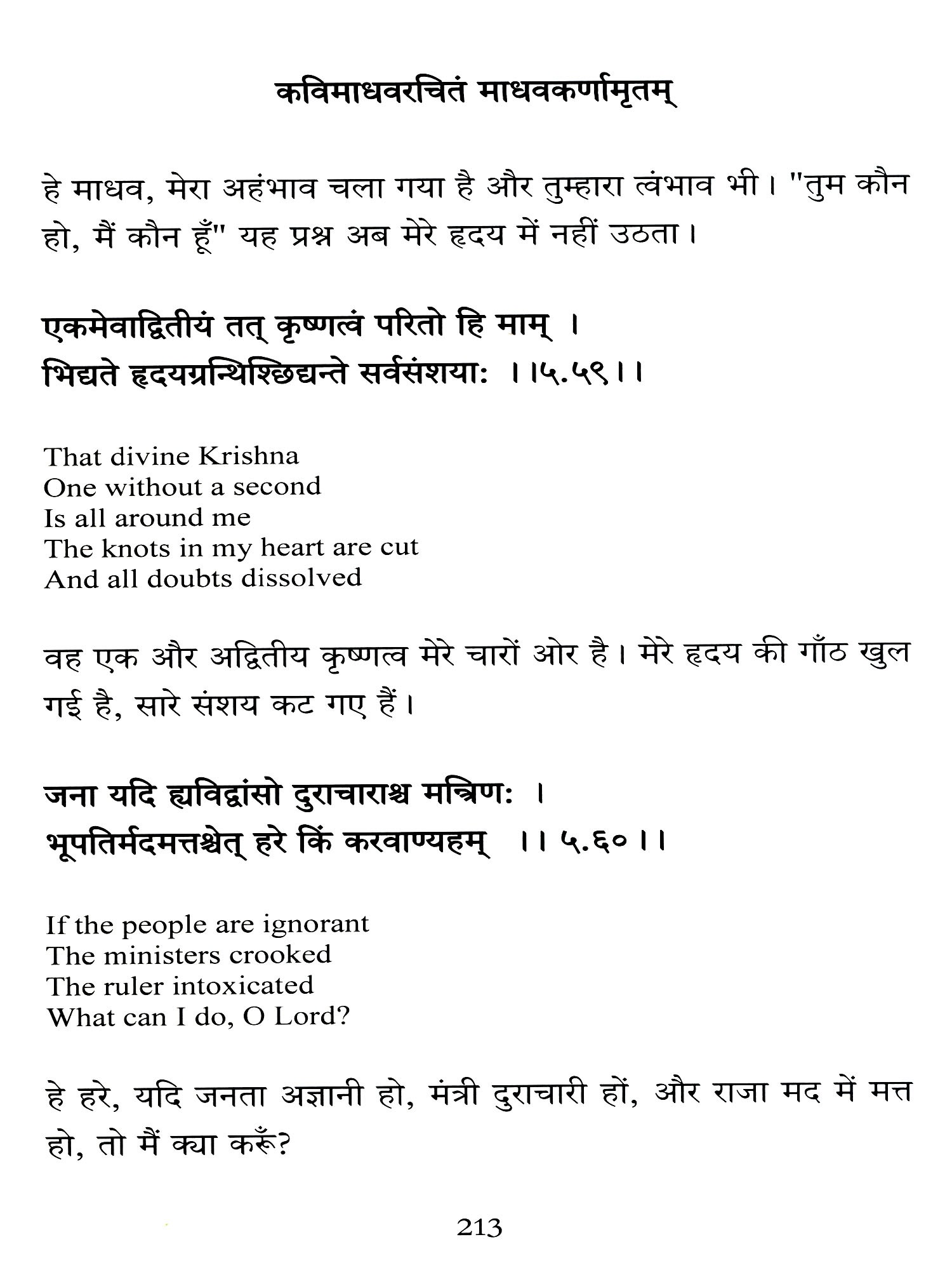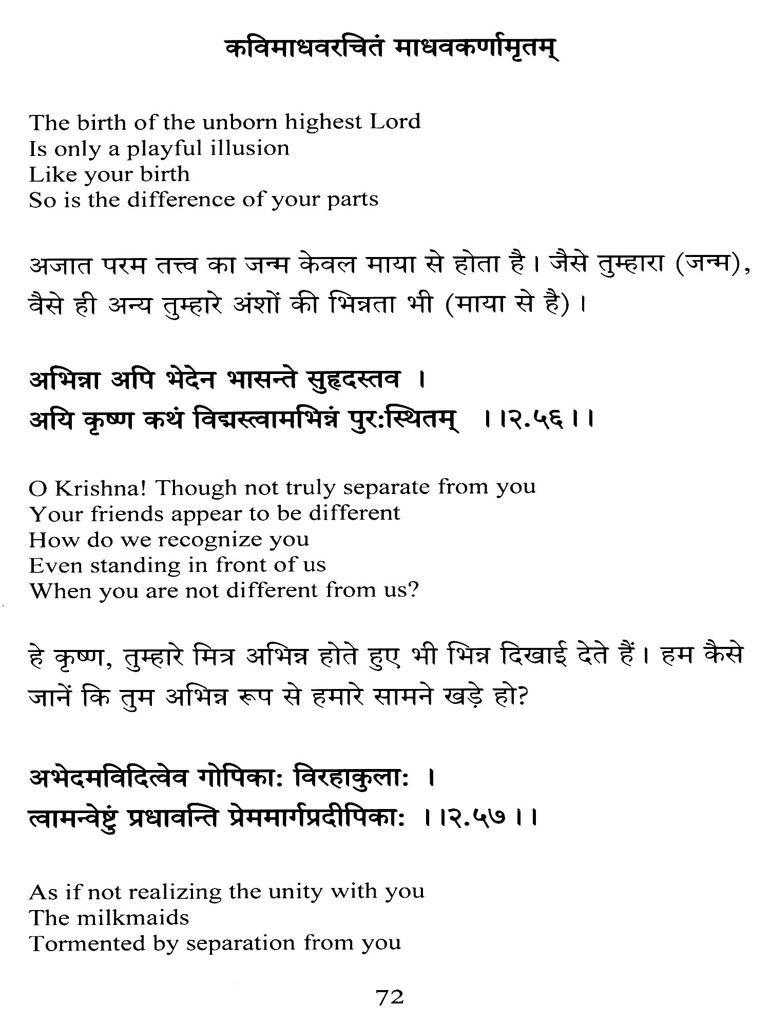 After coming to the USA in 1972, his attention was primarily focused on analytical scholarship in the areas of Sanskrit, linguistics, philosophy and history. However, he returned to Sanskrit poetry around the time of his retirement in 2017 and since has produced many Sanskrit compositions. A full collection of his Sanskrit compositions is included in the felicitation volume Madhavamahima, published by the Devavani Parishad, New Delhi. For the past several years, Dr. Deshpande began composing his Krishna verses, often one per day, and sharing these on various internet groups. These verses were highly appreciated by the readers.