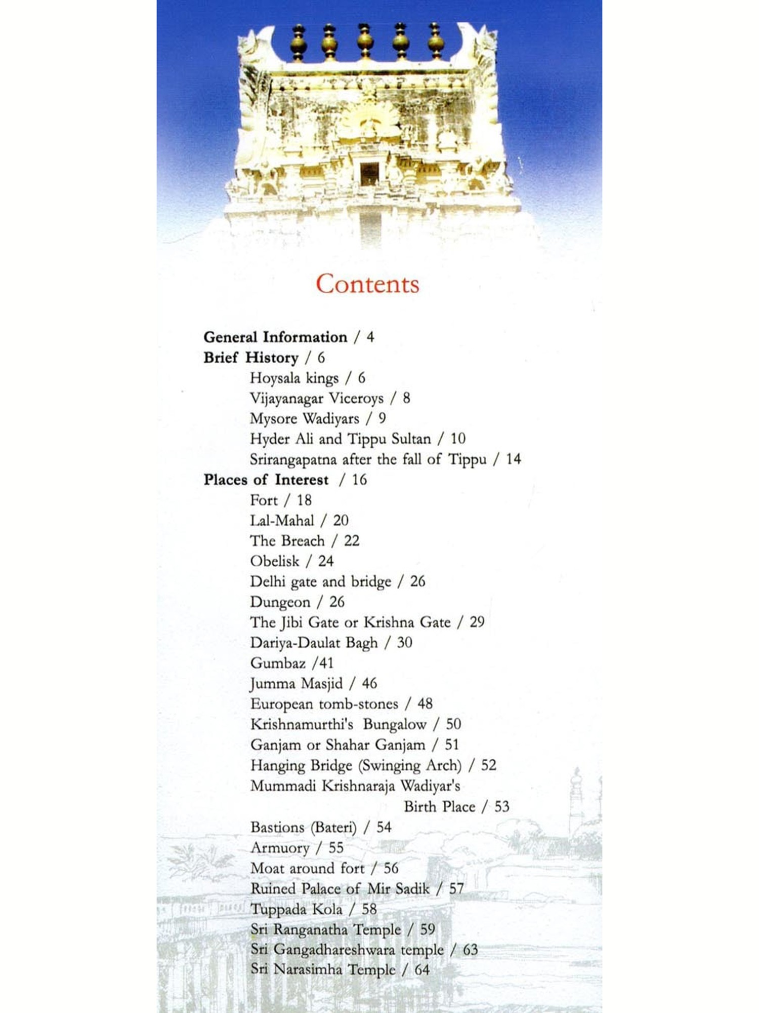 Srirangapatna, a small municipal town with a population of 18,148 as per the census of 2001 is well known for its rich history and heritage. This erstwhile capital of the Mysore kingdom is situated at a distance of 125 kms. from Bangalore.
