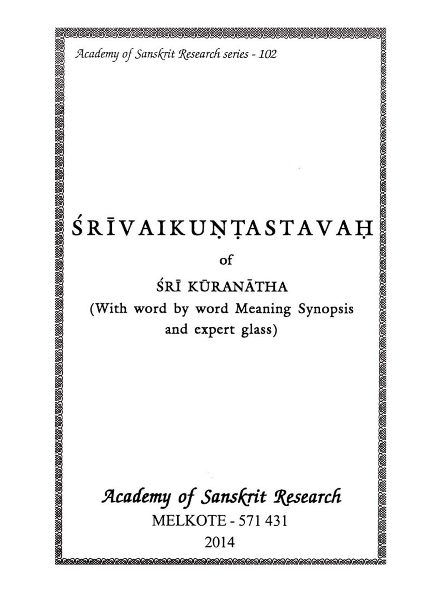 ಶ್ರೀ ಕೂರನಾಥ ವಿರಚಿತಃ ಶ್ರೀ ಸುಂದರಬಾಹುಸ್ತವಃ- Sri Sundarabahustavah of Sri Kuranatha (With Word by Word Meaning Synopsis and Expert Glass in Kannada)