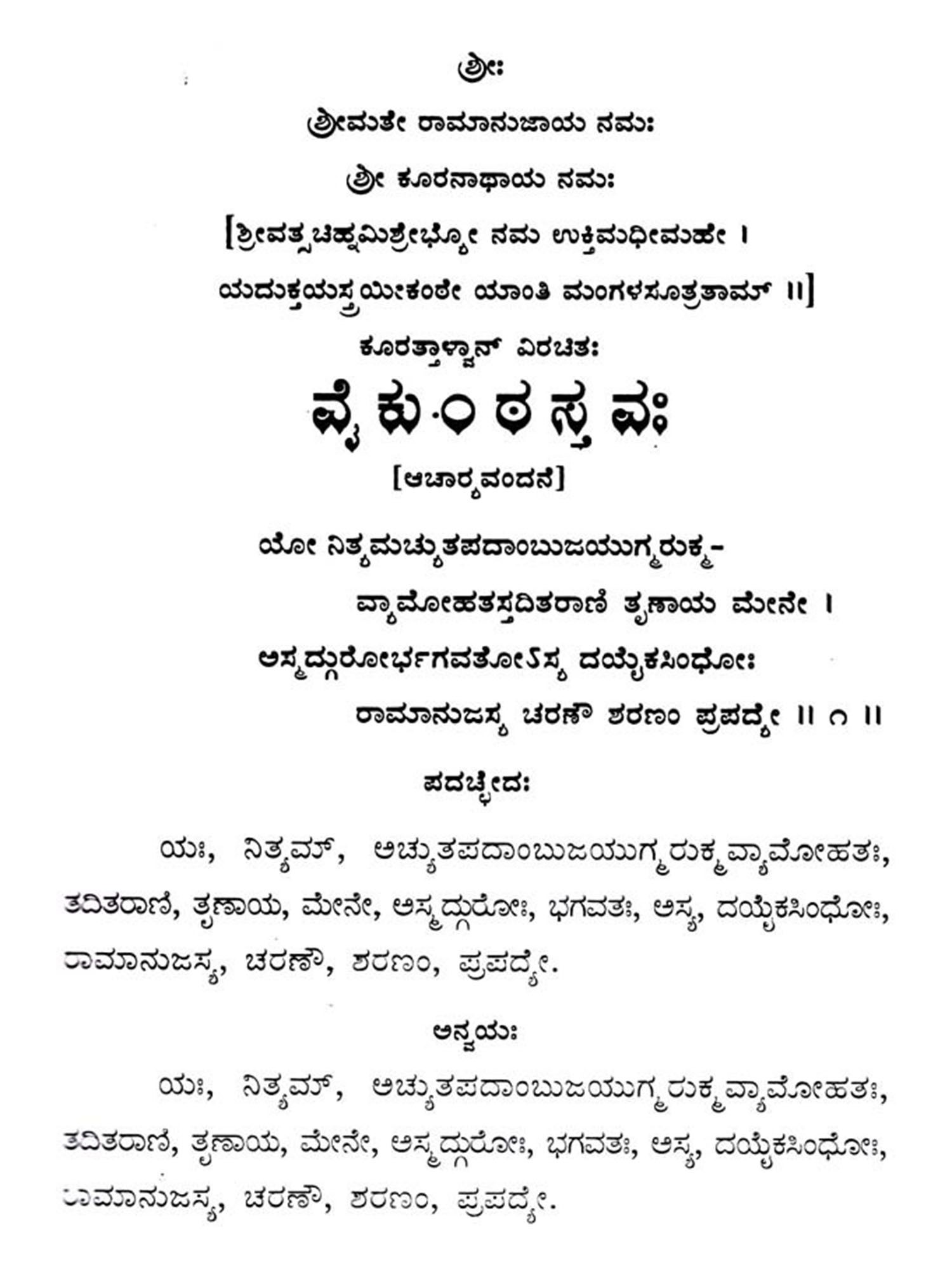 ಶ್ರೀ ಕೂರನಾಥ ವಿರಚಿತ: ಶ್ರೀಸ್ತವಃ- Sri Kuranatha Virachita: Sristavaha (Kannada)