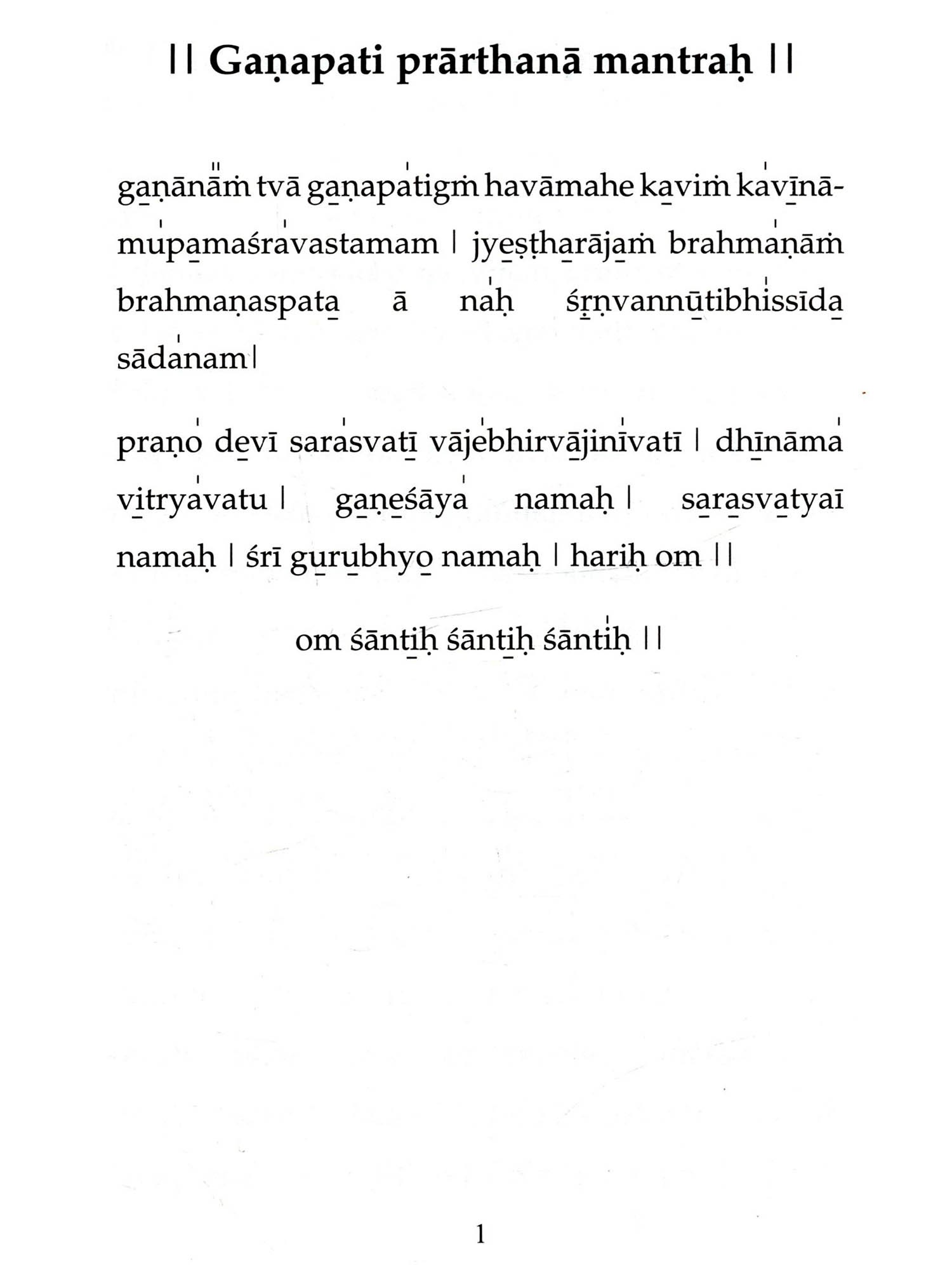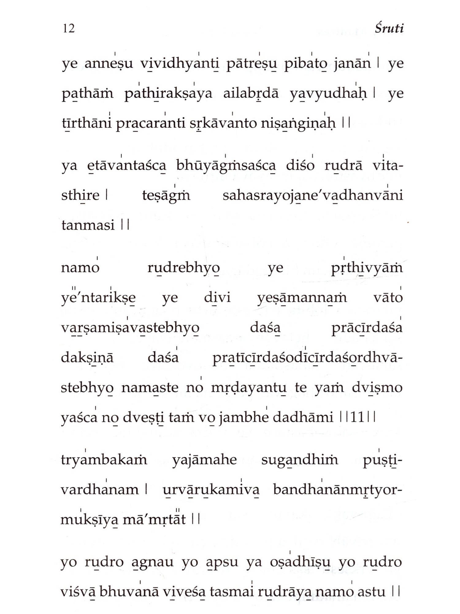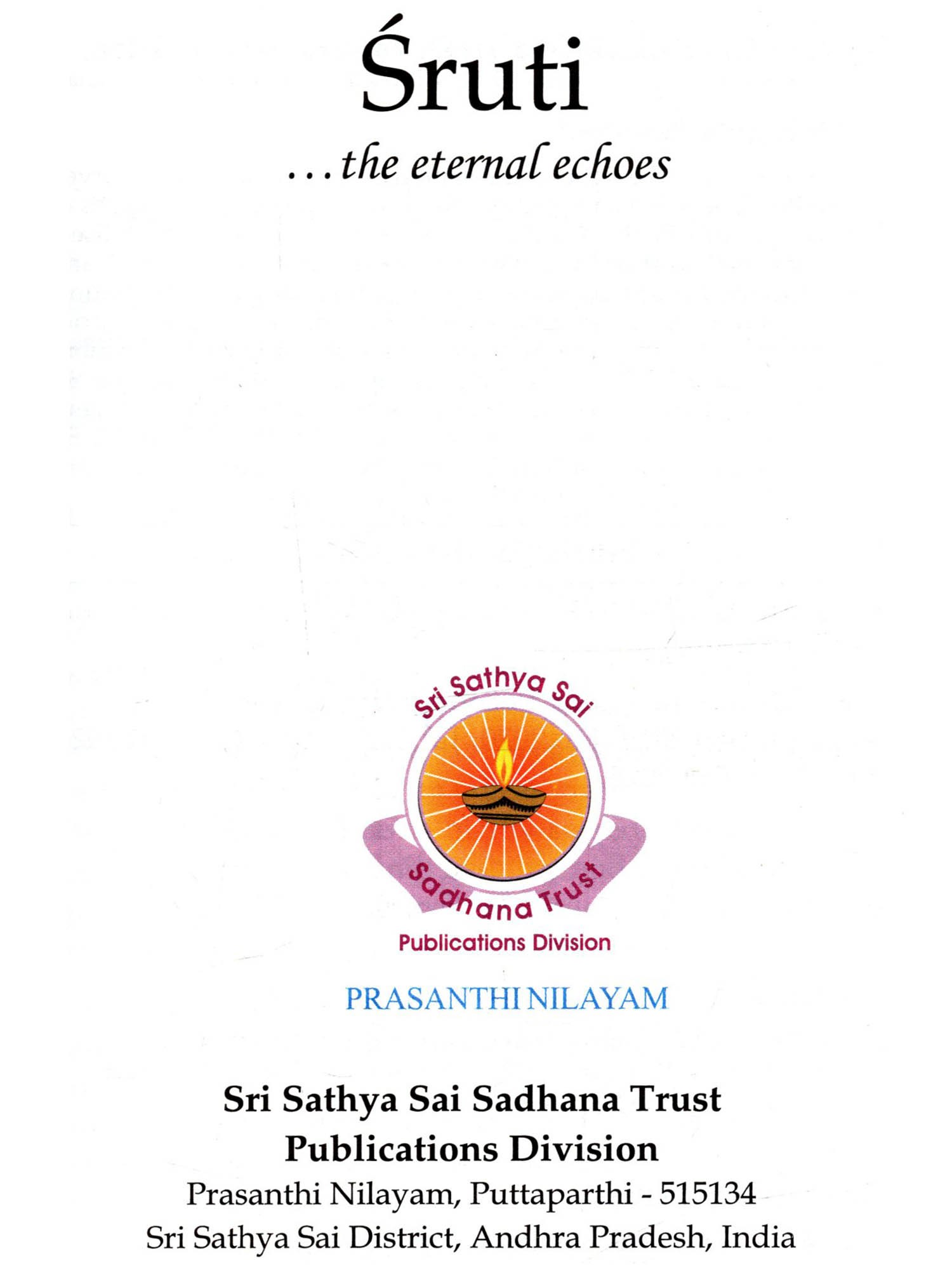 Aum is the primordial sound - God in the reverberating form of sound eternally, from which emanated all the Vedas. They are not authored by human beings. They are timeless, and infinite in number. Proper chanting of Vedic Mantras removes the blemishes and difficulties of both the person who chants and the entire world. Bhagawan has advised: "The Vedas are the very form of God. There are many mantras to propitiate the five elements. The five elements are our very life-breath. They sustain our life... Everyone should necessarily learn the Vedas, contemplate on them and chant them wholeheartedly. When all people chant the mantras in unison and in perfect harmony, Brahman will manifest right in front of you. The sound of the Vedas is highly sacred. Whatever Vedic mantras you learn, you should be able to chant them properly. It is compulsory for everyone to learn the Vedas." Sruti is a unique book that helps you to follow and chant the Vedic Mantras day-wise, as they echo and reverberate every day in the Prasanthi Nilayam Mandir. With its help, any new aspirant can easily learn these Vedic Mantras with a little effort. This book has an introduction to Vedas, a transliteration scheme for the English version, an intonation lesson, the correct method of chanting, and also a caution on incorrect chanting. Starting with Ganapati Prarthana, it has 55 major Vedic Chants, including Sri Rudram (namakam and chamakam), several important suktams like Purushasuktam, Mahanarayananopanishad and other upanishadic mantras, ghanapathas, Aruna Prasnah, Sarva Devata Gayatri, svasti vachaka shloka and kshama prarthana.