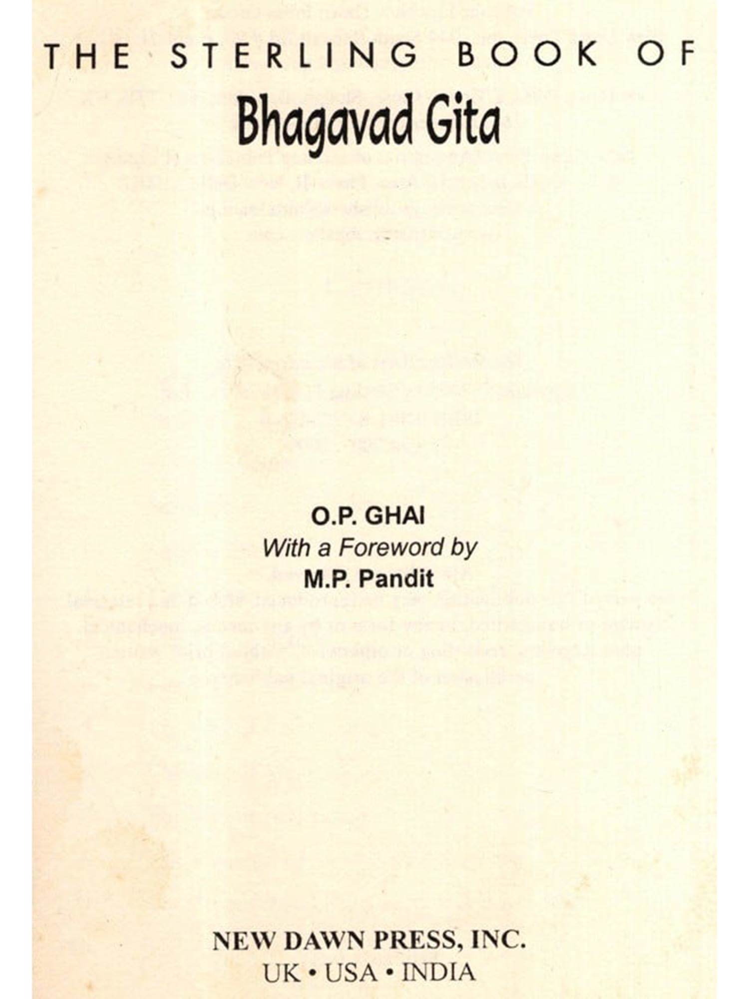 The present exposition by Shri O.P.Ghai proceeds from no preconceived positions. The Gita grew in him during his study of over forty-five years, and naturally formed his guiding principles in life.