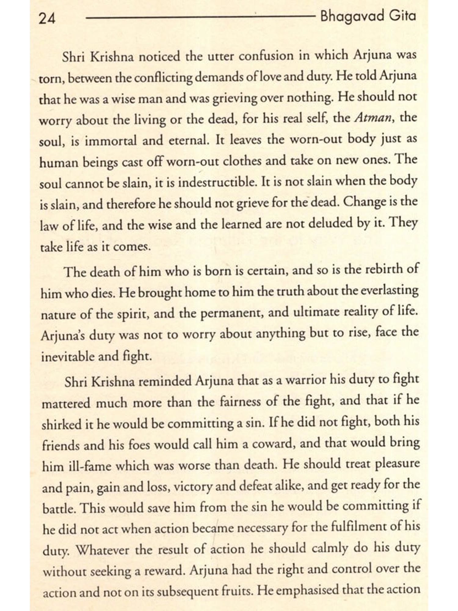 It would take the reader only a couple of hours to go through the text of the Gita-and about the same time to read this book.
