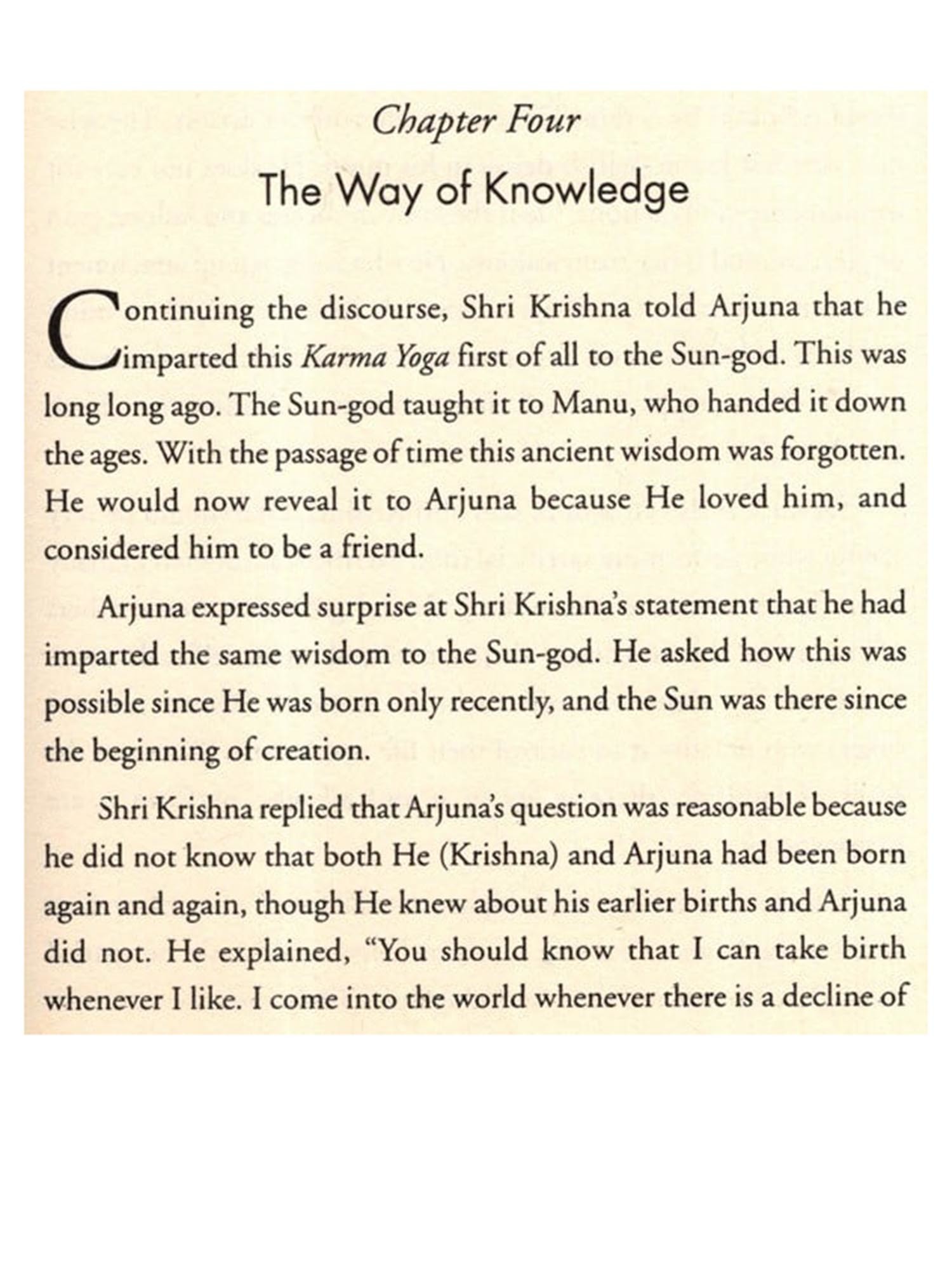 It was on the first of January 1989 that I made up my mind to undertake such a task, translating the Gita's eighteen chapters in eighteen consecutive days. I started writing its first chapter on January 4 at 3.30 a.m. I made up my mind to do a chapter a day. I awoke any time between 3 and 4 a.m. and continued writing till I had finished the chapter. It strengthened my belief in the saying that 'You can accomplish anything if you think you can.' The book was completed as scheduled.