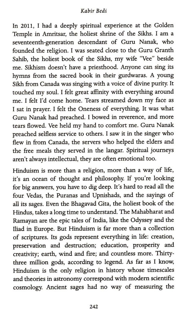As Kabir bares his soul, the stories come tumbling out. That first magical encounter with the Beatles as a student in Delhi. The sudden move to Bombay, away from home, friends and college. His exciting years in advertising, his extraordinarily successful career abroad and his many painful setbacks. His relationships with the irrepressible Protima Bedi and the dazzling Parveen Babi that changed the course of his life. Of the scars they left, and the trauma of three divorces, and how he finally found fulfilment. An> why his beliefs have changed.