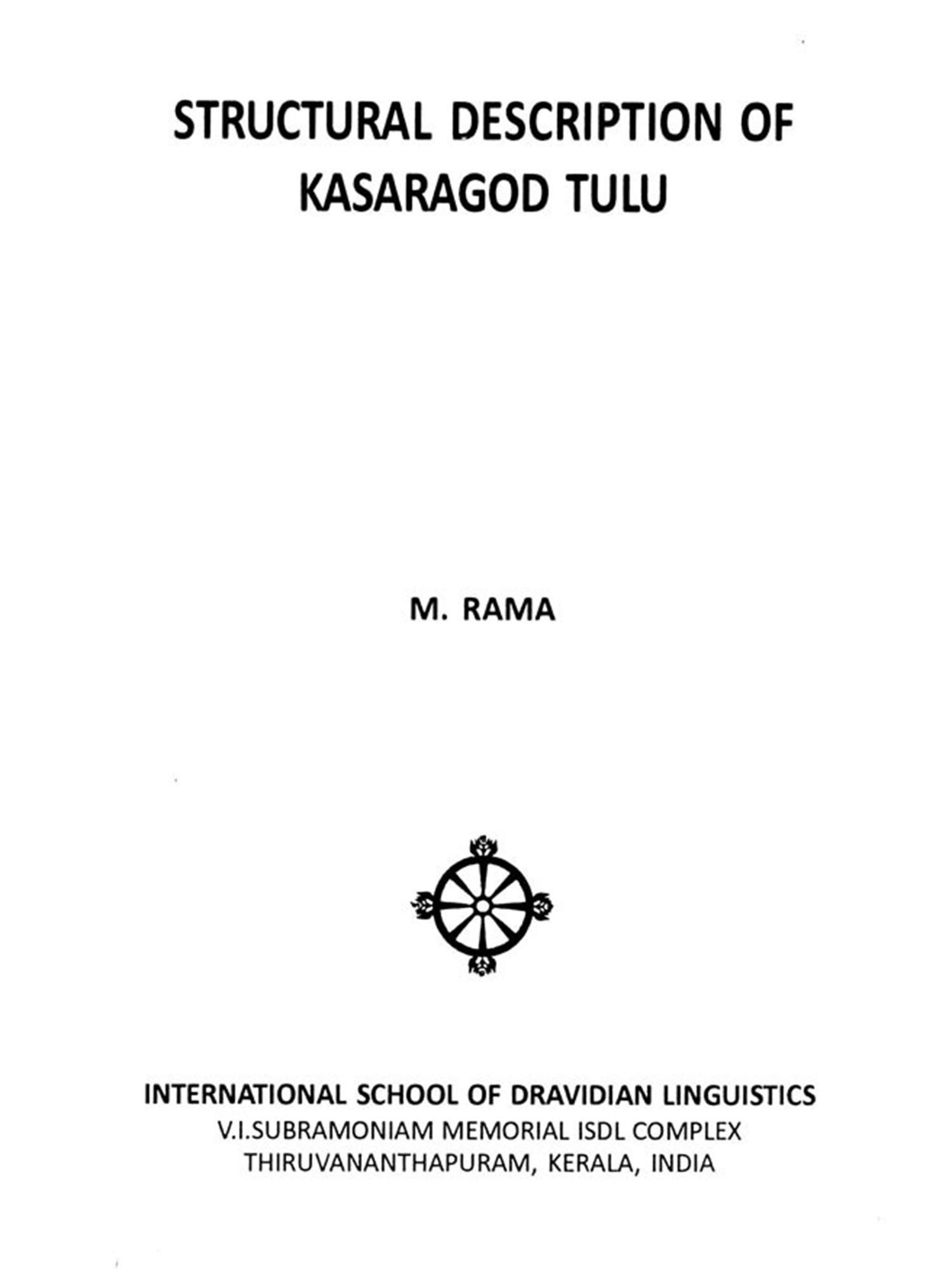From the socio-cultural and linguistic point of view, the contribution of Tulu speakers to Sanskrit, Kannada and Malayalam is quite significant. The western variety of Grantha script (Tulu-Malayalam Grantha) was quite popular in Tulunadu. The present day Malayalam script is a development of this (Tulu-Malayalam Grantha > Arya Ezhuthu > Malayalam). Another writing system 'Tigalari' evolved from the Grantha and Malayalam scripts was also in vogue in the Tulu region. The bondage of Tulu people to Kerala society was very strong in the ancient periods. 'Kalari' the famous martial art of Kerala was spread in Tulunadu also. The Tulus had a school of their own which is known as 'Tulunadan Kalari' and many of the youngsters from Kerala were used to get training in this martial art from 'Tulunadan Gurukkal. So also, it is opined that the traits of the Kerala's classic performing art 'Kathakali' can be seen in Yaksagana of Tulunadu also. In temples and in all other religious rituals of Kerala, the Tulu Brahmins are treated on par with Namboodiris (Kerala Brahmins). In Kerala temples, only the Namboodiris and Tulu Brahmins (Embrantiri/Potti etc.) are allowed to perform pujas while other Brahmins are not entitled for the same. The naga worship and the existance of kavu is another feature found in both the societies. One can see a lot of common characteristics between the Tulus and the the Malayalam speaking people such as matrilineal system of inheritance, preference for red rice, common types of many a dishes etc. In the evolution of Malayalam language, it is evident that the influence of Tulu language might have some significant role. Some of the present day Malayalam words can be traced as Tulu origins. In short, Tulu language and people have a long standing historical connection with Malayalam language and the people of Kerala. Prof. M. Rama, a native of Kasaragod who is proficient in Tulu, Malayalam and Kannada, is the apt person to analyze the Tulu dialect of Kasaragod region. His attention is the non-Brahmin dialect of Tulu which gives added weight to this work. Generally speaking, in India it is noticed that the lower stratum of the society preserves more archaic features than that of the people belonging to the upper stratum. Tulu too cannot be considered as an exception to this. May be due to this, Prof. M. Rama has gathered Tulu corpus for his study from the middle castes like Kumbara, Agasa, Moily, Billava etc., settled in the Kasaragod district of Kerala state.