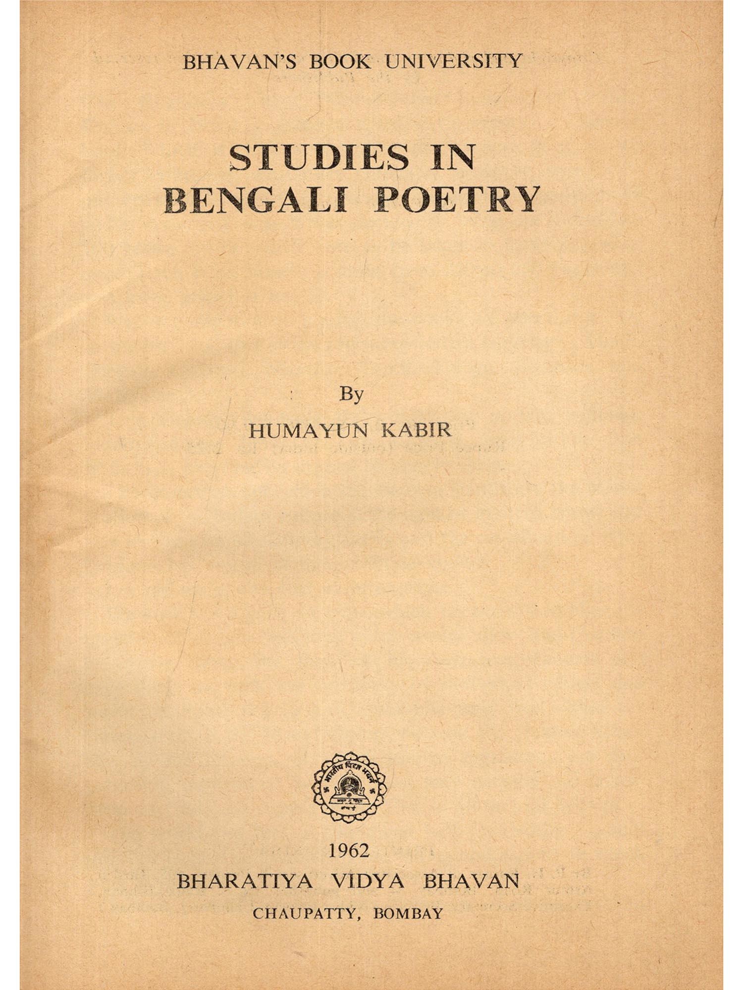 Studies in Modern Bengali Poetry (An Old and Rare Book)