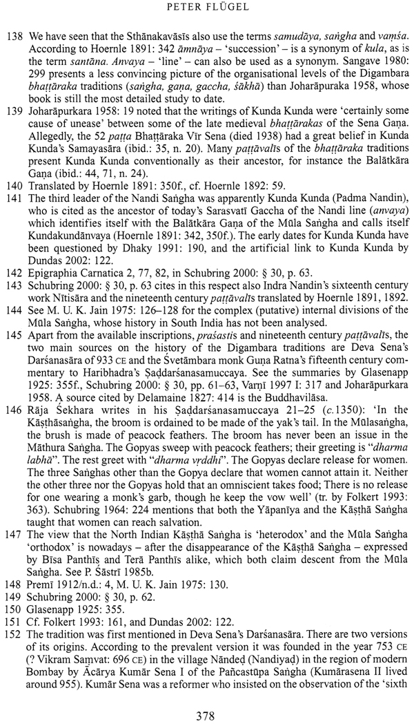 This volume of essays is clear proof that the study of Jainism has assumed its rightful place in the academic study of Indian religion. Indeed, it is hard to imagine a more vibrant field today in Indian religious studies than this once-neglected area. Written by scholars in North America, Europe, and Asia, the essays deal with diverse topics, ranging from the history of the Jain samgha, to subtle points of philosophy and doctrine; they are written by anthropologists concerned with contemporary practice and art historians who see in ancient monuments evidence of religious change. They also reflect trends both new and old: some of the essays involve a close reading of texts in a continuation of the best of nineteenth-century philology, whereas others speak a more contemporary language and deal with issues that are newer to academic debates, for example, the role of women in the religious community, defining personhood, and structures of authority. Together, the essays offer a comprehensive picture of Jainism. They allow us to see Jain studies today as a lively field that engages scholars of many different disciplines on issues that span the entire range of scholarly debates in religious studies. The next challenge for all of us will be to make use of the insights gained from scholarship on Jainism to achieve a broader understanding of Indian religions as a whole. "Jainology," as a relative newcomer on the academic scene, can learn from "Buddhology," its better-established older sister. There is everything to be gained by communicating between our "ologies," and much to be lost by the creation of artificial boundaries. The study of Jainism must now be an integral part of the study of Indian religions, as the study of Indian religions must be an integral part of the academic study of religion. Volumes such as the present one will go a long way toward generating an awareness of the importance of the study of Jainism for the larger scholarly community.