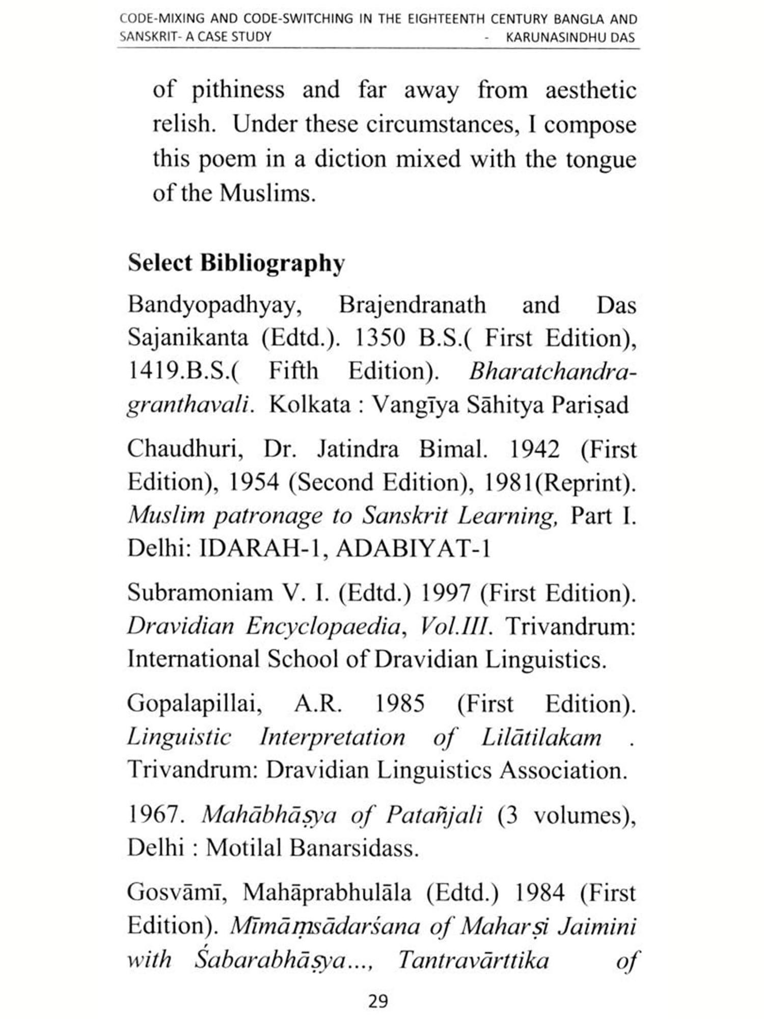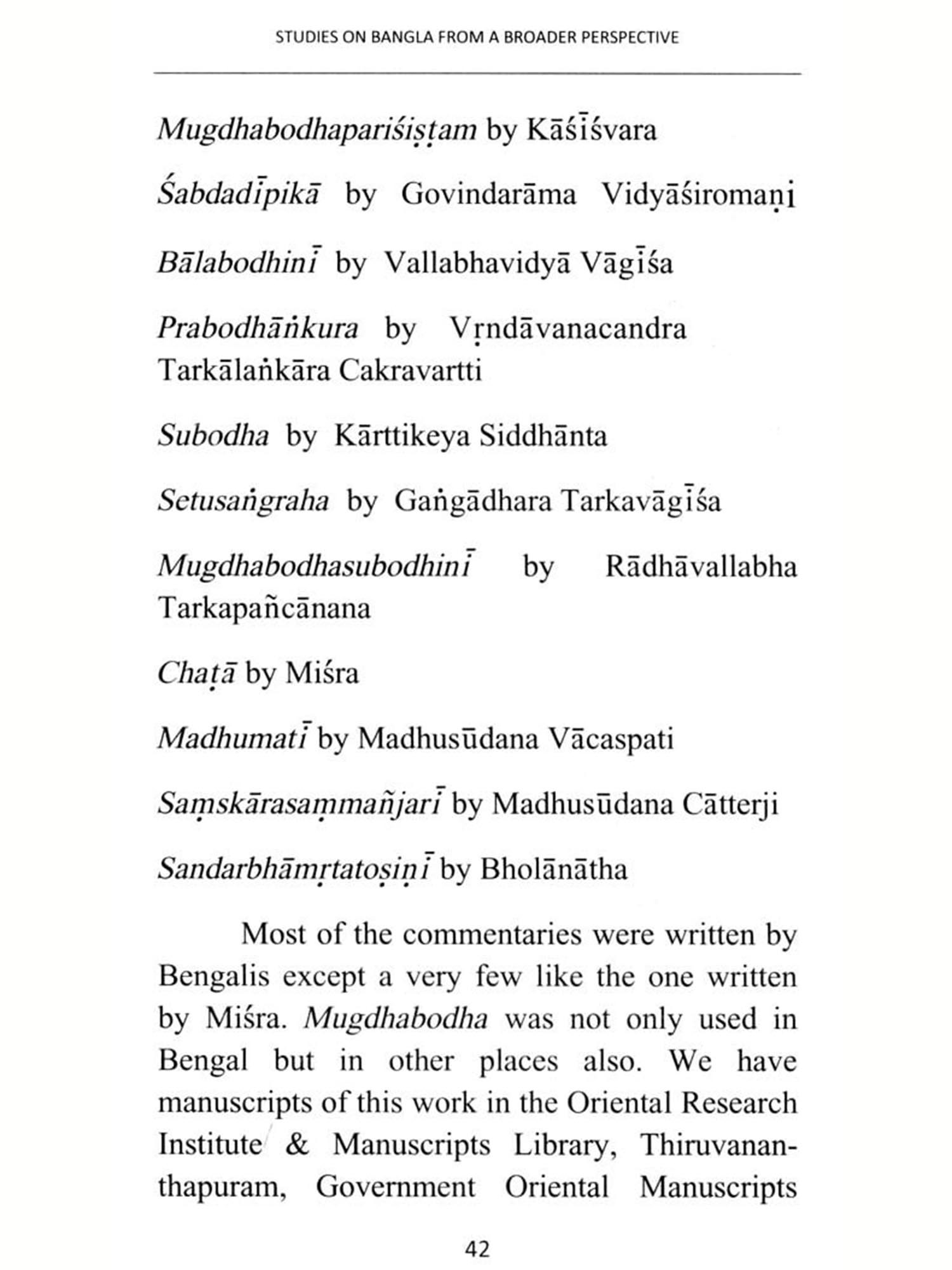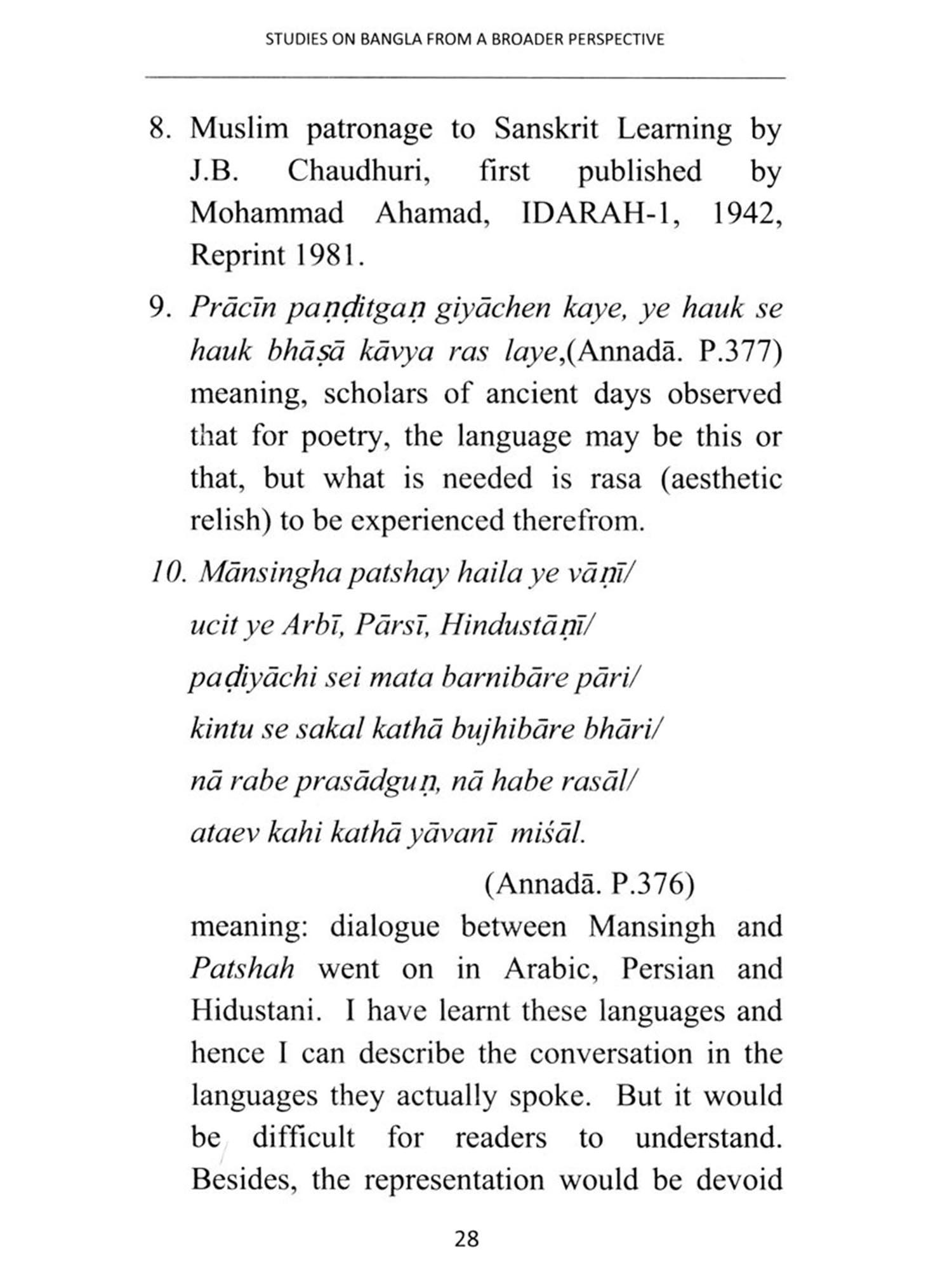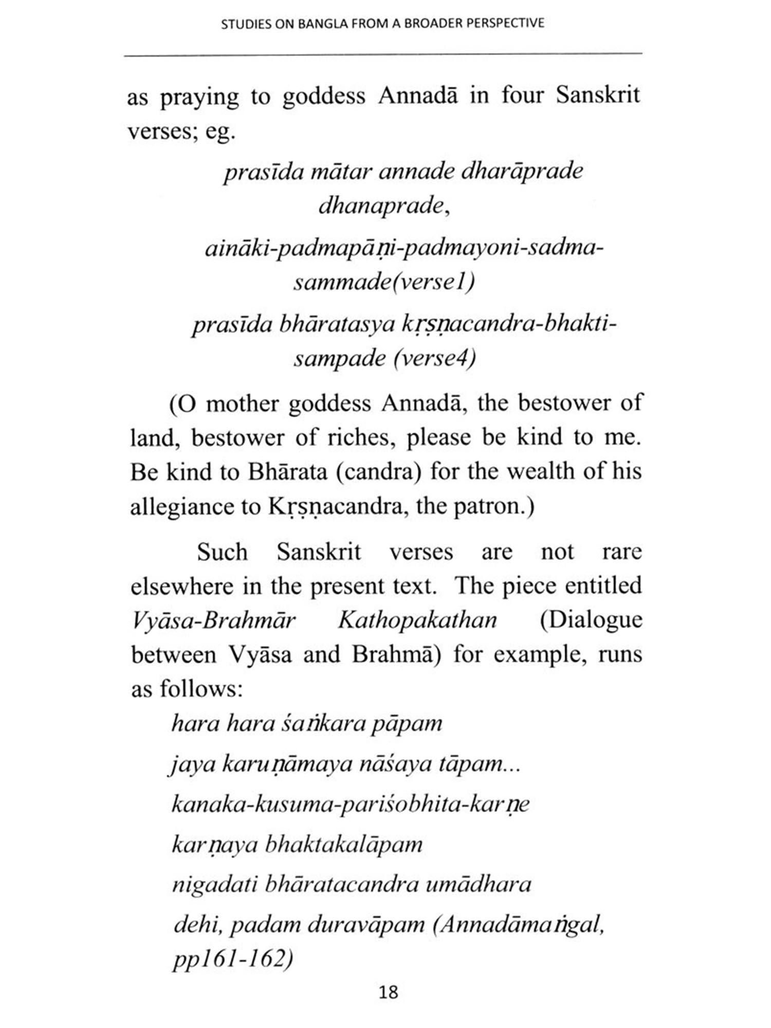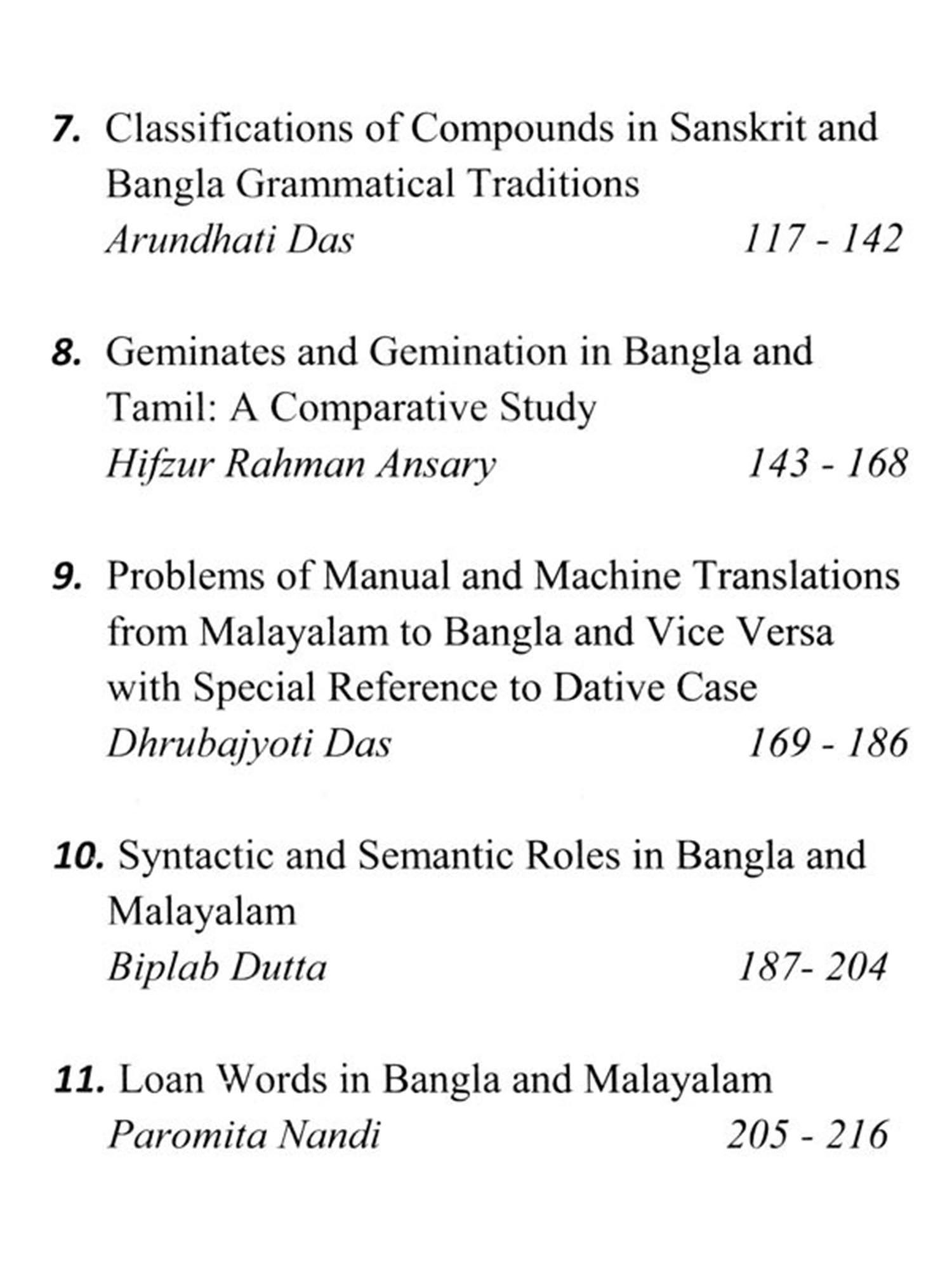 This book is a collection of eleven articles on Bangla and its relationship with other languages like Sanskrit, Tamil, Malayalam etc. The articles selected were presented in the seminar "Commonness and Divergences in Bengali and Dravidian" held in Thiruvananthapuram on 28th March 2014 and in the special session on Bengali and Dravidian at the 42nd All India Conference of Dravidian Linguists, Kuppam from 19th to 21st June, 2014. Out of the 23 articles selected for publication, twelve articles were already published in the book 'Studies on Bangla and Dravidian'. The rest which are also immensely beneficial to linguists and language learners are included in this volume. I thank the editors who painstakingly edited the manuscripts and improved them with meticulous attention. Dr. K. N. Geetha Kumari and Shri Dhrubajyoti Das have extended their unfaltering co-operation at all stages of its publication. I am grateful to the Dawn Press for the neat execution of this book. The book is presented to the academic world with full confidence that it will be received wholeheartedly by the academic fraternity.