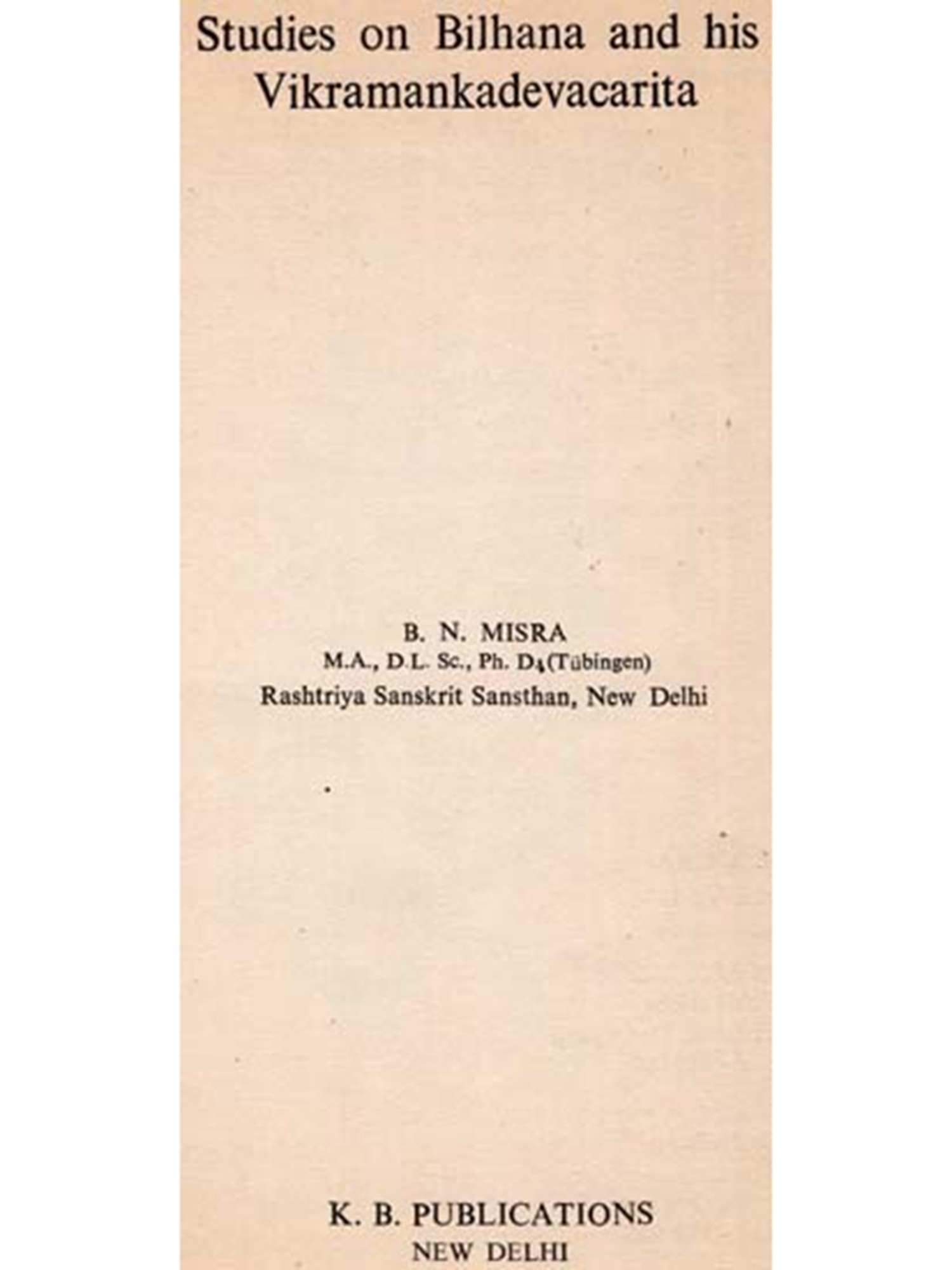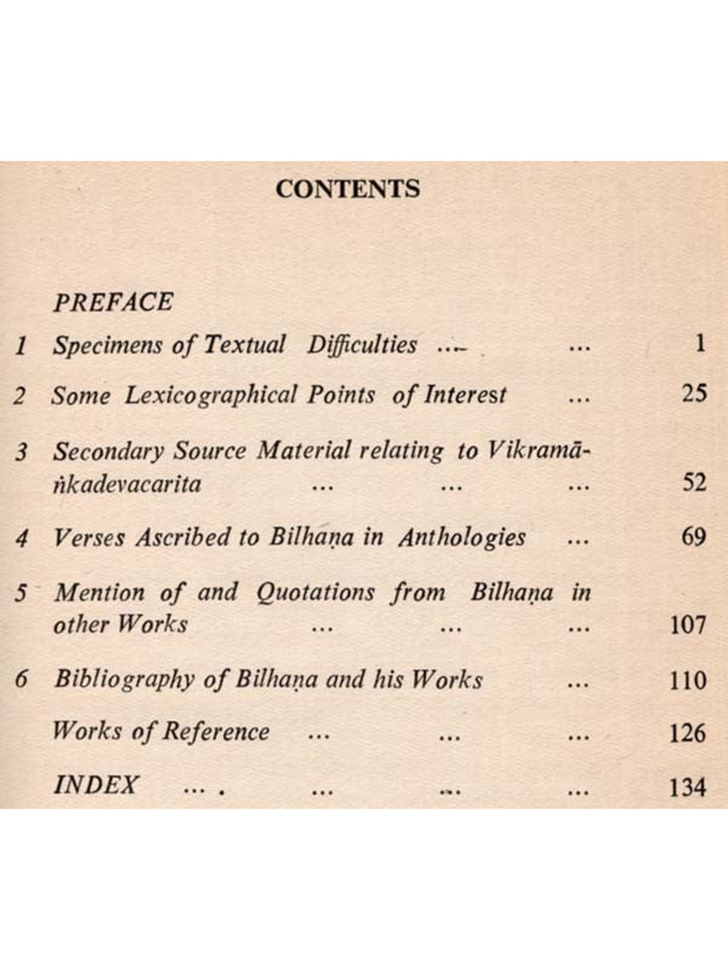 The most interesting result of Chapter IV, is the proof that Vidyākara quotes Bilhaņa's Karņasundari (cp. verse 39) on p. 81 whereby Kosambi's argument regarding the time of Vidyakara, in so far as it is based on his not knowing Bilhana (cp. Stk. Introd. p. xxxiii), is shown to be invalid. Verses not verifiable in the extant works of Bilhana, but ascribed to him in the anthologies, have been taken either from oral tradition of single verses or from works of his which are altogether lost. Four of the verses ascribed to Bilhana (cp. vv. 14, 64, 71 and 79) treat the subject of the Rama-story. This may seem interesting in connection with the Vcar. 18.94 and Bühler's assumption of Bilhana's having composed Rämastuti (a proper "Rämacarita" with Bilhana as an author seems rather unlikely). On several occasions the verses treated here show affinity in style or vocа-bulary with the extant work of Bilhana and these as such have been discussed critically. Not in all cases the genuineness of the ascription to Bilhana is warranted by such further evidence. Chapters V and VI, give or retrieve available information on Bilhaņa and his works, with a view to revive interest in this poet and his works and to facilitate future research thereby. I express may deep sense of gratitude to my revered teacher Professor Dr. Paul Thieme, who has given me the benefit of his great learning by going through the entire text of Vikramäńka-devacarita with me as well as his valuable guidance in making this work presentable. I am thankful to Dr. W. Gebhardt, Dir-ector of the University Library, Tübingen, for appointing me as Academic Assistant (Indology) in the Oriental Section of the University Library, thus enabling me to finance my years of study in Tübingen. To Dr. A. Wezler, who always helped me in academic and other matters, I express my gratefulness. Had it not been for Miss Angelika Ilsch's excellent typing accuracy, this dissertation would never have attained its present, almost flawless presentation. I would like to take this opportunity of warmly thanking her for her co-operation. Of my German friends I would especially like to mention Mr. and Mrs. E. Plöger: the affection I feel for them can hardly be expressed. Last but not least, I wish to express my deepest feelings to my parents and my wife Durga for being so patient and loving.