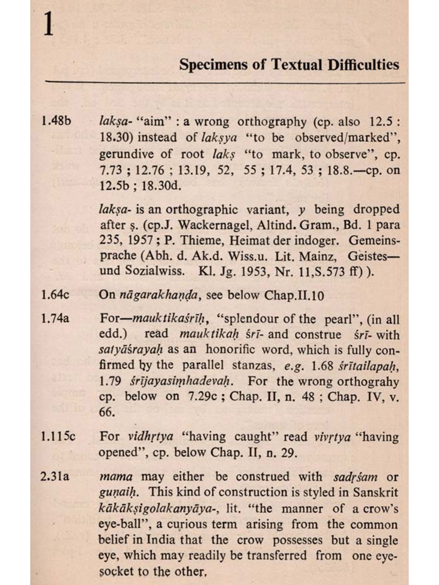 In Chapter I, a number of textual improvements are pro-posed. Even if not each of them will be accepted, it will emerge from my treatment that our MS. tradition, scanty as it is, shows more doubtful readings as seems to have been realized (for example: by Bühler, Vcar., Introd. p. 46). At least in two cases, the text, as it stands, cannot give a true picture of the historical events described (see p. 8 on 4.119 c (in Bühler's ed. 4.118c) and p.10 on 5.78a).