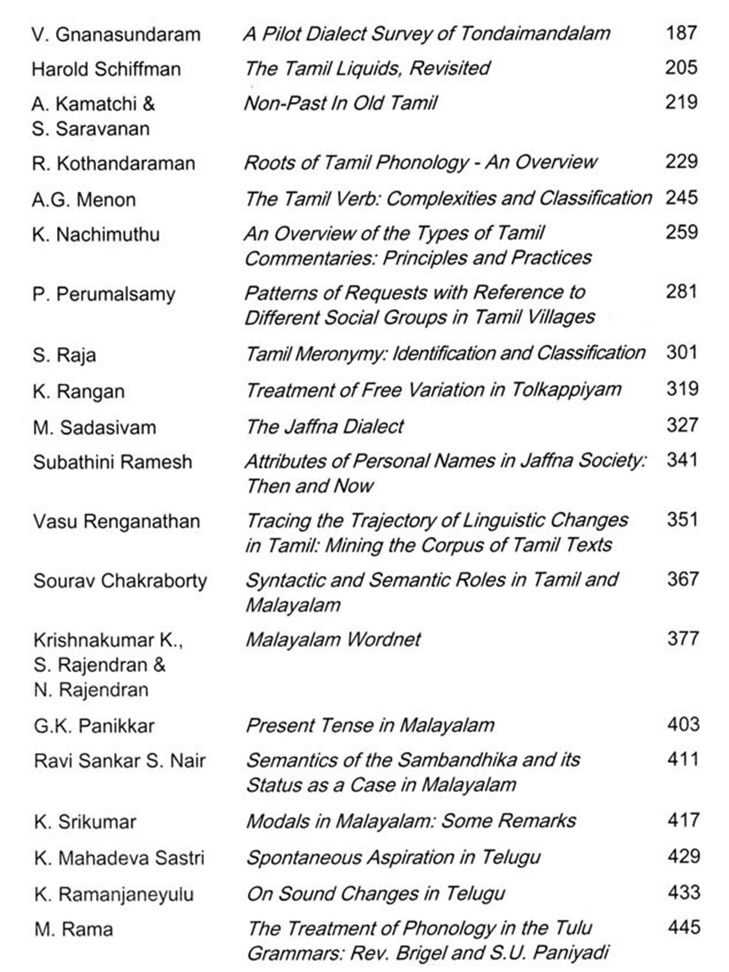 Considering his unparalleled contributions to Indian linguistics in general and to Dravidian linguistics in particular, the Council of Direction of the International School of Dravidian Linguistics decided to bring out a suitable publication in honour of this multifaceted personality. The effort taken by Dr. T.P. Sankarankutty Nair in this regard is remembered with gratitude. Through DLA News and through personal contacts, he could gather some research articles for this purpose. After making a review of the matter, the Council of Direction of ISDL decided to nominate Professors G.K. Panikkar, B. Ramakrishna Reddy, K. Rangan and B.B. Rajapurohit as editors for this ambitious project.