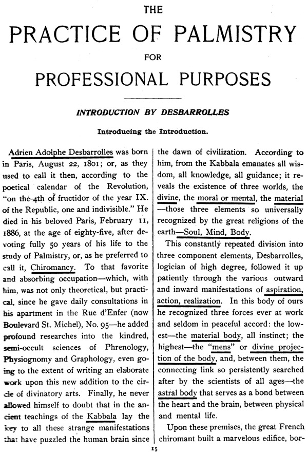 This book is a must for anyone looking for a straightforward, comprehensive introduction to the ancient art of palmistry. This practical guide is designed virtually as a step-by-step exploration of the hand. The Study of Palmistry is marked by clarity, thoroughly logical classification and completeness. The book presents well-illustrated examples of interpreting palms, and also classifies many of the terms related to palmistry. The author's purpose in this book is to incite inquiry, criticism and research. Only by a careful application of the suggestions given by the author can any trustworthy examination of hands be possible.