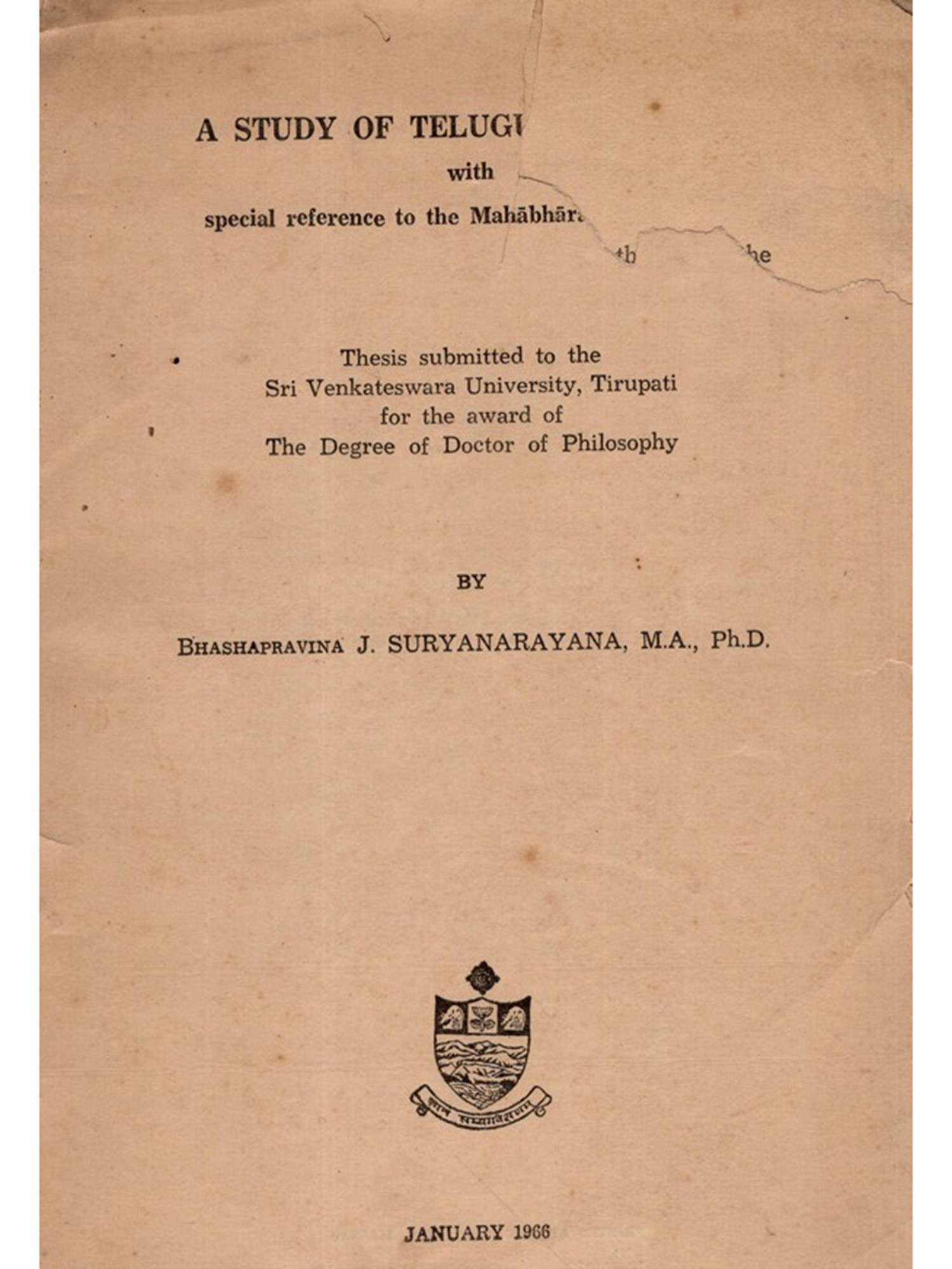 The present work was submitted as a thesis for the award of the degree of Doctor of Philosophy of the Venkateswara University, in the year 1964. After registration in the year 1959 it took two years to collect the material and by then my Supervisor Sri B. Lakshmi Narayana Rao, formerly Head of the Department of Telugu, S. V. University-left the University. Dr. Bh. Krishnamurti, who then became a Reader in the University gave some suggestions for recasting the thesis and limiting its scope which have been followed. After sometime Dr. Bh. Krishnamurti also left the University to become the Professor of Linguistics at Osmania University, Hyderabad. But, he continued to guide the research from there periodically. I am thankful to him for his valuable suggestions in the preparation of this work.