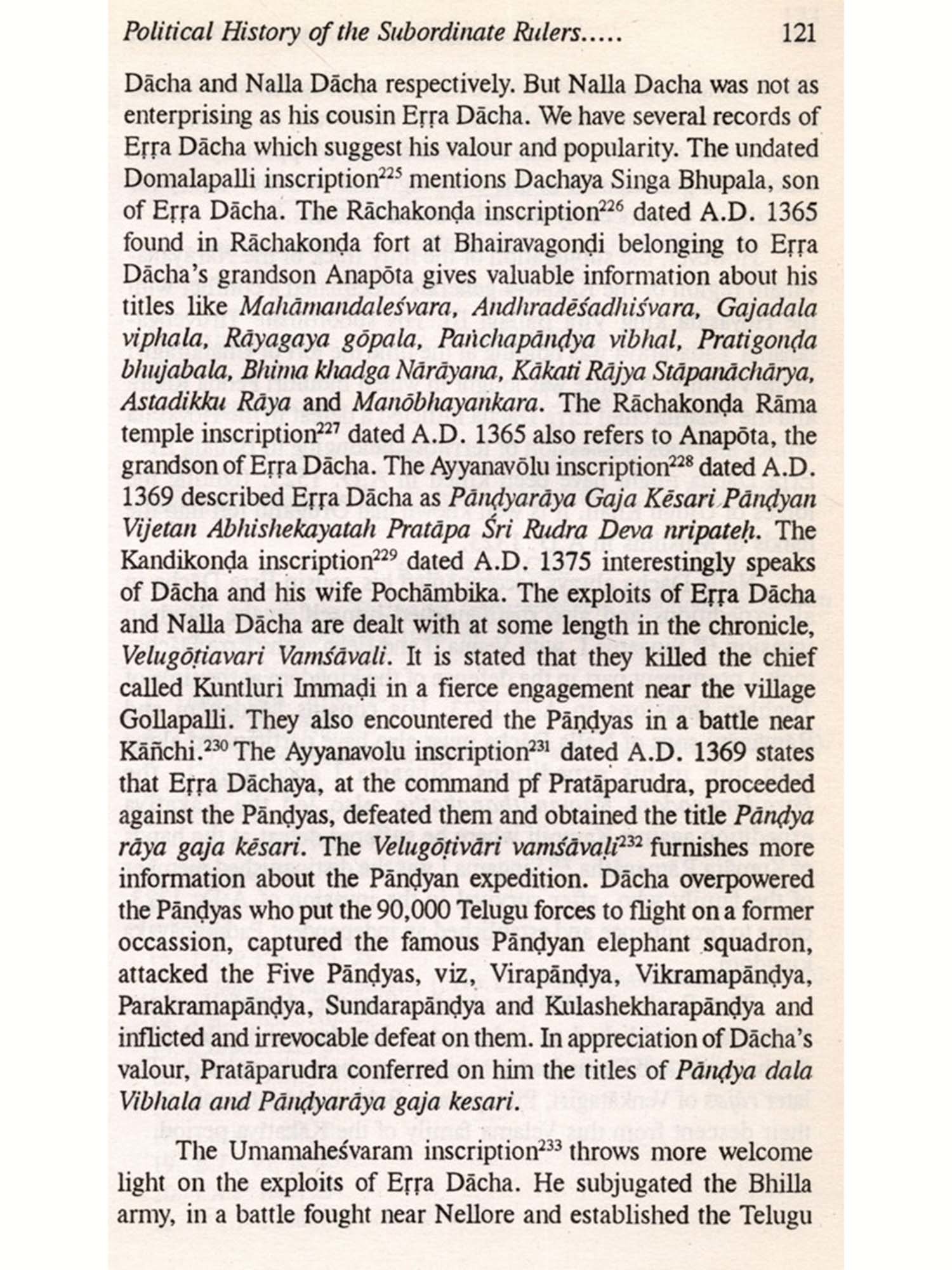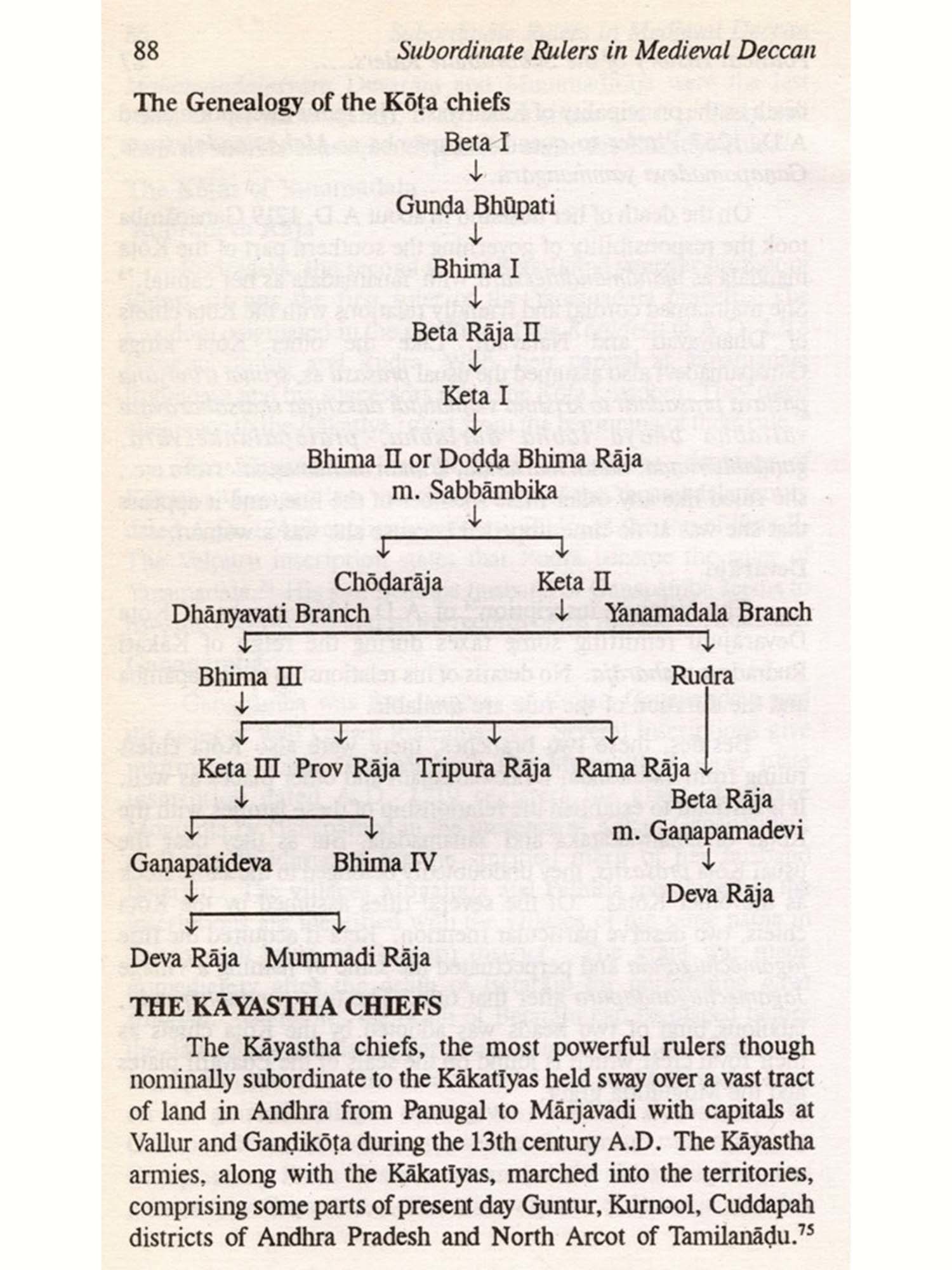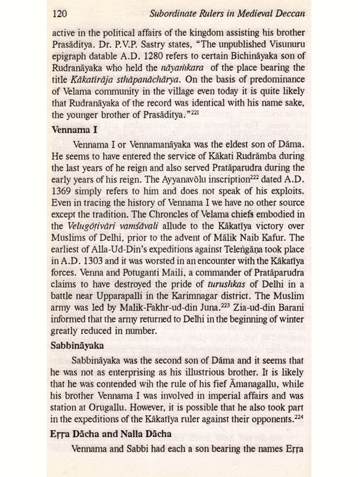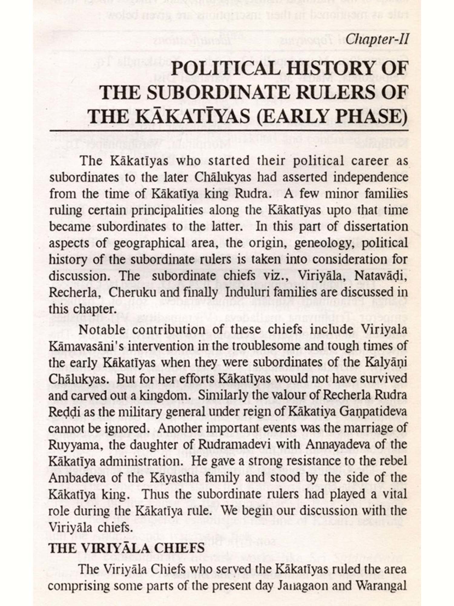Dr.R. Ganapathi as a native of the area once ruled by the Subordinates of Kakatiyas and Kakatiyas, has rightly choosen the topic, His love towards his native soil might inspired him to work on the Subordinate rulers in order to present a detailed account which will be useful to the research scholars and professionals working in history Departments. Earlier, P.V.P. Sastry has worked on the Kakatiyas of Warangal wherein a brief account on the place of subordinate rulers was presented.