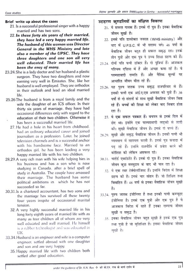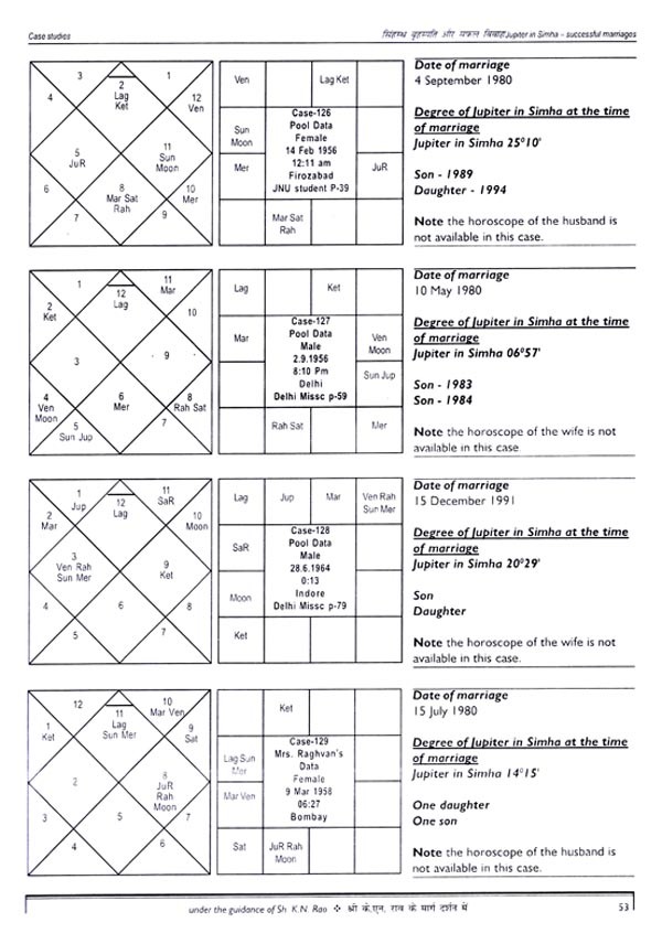 ritualistic and spiritual at the same time. Before a marriage is settled, the horoscope of a bride is tallied with that of the bridegroom to find out compatibility which from most elementary tallying done by pandits like guna milan to more elaborate one which includes dosha samyam is done. Then, when marriage is settled, a right muhurta is chosen on astrological considerations again. Among other considerations, the time when Jupiter transits into Simha has become important and it is known as Simhastha Brihaspati and is forbidden for marriages.