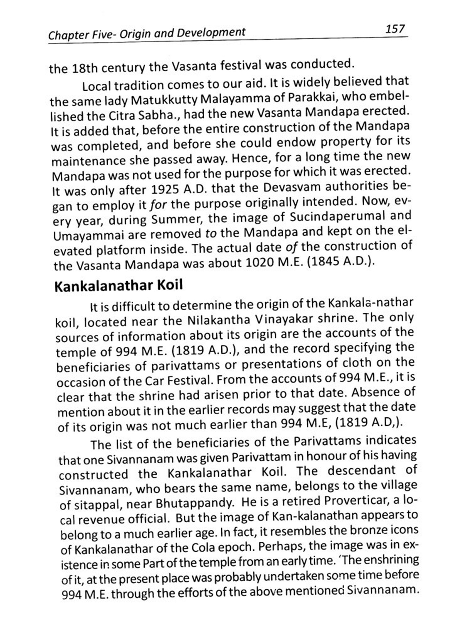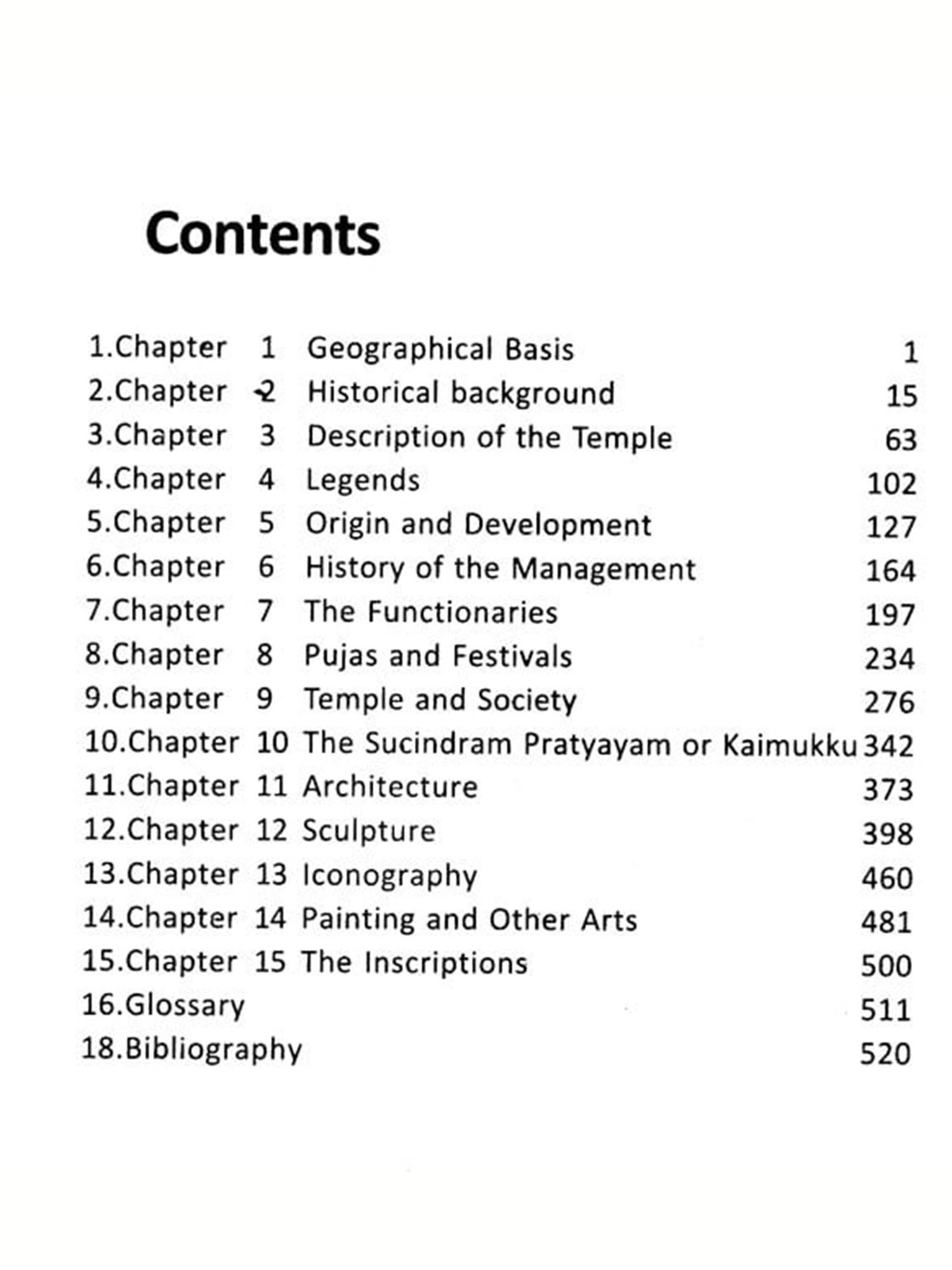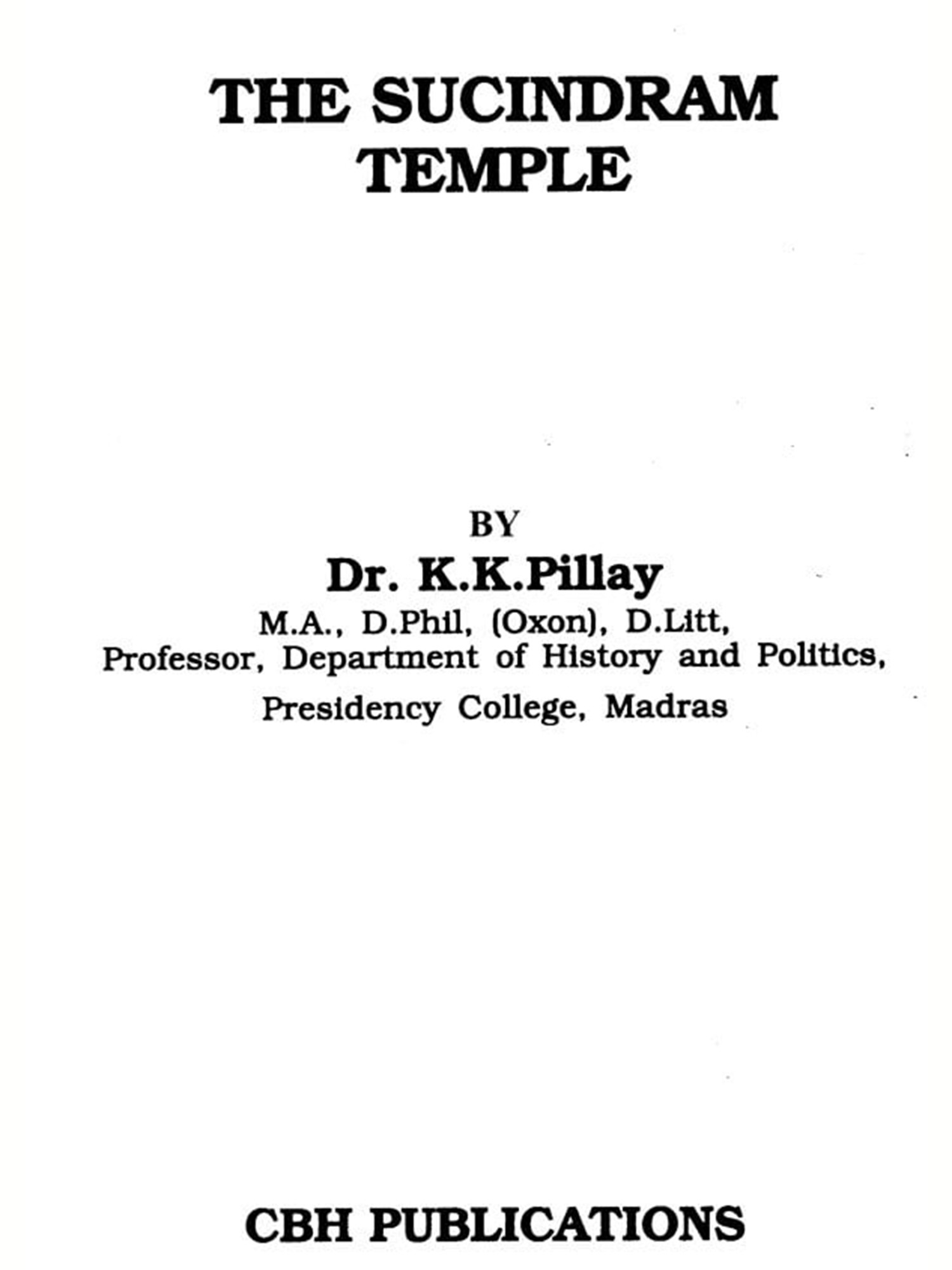 It is a historical study of the Sucindram temple which affords a fertile field for investigation into different aspects of life, spread overlapping the vistas of time. A striking feature of the early history of Nancinad of which Sucindram formed the 'Spiritual Capital', is that it became the cultural cockpit of South India. Little wonder, the different phases of political history were reflected in the development of the temple at Sucindram. The History of the temple, Management, Iconography, Architecure, rituals etc. have been extensively studied. This excellent monograph is the outcome of a Thesis submitted by the author in 1952 to the Madras University. The study was done under the expert guidance of the gret historian Dr. K A Nilakanta Sastri. "In the present unital study of one of the world's masterpieces of architecture and sculpture. Dr.K.K.Pillay has most admirably fulfilled and had brought together in one of the wonderful syntheses, that have made Travancore one of the richest areas of art-creation in India, the Sucindram temple. Dr. Pillay has pointed out, the combined characteristics of the Keralean and Tamil, variants of the Hindu culture out of which they both arose. A refreshing feature of Dr. Pillays' monograph is its freedom of mind and its exercise of the critical faculty." Dr.K.K.Pillay, in this monumental thesis, has given cross-references to objects of art in the Sucindram temple, and such superb units of artistic achievement as at the handsome temples at Tiruvattar and the immense temple of Sri Padmanabhaswamy at Trivandrum."