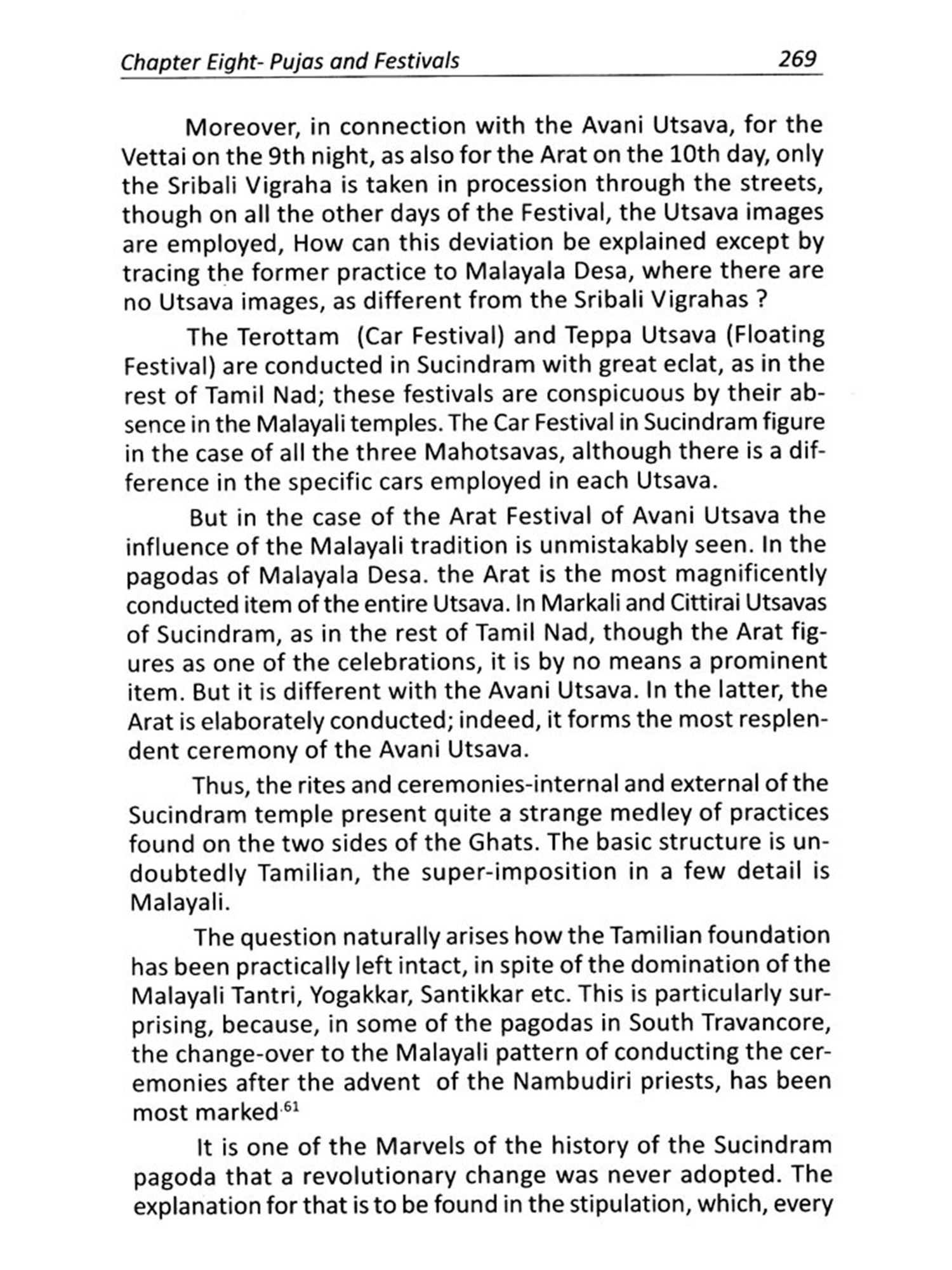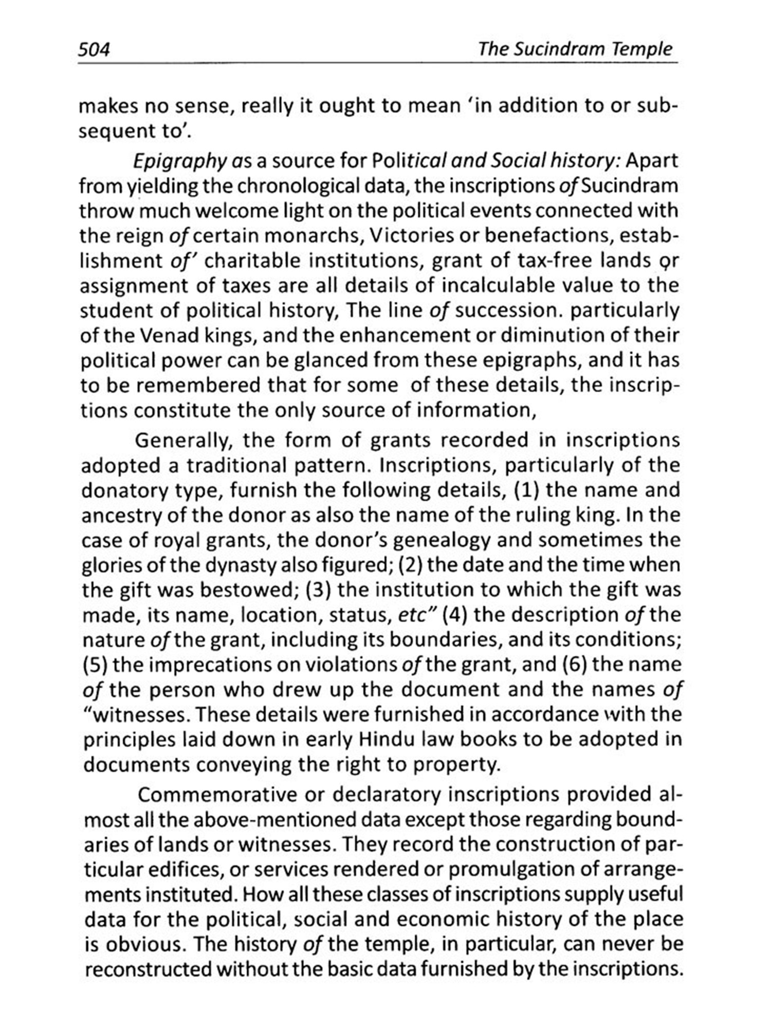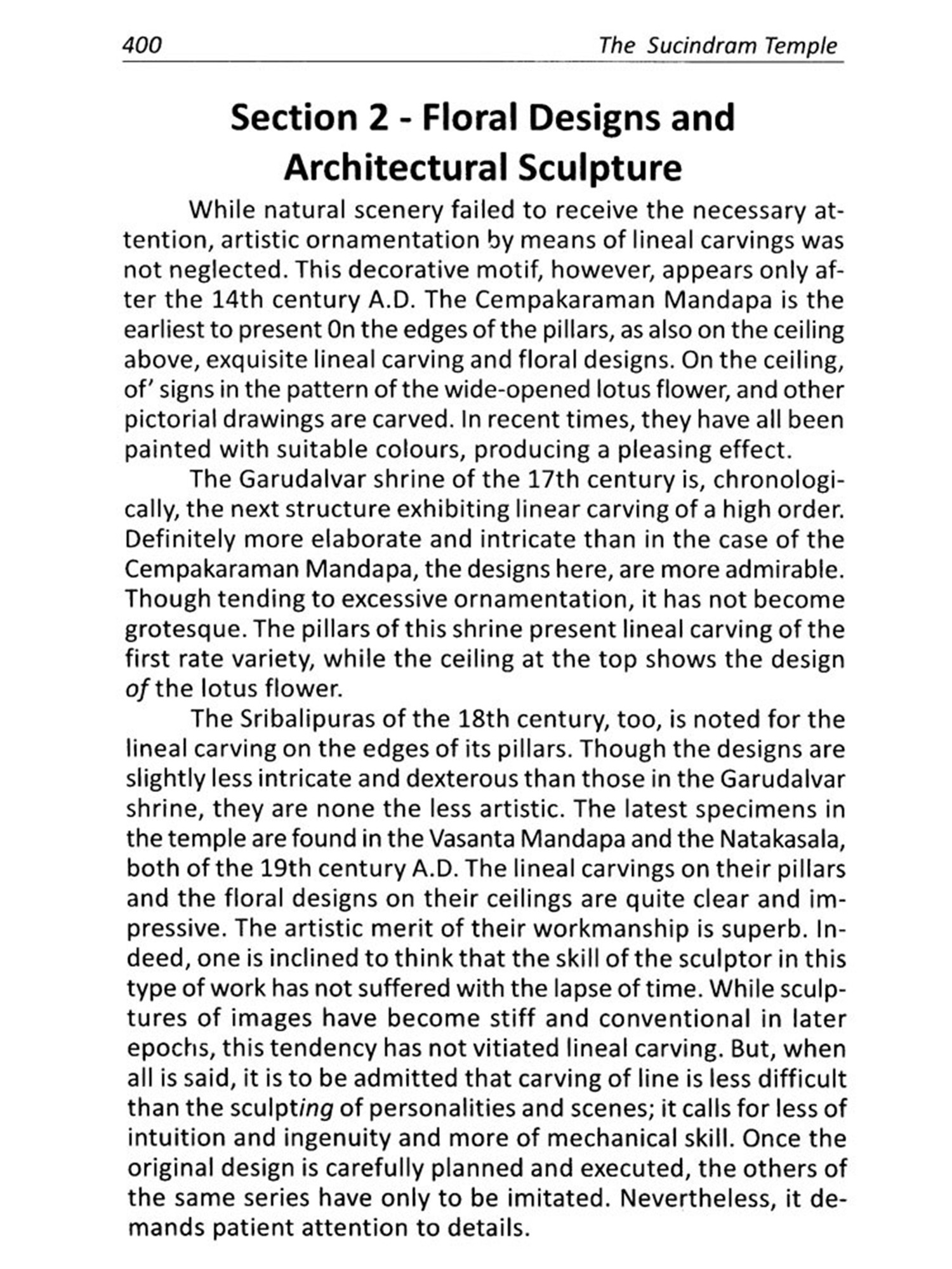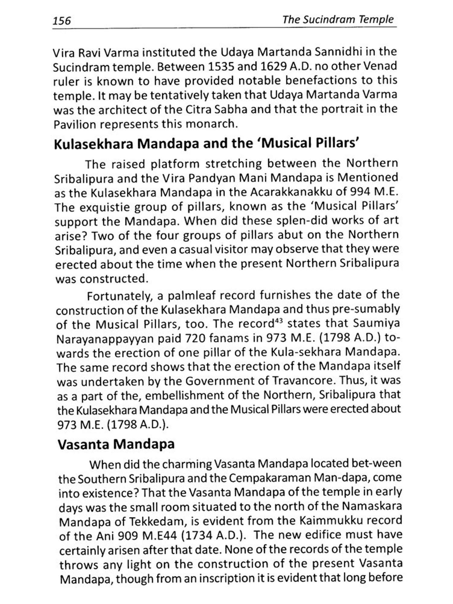 This monograph is the outcome of a Thesis submitted by me in 1946 to the Madras University. It is an historical study of the Sucindram temple which affords a fertile field for investigation into different aspects of life spread overlapping vistas of time. A striking feature of the early history of Nancinad of which Sucindram formed the 'Spiritual Capital', is that it became the cockpit of south India. Exposed to frequent attacks from outside, Nancinad fell successively under this sway of Ay, Pandya, Cola and Venad rulers, and for a time under the Vijayanagar and Nayak chieftains. Little wonder, the different phases of political history were reflected in the development of the temple at Sucindram. The various edifices and treasures of art, too, owe their rise to different monarchs and patrons. In India, as in Greece, art was the handmaid of religion, and the houses of the gods afforded scope for expression of the artistic genius of the people. A systematic study of the evolution of South Indian architecture, Sculpture and Iconography cannot be undertaken without an in-tensive investigation into the features presented by all the important temples.