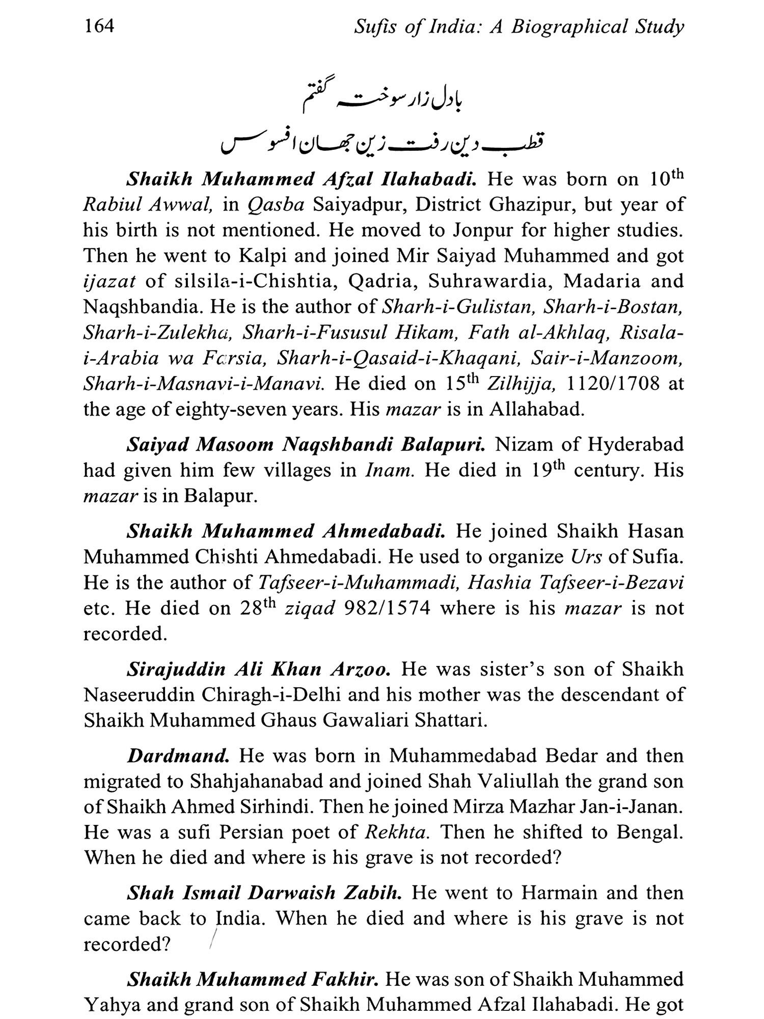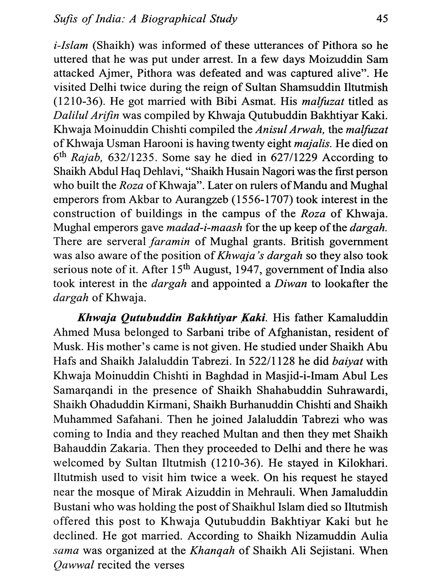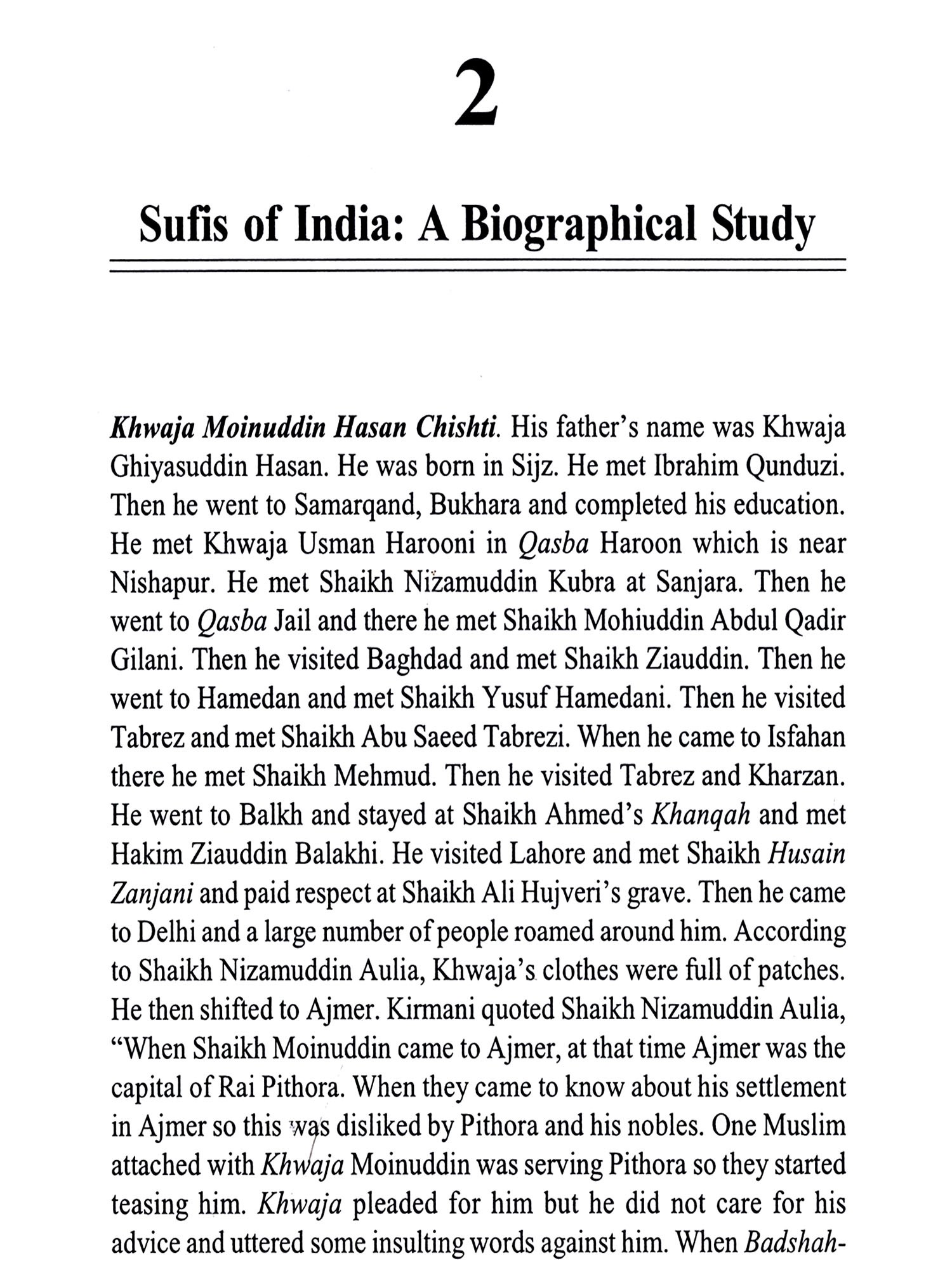 Before my retirement in December, 2017, I decided to work on Biographies of Sufis of India. I am highly grateful to Indian Council of Historical Research for giving me Senior Academic Fellowship to work on this project. It is not possible to cover this work in one book so I have divided it into volumes. I worte first volume on Sufis of Punjab A Biographical study (13th to 18th century AD) published in 2021. Punjab means the region watered by five rivers. The second volume on Sufis of Deccan A Biographical Studuy, was published in 2024. Now the third volume Sufis of India - A Biographical Study, is before you.