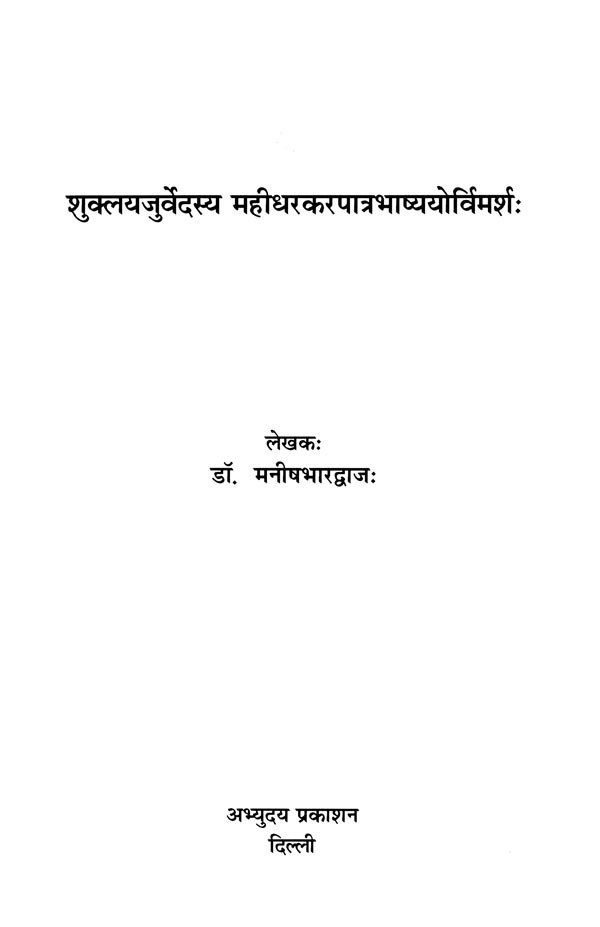 शुक्लयजुर्वेदस्य महीधरकरपात्र भाष्ययोर्विमशः- Suklayajurvedasya Mahidharakarapatra Bhasyayo Vimarsha
