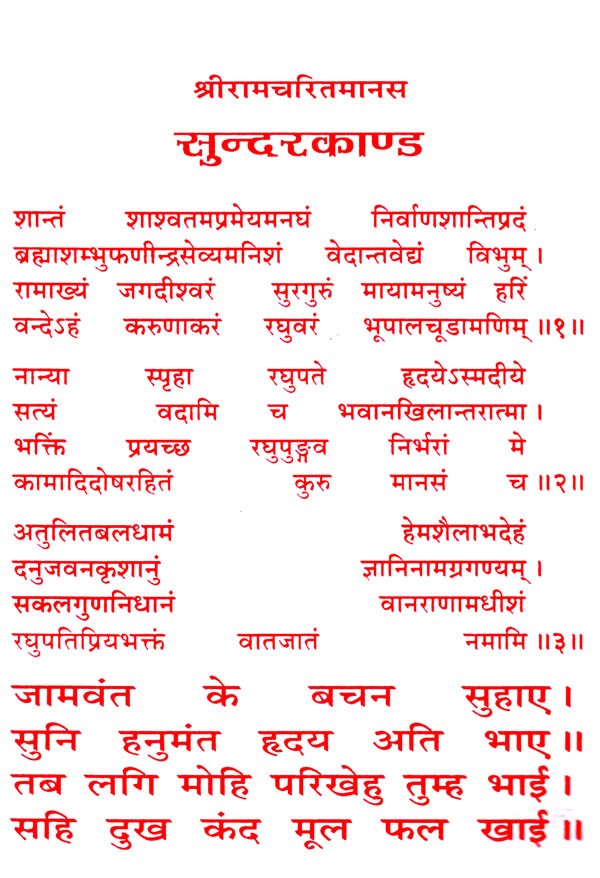 सुन्दरकाण्ड: Sundarkand- Hanuman Chalisa, Hanumanashtaka, Bajrangban, Aarti of Hanuman and Ramayana