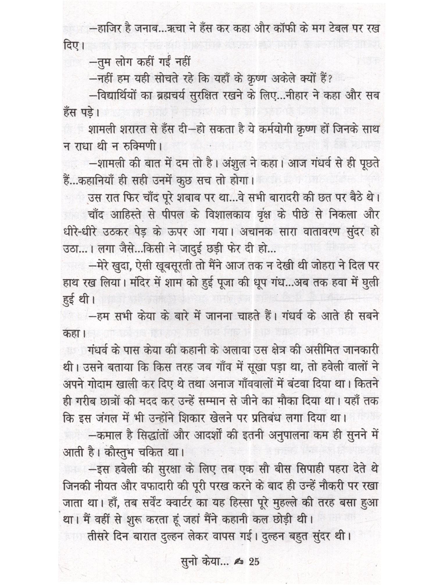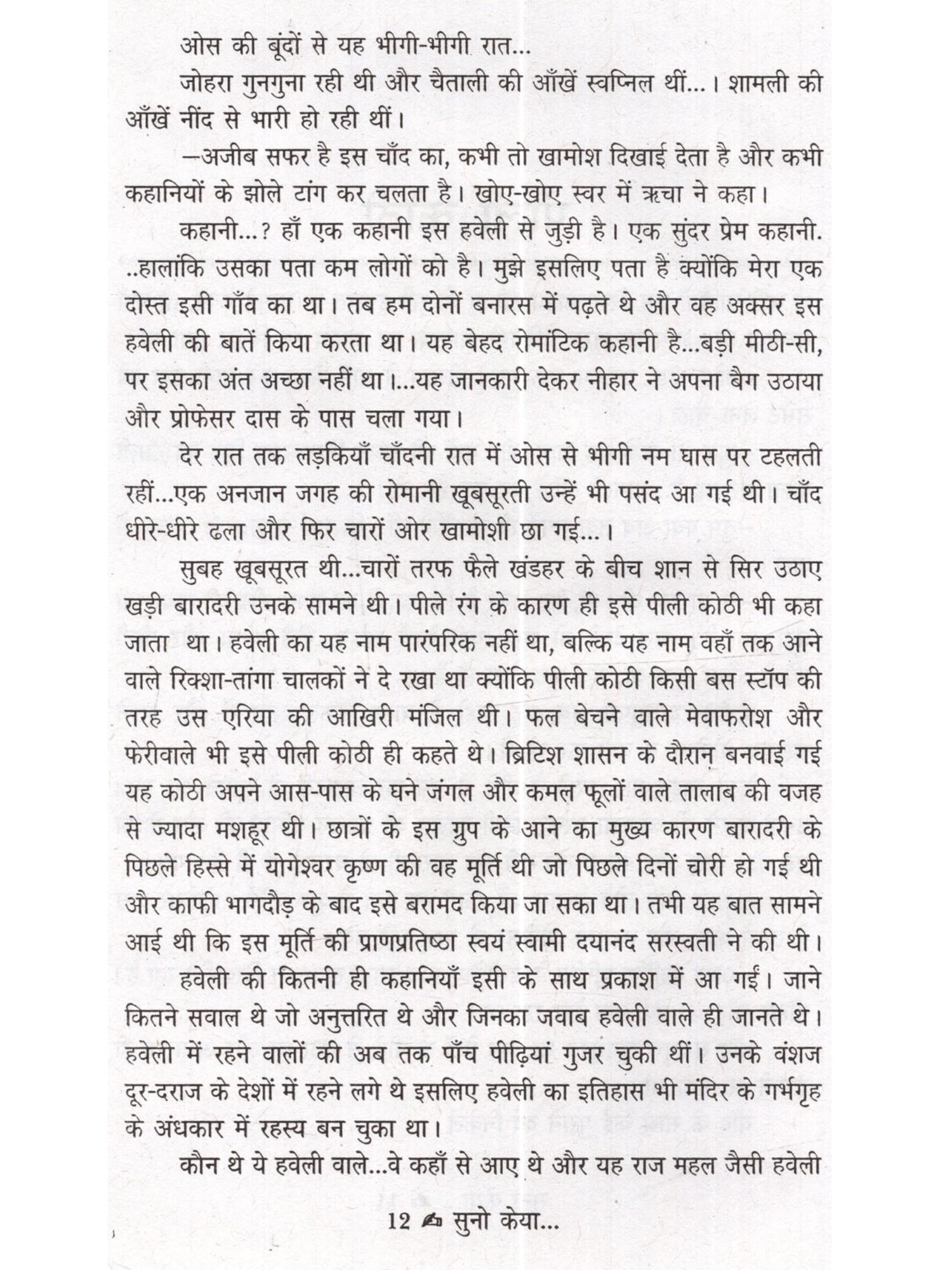 कहानियां जन जीवन का ही प्रतिविंव हैं। हम जब भी नए लोगों से मिलते हैं कुछ न कुछ नया देखने को उनमें मिल ही जाता है। यही परिचय आगे चलकर यादगार बनता है और किसी कहानी में ढल जाता है। हैरत यही थी कि इस बार जब मैं अपनी यात्रा पर थी तो कहानी नहीं पूरे उपन्यास से मेरा साक्षात्कार हो गया। पिछली शताब्दी के वक्त की एक खूबसूरत कहानी जिसके कई पात्र जीवित थे। उनसे मिलना और बातें करके उन्हीं के अनुभव को जी लेना काफी मर्मस्पर्शी रहा। यह एक शाश्वत प्यार की कहानी थी जो दुखांत में समाप्त हुई और इसे लिखते हुए वार-बार मैंने यही सोचा कि प्यार की उम्र इतनी छोटी क्यों होती है। क्यों प्रेम की अनुभूतियां ओस की सुंदर बूंदों की तरह इंद्रधनुषी आभा लिए सामने आती हैं और. धूप के तेज होते ही मर जाती हैं। कहानी एक खूबसूरत हवेली से शुरू होती है जो एक मासूम प्यार की गवाह है। एक ऐसे प्यार की जो कभी भी अपनी मंजिल नहीं पा सका, पर उसकी गहरी यादें उनकी स्मृतियों में सुरक्षित जिन्होंने उसे अपने सामने घटित होते हुए.