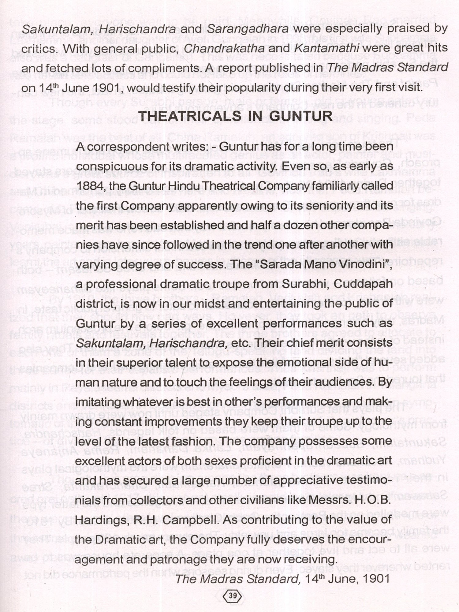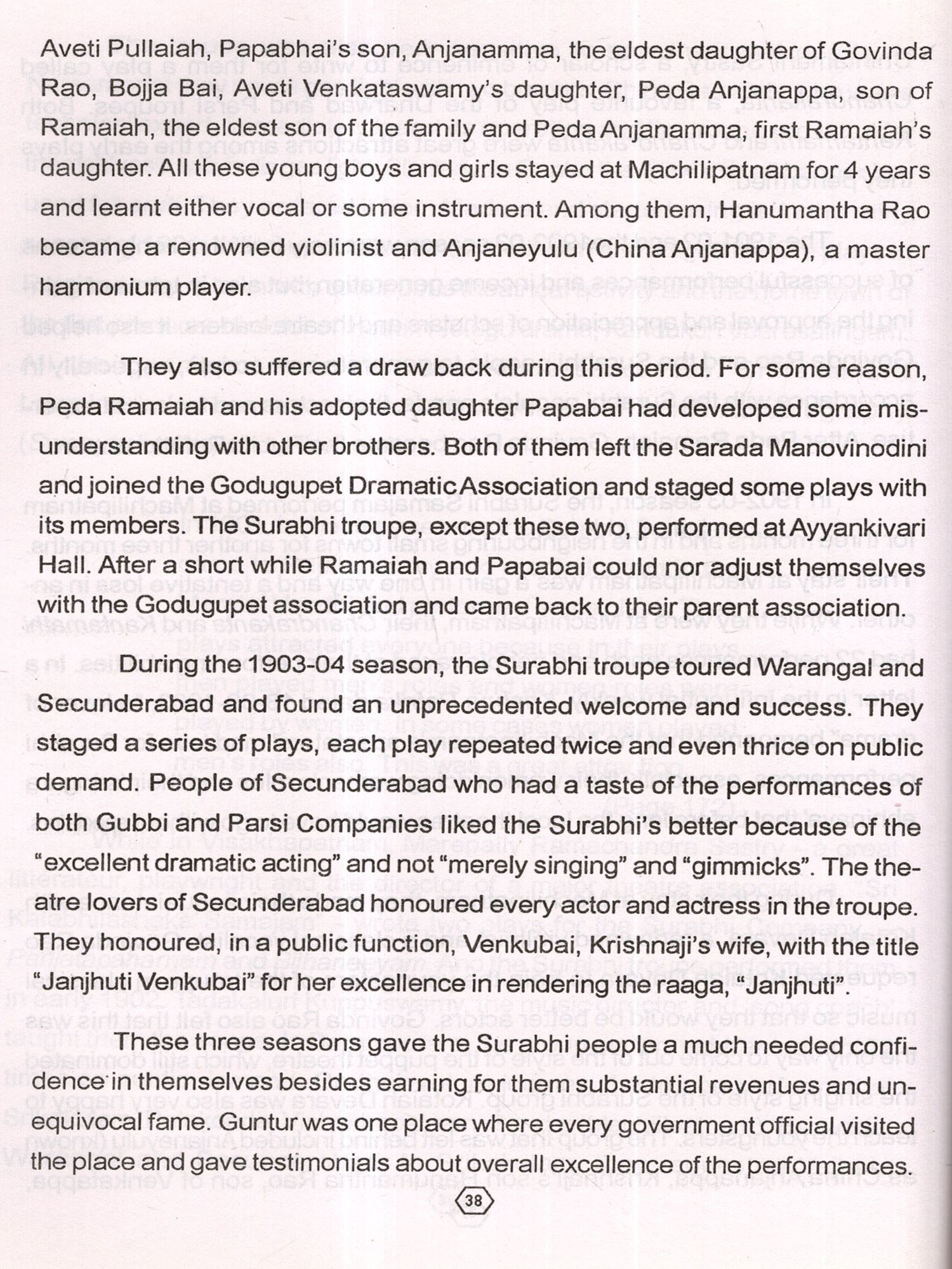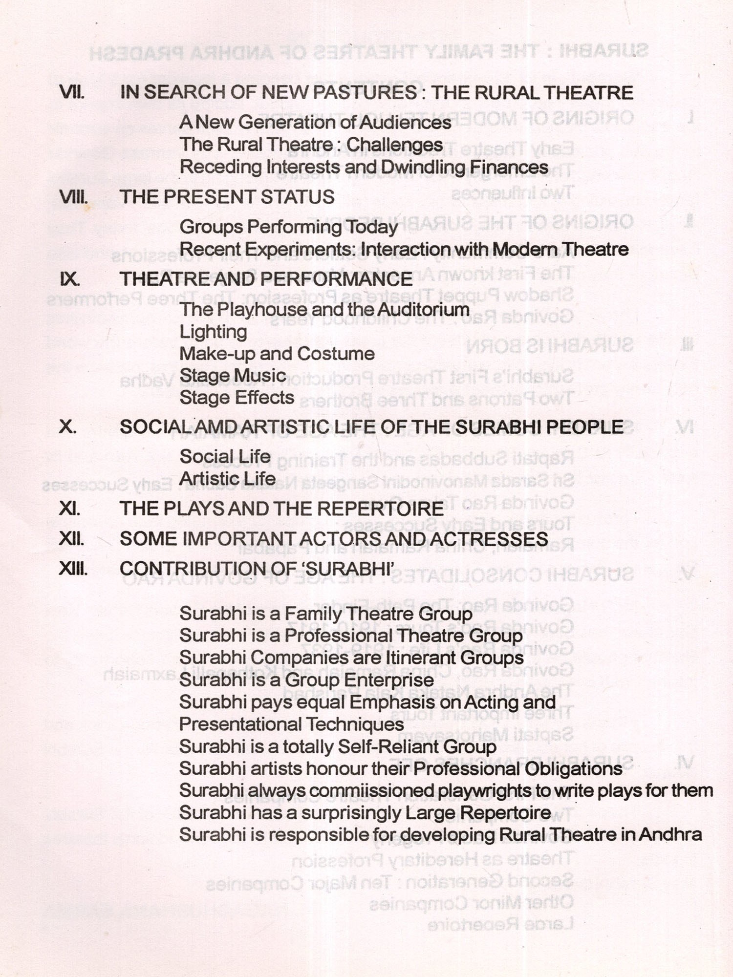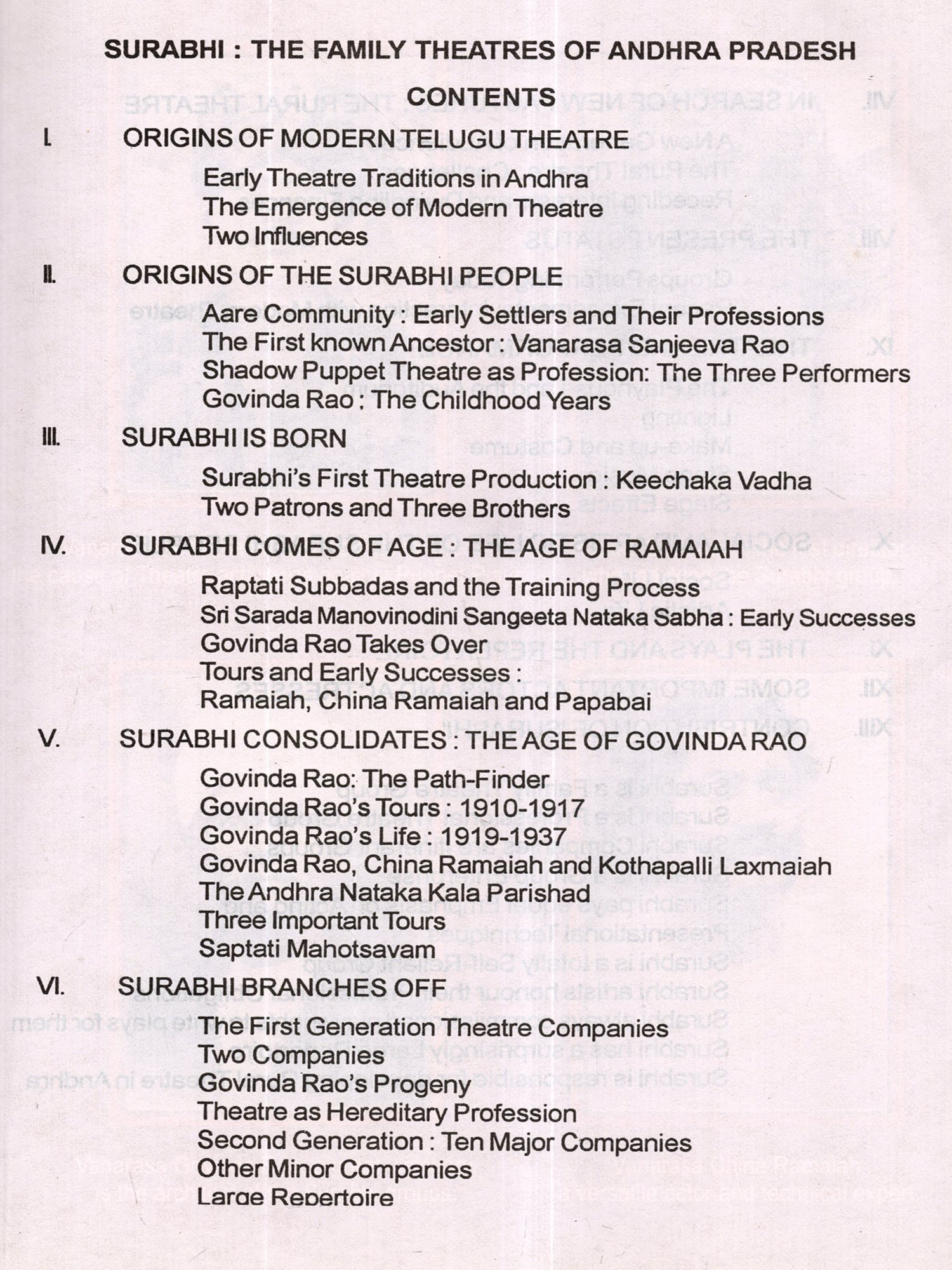 I profusely thank all the Surabhi theatre groups for extending their cooperation for the completion of this project. My thanks are especially due to Shri S.A.Baba Rao, a veteran actor, music director, and manager of the 5 existing companies.