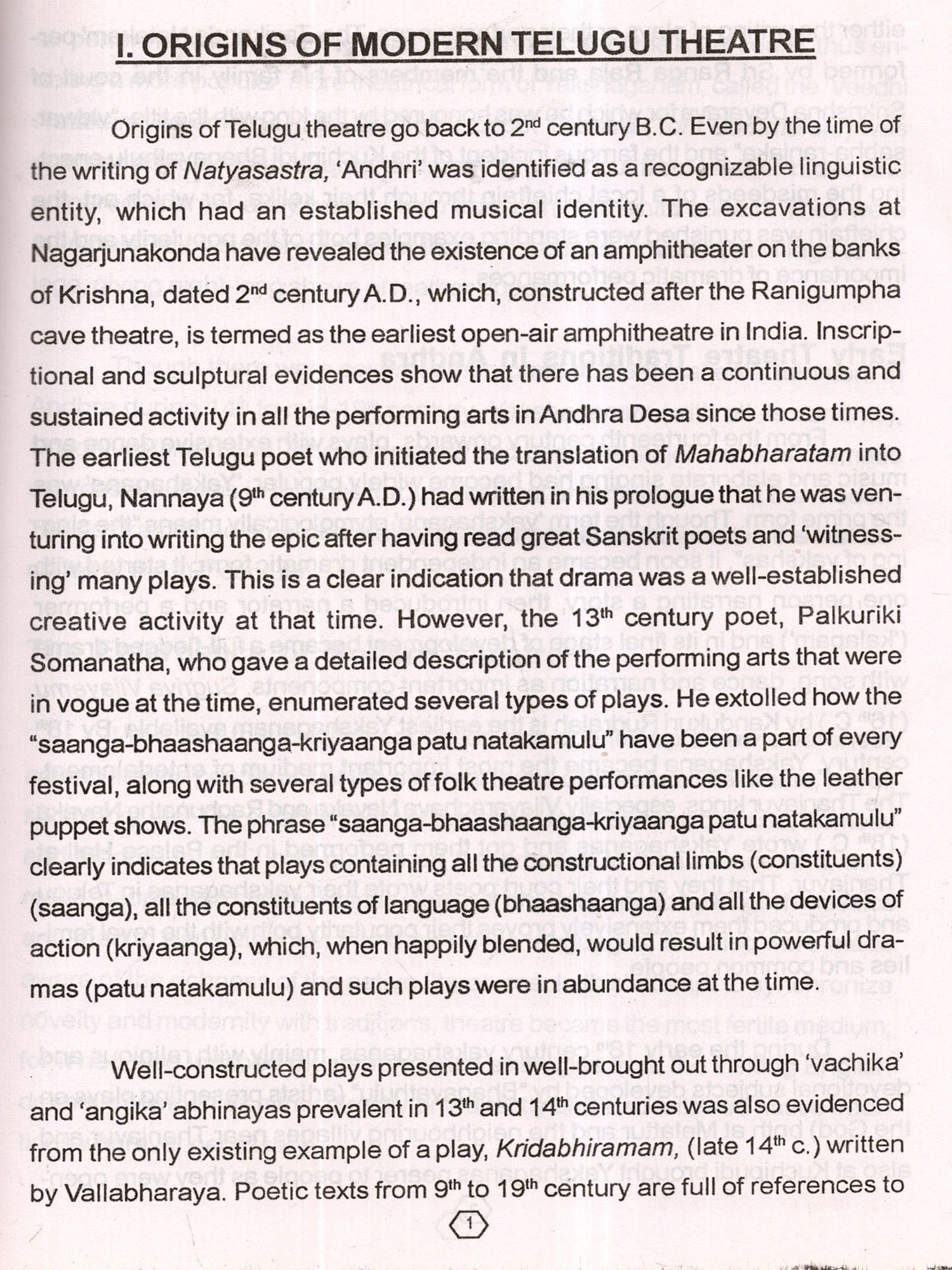 The Centre is happy to publish this monograph on "SURABHI THE-ATRES" of Andhra Pardesh, a name to reckon with in the traditional theatre history of India. We are specially thankful to Prof. M. Nagabhushana Sarma, the author of this monograph and the chief Investigator of the project on "Surabhi", and an authority on Telugu Theatre for not only authoring this work but directing the team of visual Documentation.