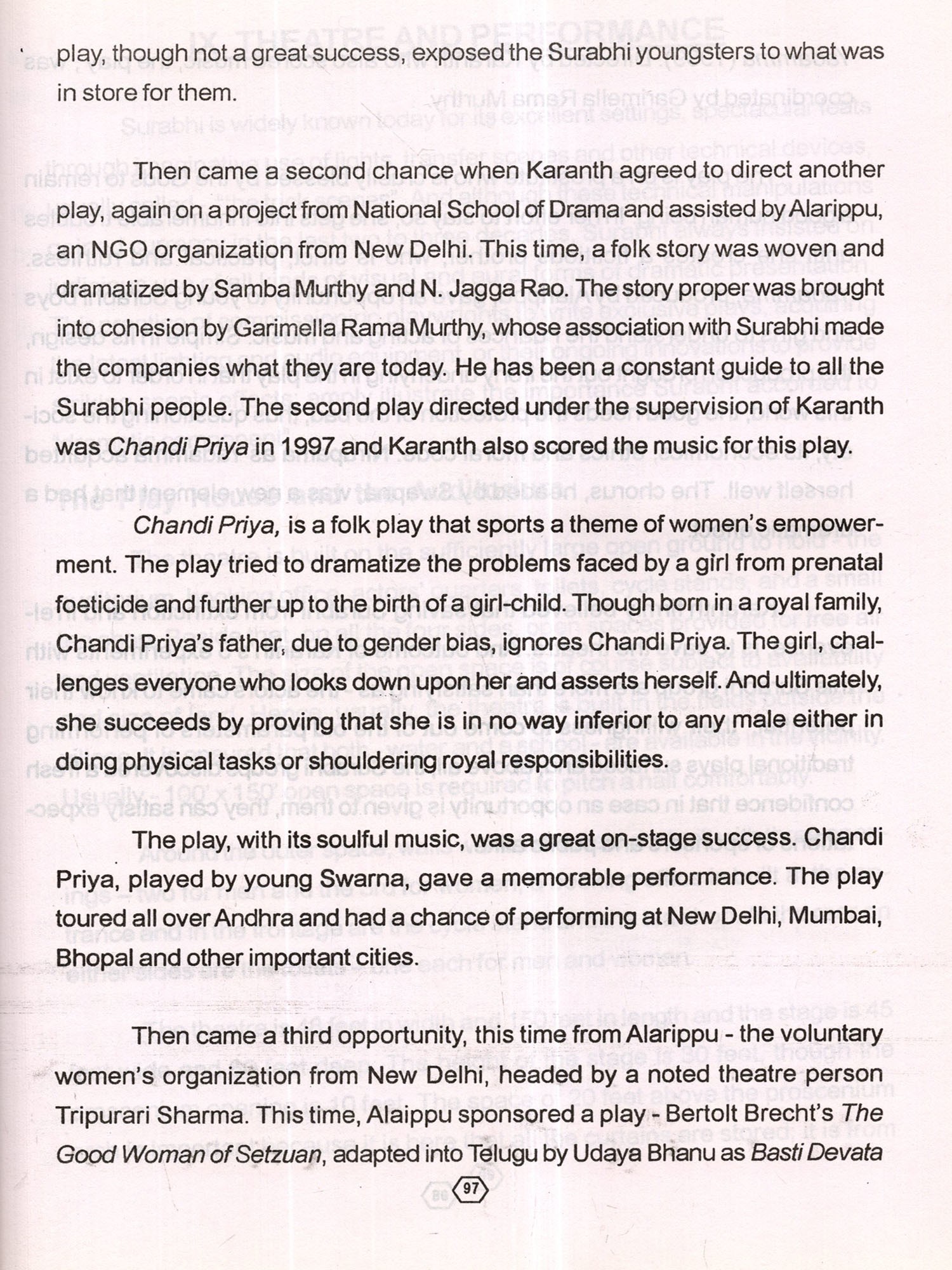 I hope that this book will throw light on the sustained activities of the Surabhi theatres which have all the potentialites of becoming a model for traditional theatres in India.