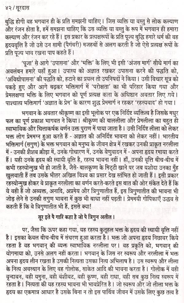 प्रस्तुत संग्रह में शुक्ल जी के दोनों परवर्ती निबन्ध और 'भ्रमरगीत सार' में प्रस्तुत भूमिका का संकलन किया गया है। आचार्य रामचन्द्र शुक्ल प्रभृति आलोचक प्रवर द्वारा प्रवर्तित सिद्धान्तों और उनके निकष पर महाकवि सूरदास की वह समीक्षा सूर सन्दर्भ में उपलब्ध सहस्रों ग्रंथों के बावजूद आज भी ऐतिहासिक और प्रासंगिक दोनों हैं क्योंकि परवर्ती विद्वानों ने शुक्ल जी के सूत्र वाक्यों का अधिकांशतः उत्प्रेरण किया है। सूर केन्द्रित समीक्षा के पर्यालोचन में आज भी शुक्ल जी की मान्यतायें न केवल प्रासंगिक हैं वरन् प्रेरक भी हैं।